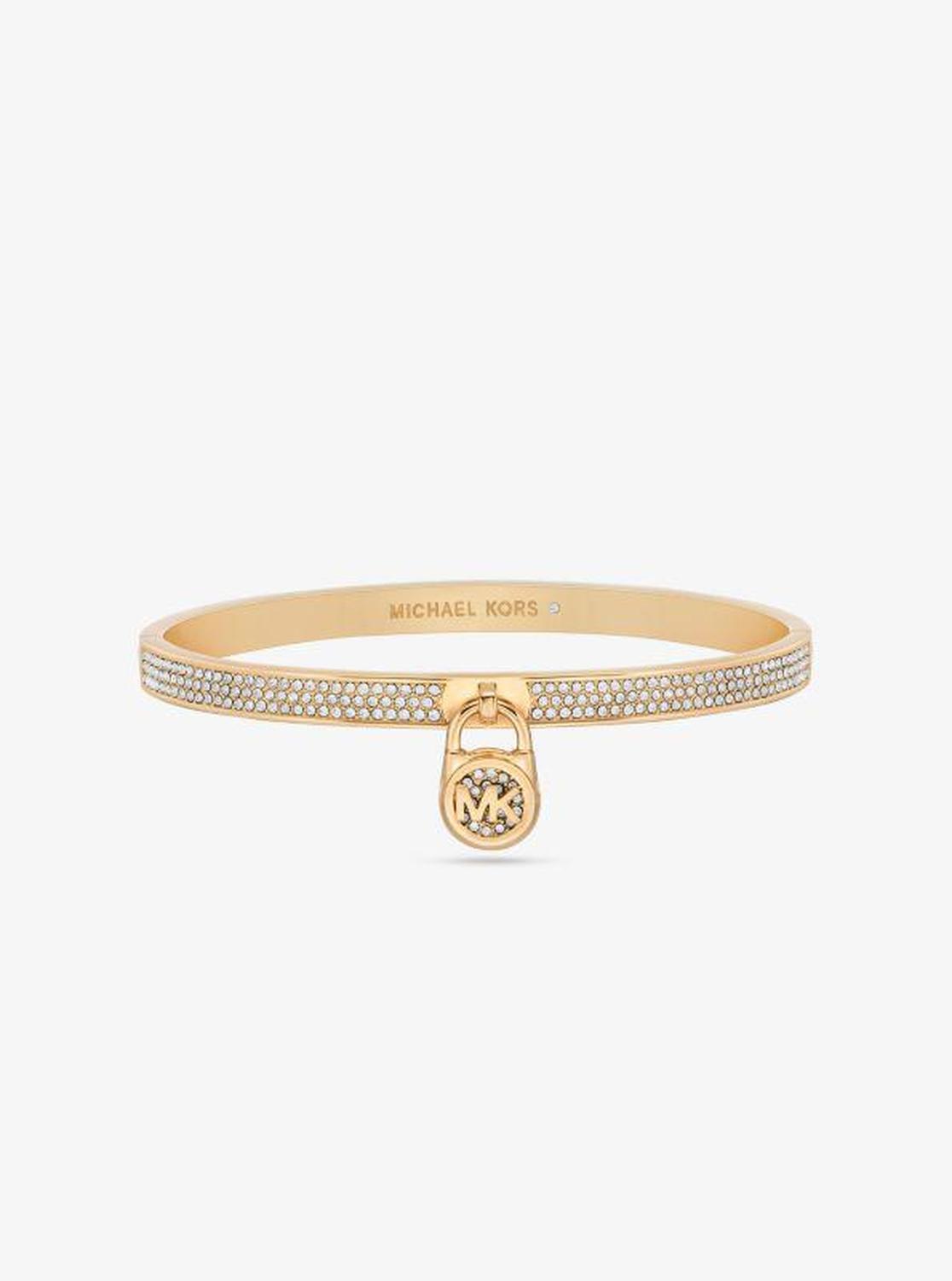 • Inspired by the hardware on our beloved Hamilton handbag, this precious-metal-plated brass bangle bracelet is dusted with three rows of pavé and finished with a signature padlock charm. A hinged fastening makes it easy to slip on and off.