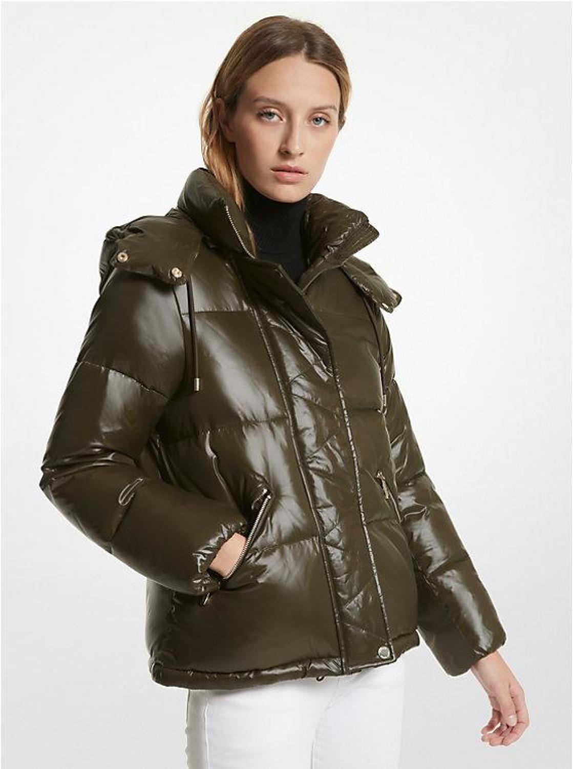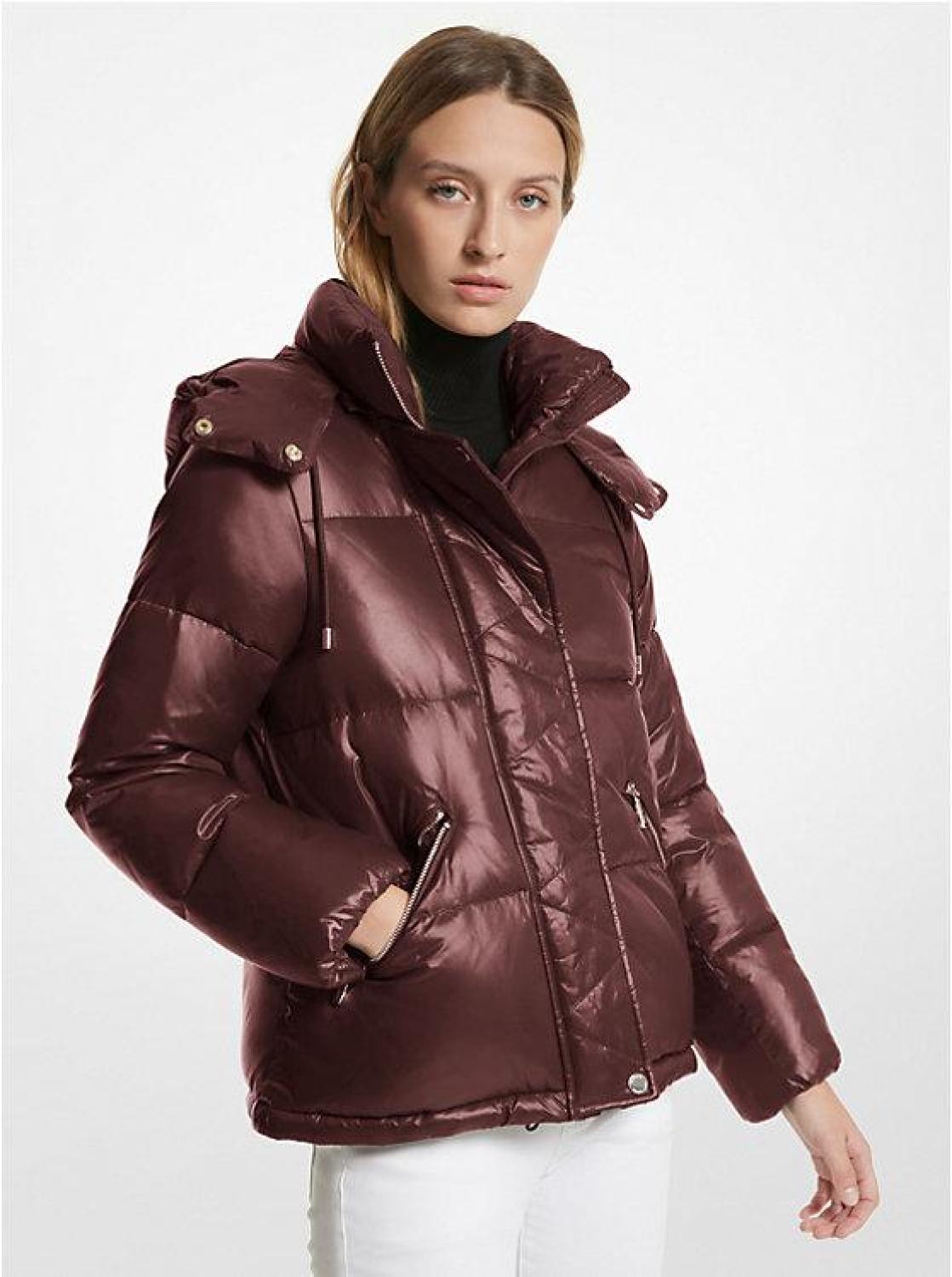 • This puffer jacket is cut from waterproof nylon with a glossy appearance that reads practical yet cool. It’s designed with a funnel neck for coverage, trusty zip pockets, and an adjustable hood. Reach for it on days with a chance of snow and wind.