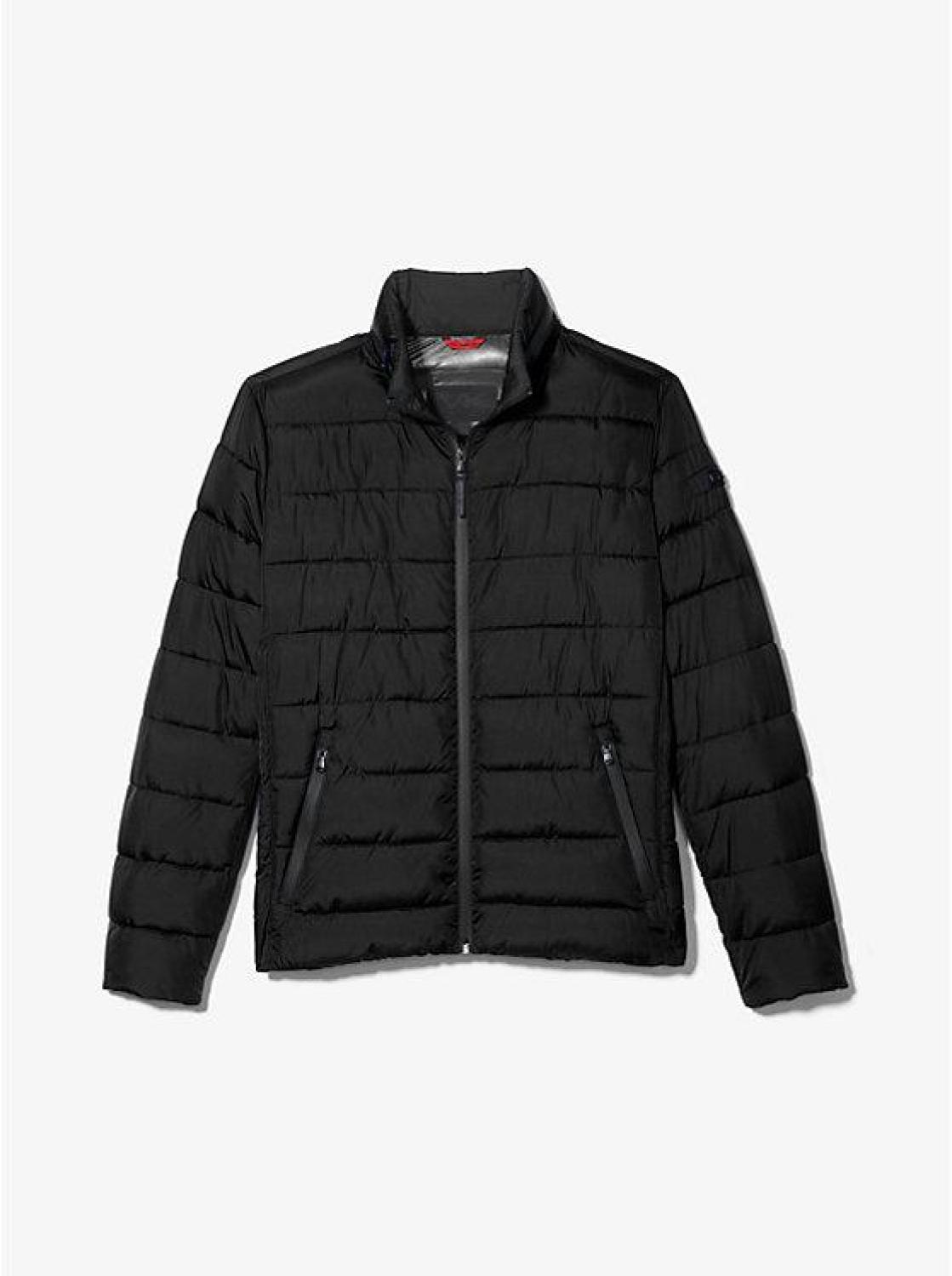 • Made from a durable yet water-resistant fabric, this quilted puffer jacket is a cold-weather staple on both the slopes or city streets. Filling made from recycled fibers and a high neckline combine for added warmth, while front zip pockets lend a practical finish. Layer it over a sweater on brisk days.