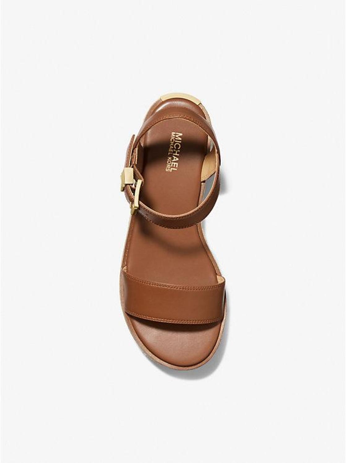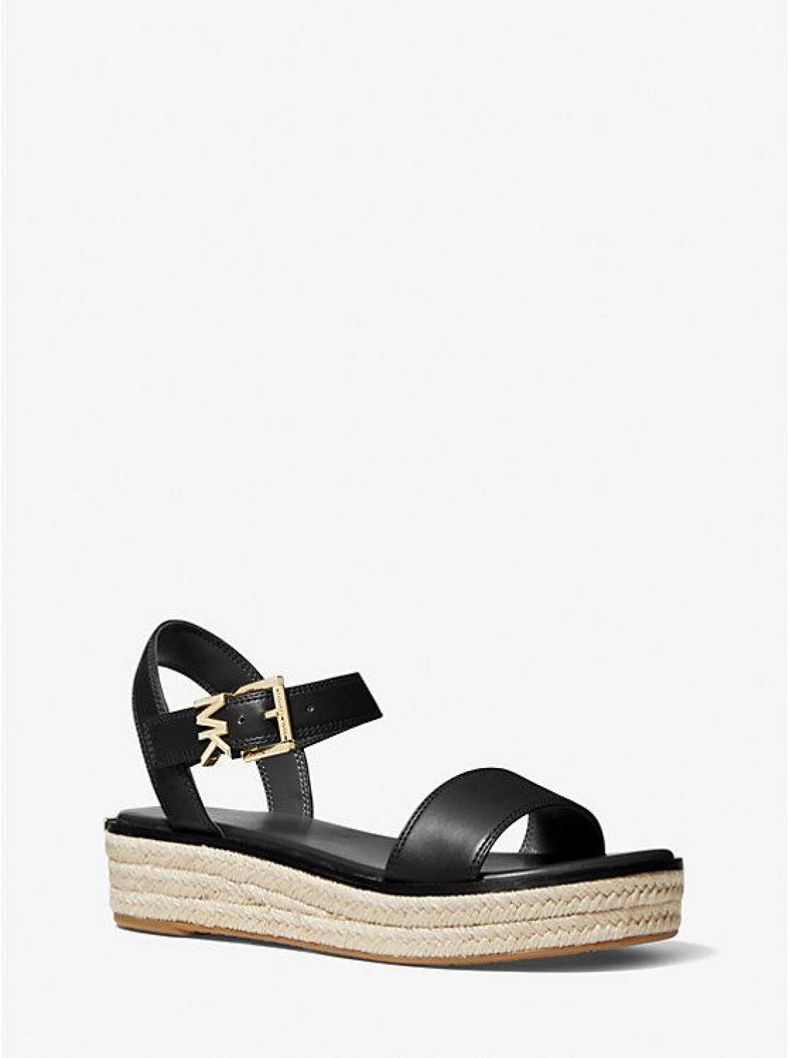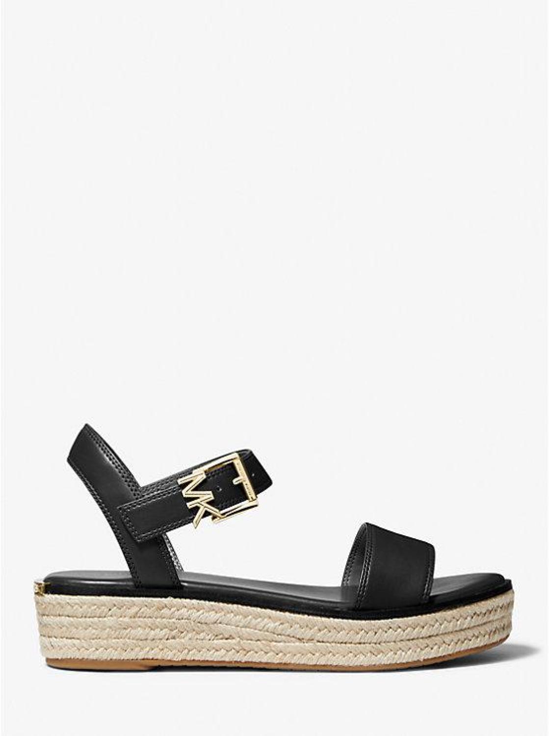 • Strut into summer with the perfect shoe for every occasion. Polished with our iconic “MK” initials, the Richie sandal is crafted from faux leather and set on a woven jute platform for a bohemian twist. We love how the ankle strap and chunky sole combine to create the illusion of longer legs.