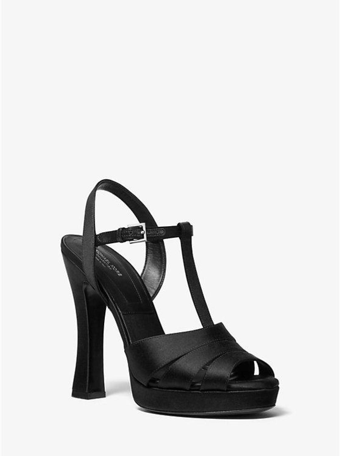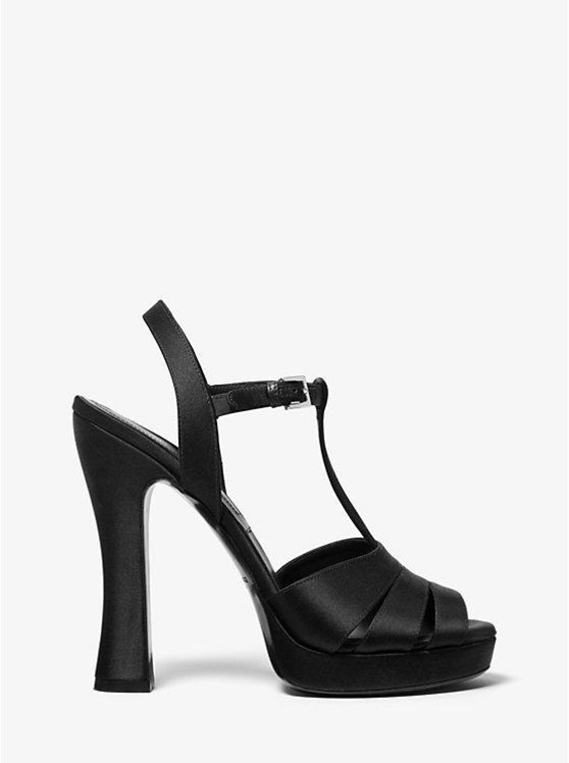 • The Rosanna platform sandals are crafted in Italy with satin for a rich, lustrous effect. Set on a towering heel, this T-strap silhouette will add an extravagant finish to myriad ensembles.