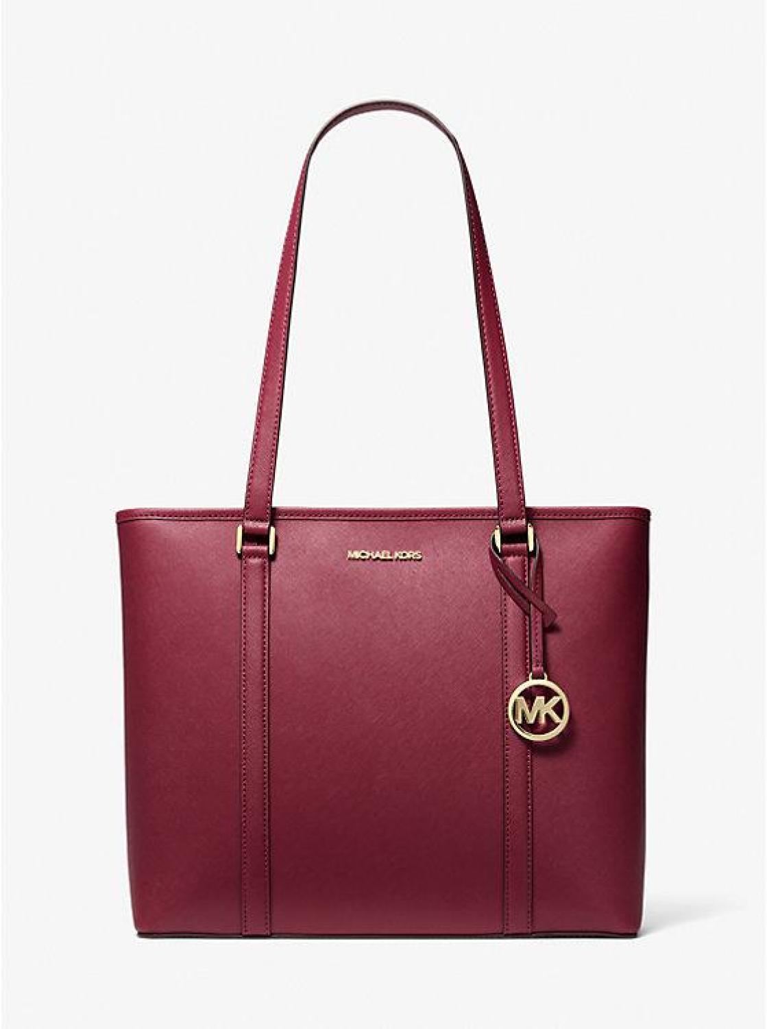 • Our Sady tote bag is a timeless addition to your handbag arsenal. Crafted from our Saffiano leather, it features a top-zip fastening that opens to a spacious interior. It’s finished with a logo charm for novelty appeal. Count on it as the perfect companion for commutes and weekend getaways alike.