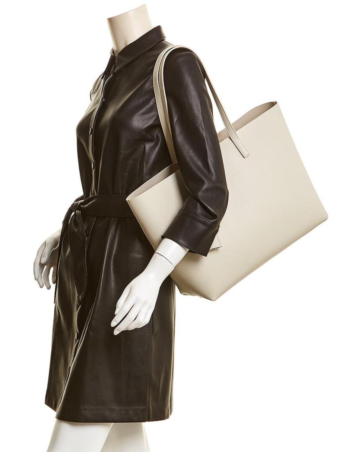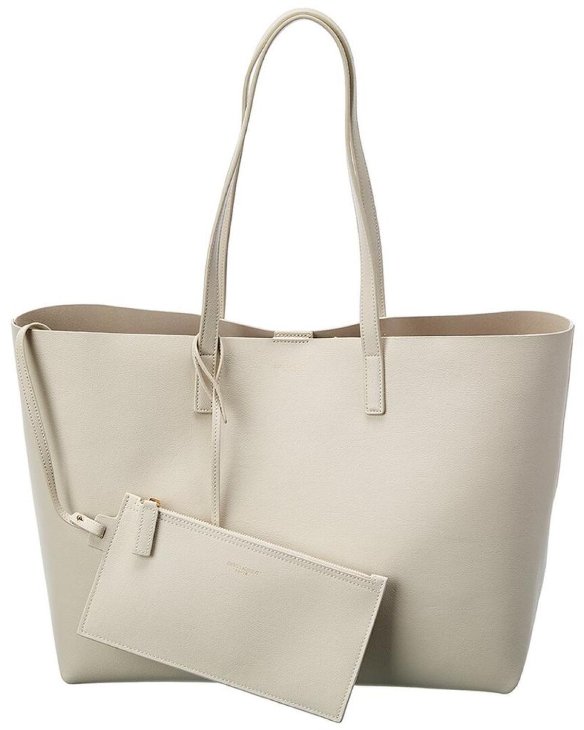 Introducing the stylish and versatile Saint Laurent E/W Leather Shopper Tote. Crafted with impeccable attention to detail, this exquisite handbag embodies the essence of luxury and sophistication. As a coveted creation from the renowned brand Saint Laurent, this tote exudes timeless elegance and showcases the brand's iconic design expertise. Its sleek silhouette and superior craftsmanship make it a must-have accessory for the fashion-forward woman.Made from high-quality leather, this tote bag offers durability and longevity without compromising on style. The lustrous leather exterior is both luxurious and practical, easily complementing any ensemble, while the spacious interior provides ample room for all your essentials. Whether you're heading to the office, going shopping, or attending a social event, this tote effortlessly combines fashion with functionality.Designed to fit comfortably on your shoulder or be carried by hand, this bag adapts to your lifestyle with ease. The sturdy handles ensure a secure grip, while the zip-top closure keeps your belongings safe and secure. Moreover, the signature Saint Laurent logo subtly graces the front, further elevating its allure.In the world of women's handbags, the Saint Laurent E/W Leather Shopper Tote stands out as a true statement piece. Its timeless design, superior quality, and impeccable attention to detail make it an indispensable addition to any woman's collection. Choose this iconic tote and experience the inimitable charm of Saint Laurent.