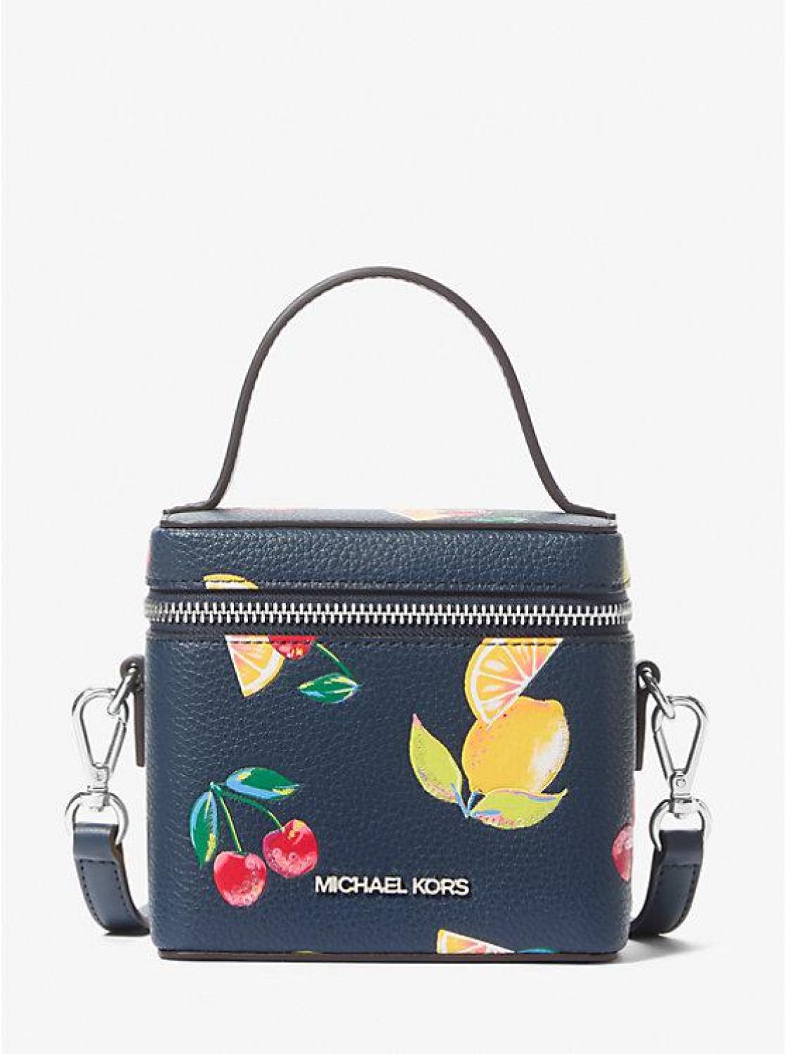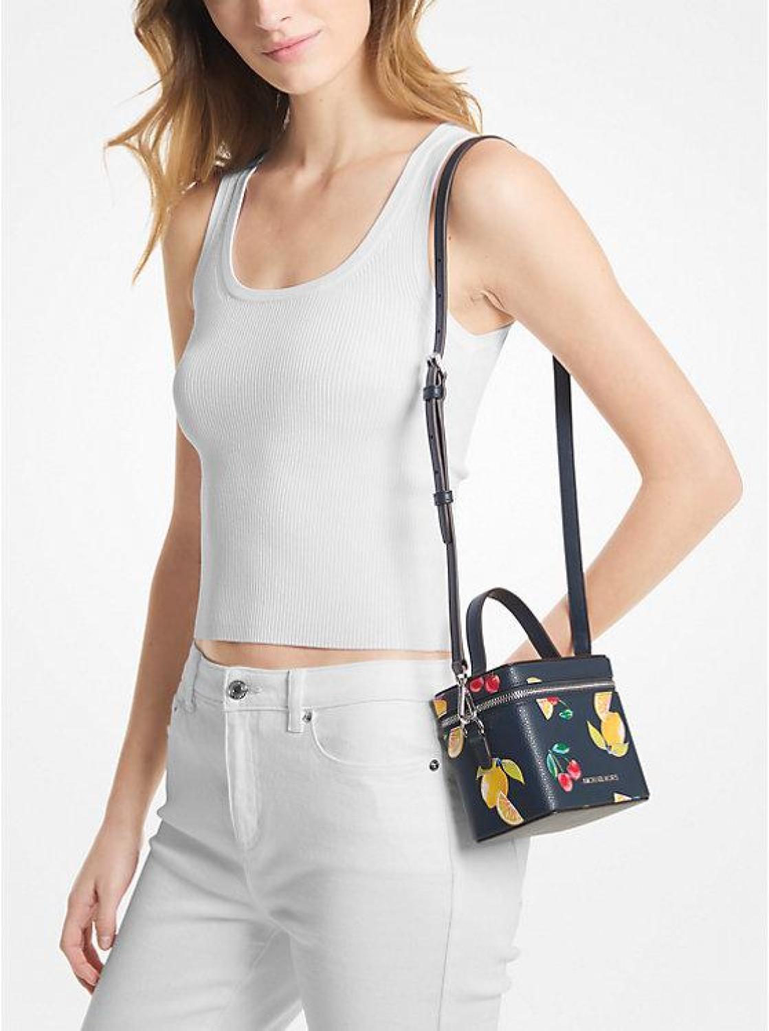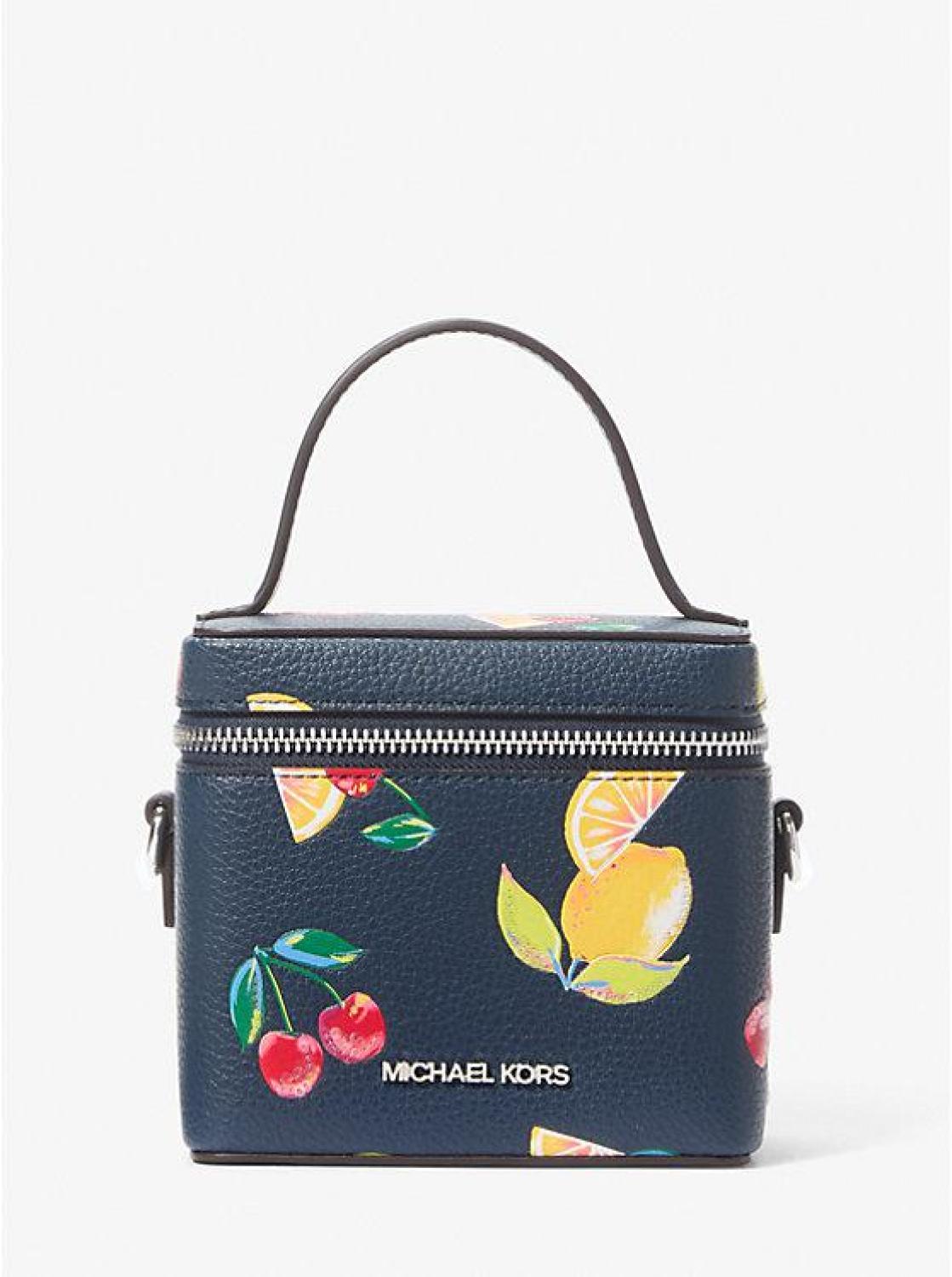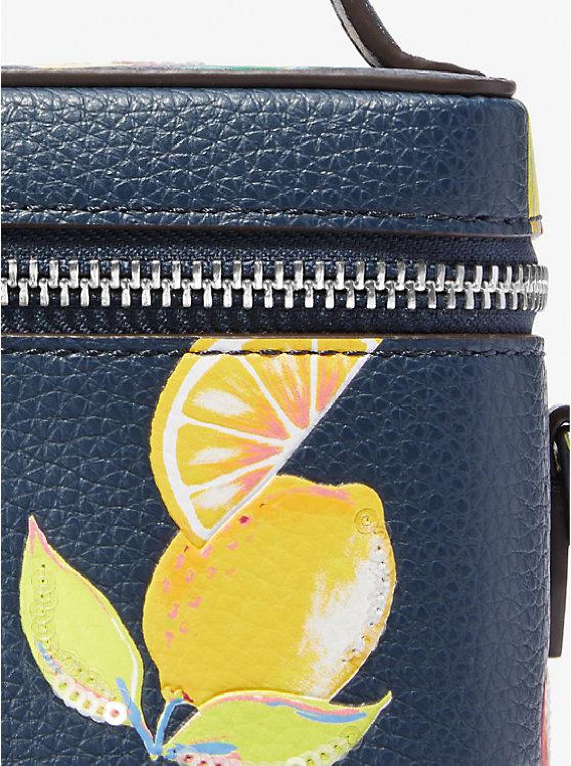 Printed with colorful fruit and outlined in sequins for a whimsical touch, the Sandrine bag is the carryall your warm-weather wardrobe has been missing.  It will accommodate all of your small essentials, including a phone, cardholder and keys. Carry it by the top handle or wear it over your shoulder with the detachable crossbody strap.