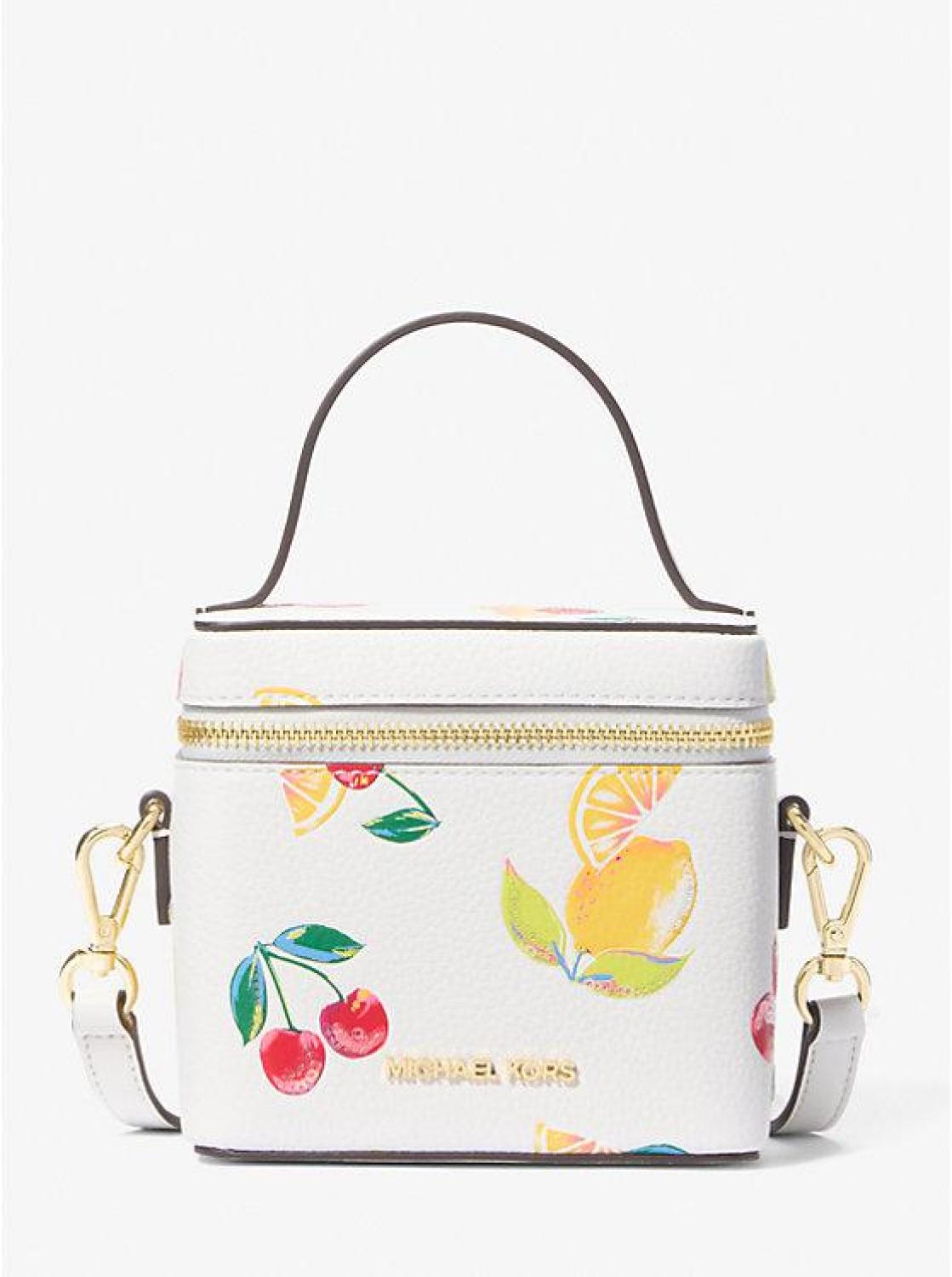 Printed with colorful fruit and outlined in sequins for a whimsical touch, the Sandrine bag is the carryall your warm-weather wardrobe has been missing. It will accommodate all of your small essentials, including a phone, cardholder and keys. Carry it by the top handle or wear it over your shoulder with the detachable crossbody strap. • Crossbody bag • Polyurethane blend • 60% polyurethane/40% polyester • Trim: 60% polyurethane/20% cotton/20% polyester • Gold-tone hardware • 5.5"W X 5.25"H X 3.75"D • Handle drop: 3” • Adjustable strap: 19.5"-23" • Lining: 100% polyester • Zip fastening • Dust bag not included • Imported • Crossbody bag • Polyurethane blend • 60% polyurethane/40% polyester • Trim: 60% polyurethane/20% cotton/20% polyester • Gold-tone hardware • 5.5"W X 5.25"H X 3.75"D • Handle drop: 3” • Adjustable strap: 19.5"-23" • Lining: 100% polyester • Zip fastening • Dust bag not included • Imported