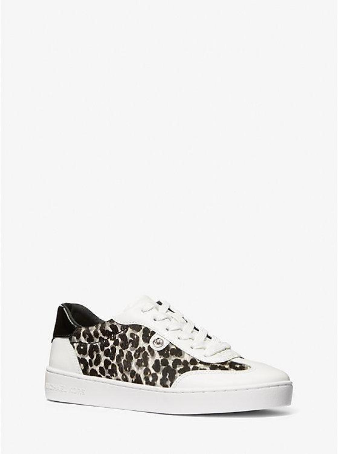 Meet the Scotty: a sleek low-top sneaker inspired by classic soccer silhouettes. This leopard-print calf hair edition features sporty perforations along the sides, leather accents and a polished logo charm for added dimension. The styling options are endless, but we think they’ll look great teamed with the season’s light-washed denim on weekends. • Sneaker • Leopard-print calf hair • 100% calf hair • Trim: 100% leather • Lining: cotton • Sole: leather • Almond toe • Lace-up fastening • Imported • Sneaker • Leopard-print calf hair • 100% calf hair • Trim: 100% leather • Lining: cotton • Sole: leather • Almond toe • Lace-up fastening • Imported
