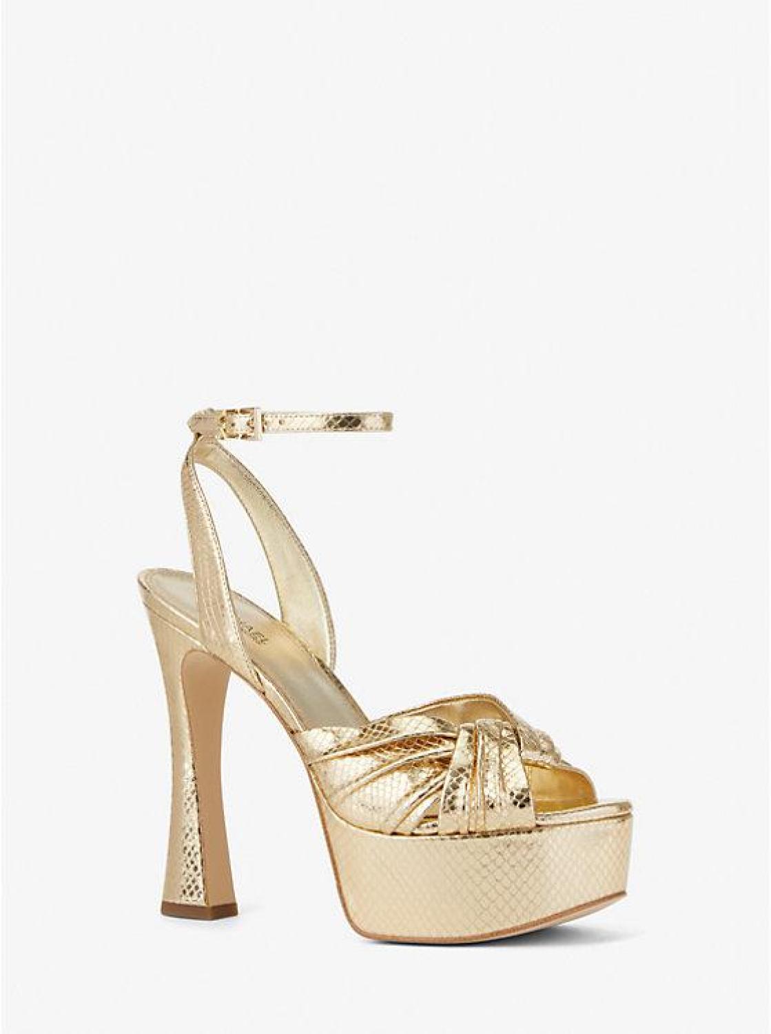 Selena Metallic Snake Embossed Leather Platform Sandal