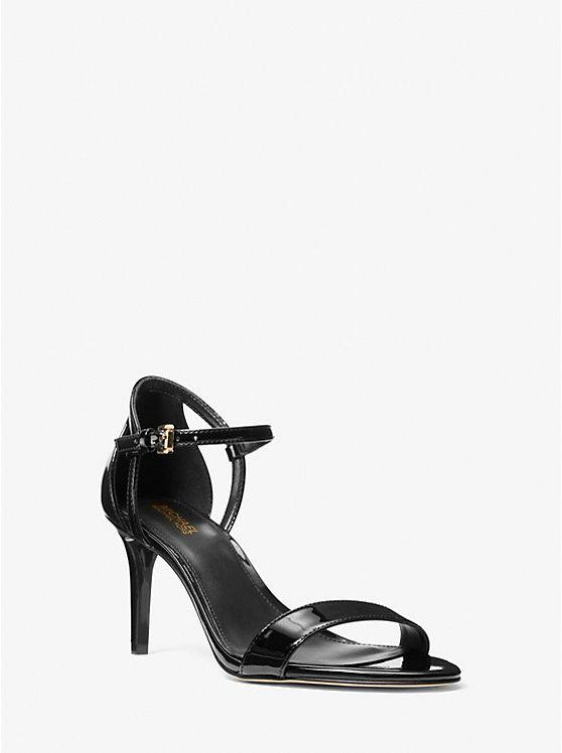 • Our Simone sandals capture timeless sophistication in a chic, pared-back silhouette with a glossy patent finish. Coordinate them with a fitted midi dress and a gleaming handbag for a polished evening ensemble.