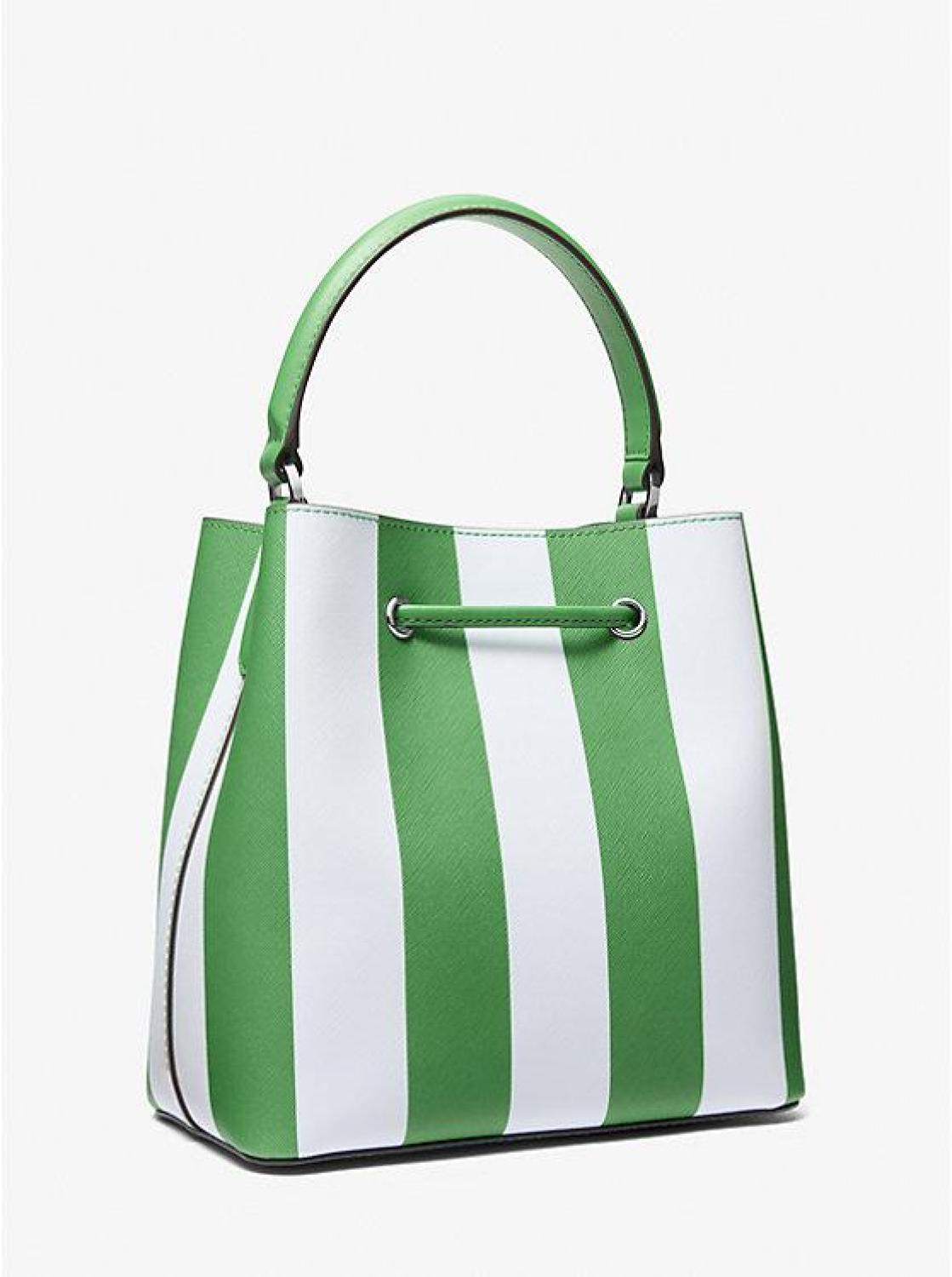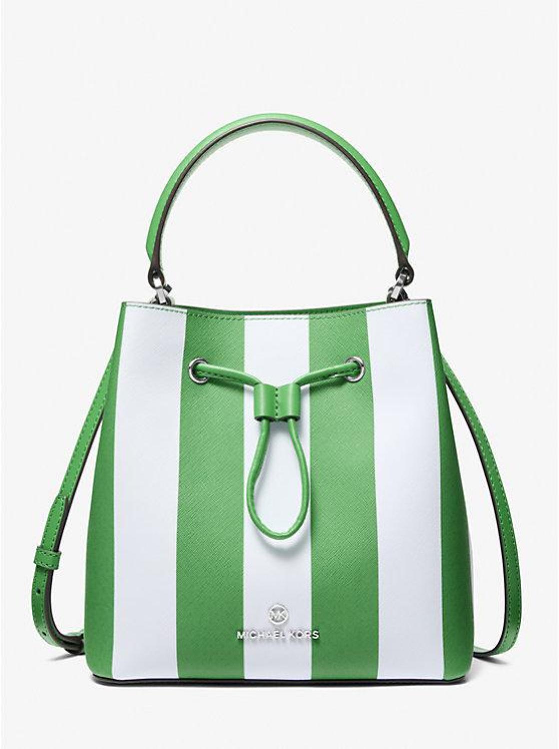 • Made with a striped exterior, the Suri crossbody bag combines a structured silhouette with polished hardware for a luxe finish. The drawstring closure opens to a spacious interior with two side pockets, so your keys, wallet and more stay organized. Carry it by the top handle or wear it across the shoulder with the removable chain strap.
