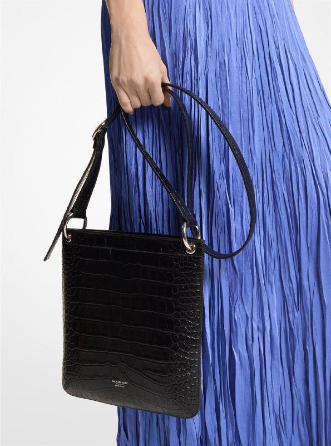 Tate Small Crocodile Embossed Patent Leather Crossbody Bag