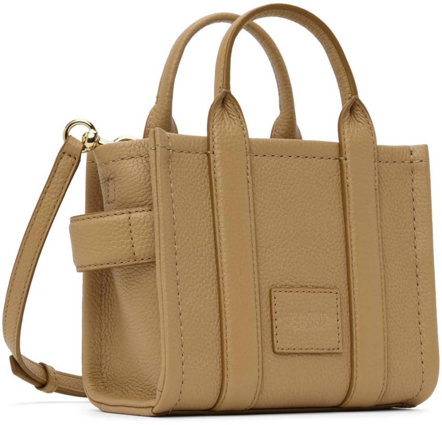 Marc Jacobs Taupe 'The Leather Crossbody' Tote Grained leather tote in taupe. · Rolled carry handles · Adjustable and detachable crossbody strap · Logo embossed at face · Carry handle at side · Logo patch at back face · Zip closure · Partial twill lining · H6" x W7" x D3.75" Supplier color: Camel Leather. Made in Viet Nam. 242190F049003