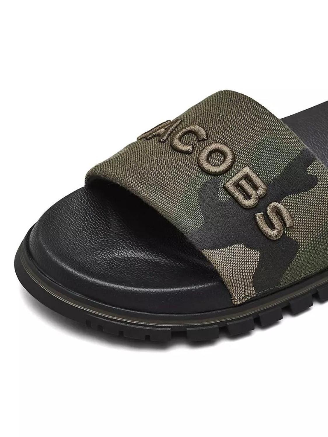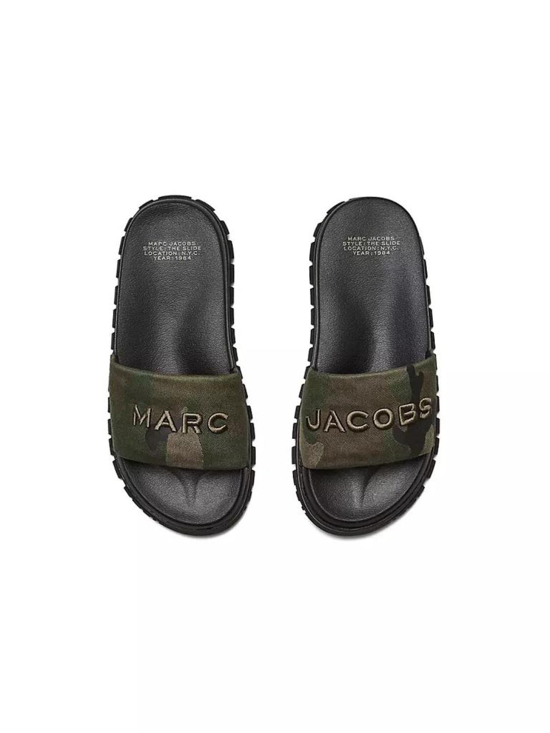 Crafted of camo canvas, The Camo Jacquard slides from Marc Jacobs are finished with logo embroidery. Open toe Slips on Canvas upper Rubber sole Imported SIZE Platform: about 1" Crafted of camo canvas, The Camo Jacquard slides from Marc Jacobs are finished with logo embroidery.Open toeSlips onCanvas upperRubber soleImportedSIZEPlatform: about 1"