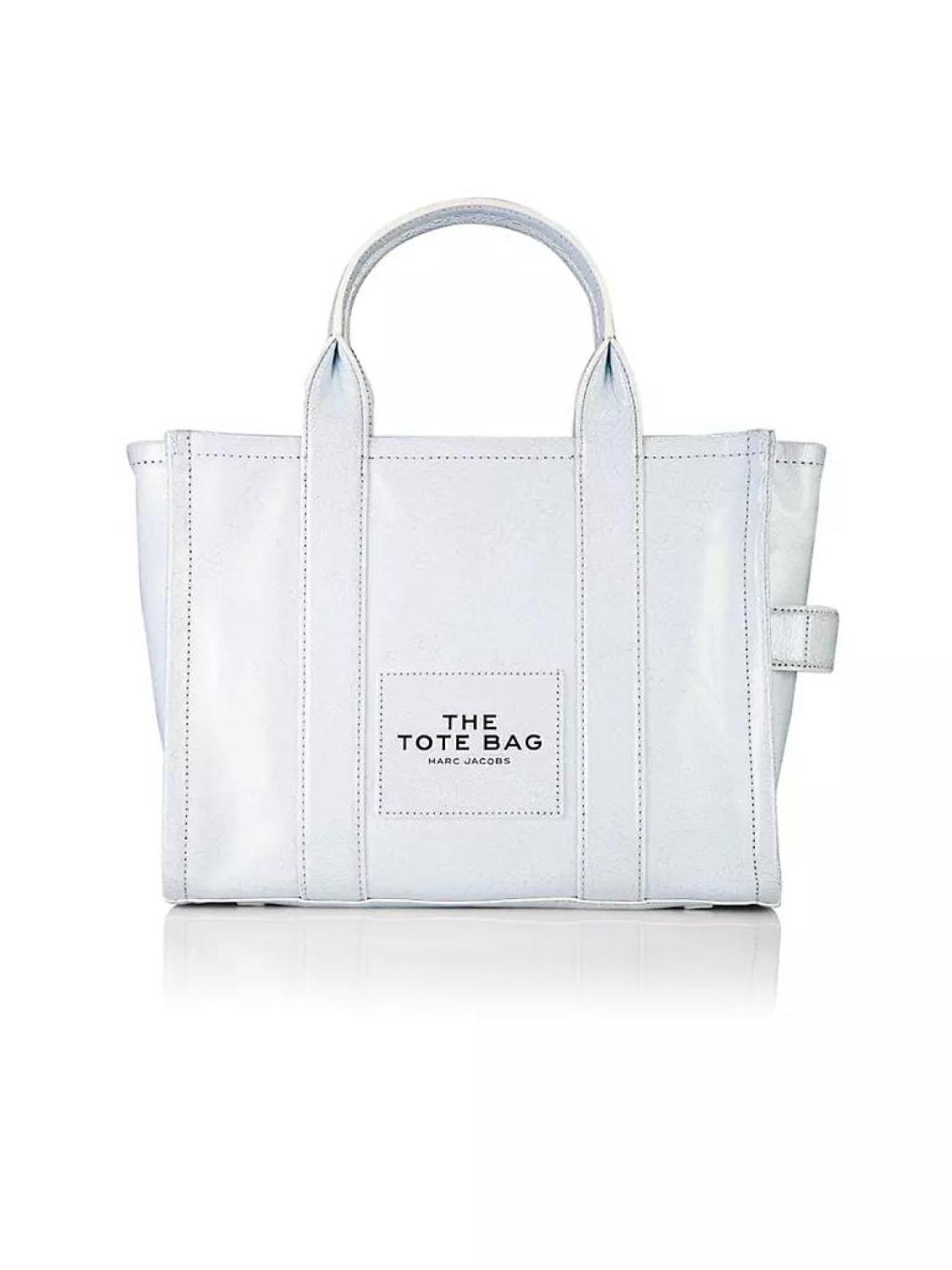 • The Medium Tote from Marc Jacobs is crafted of metallic leather with a removable shoulder strap.