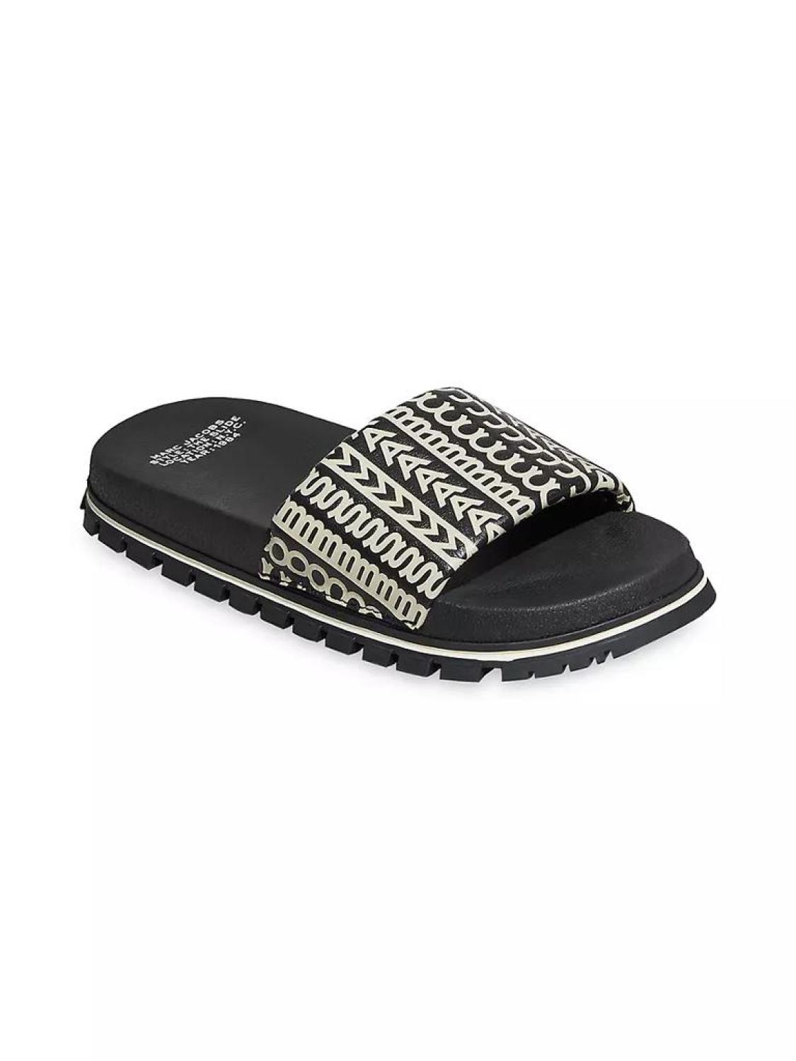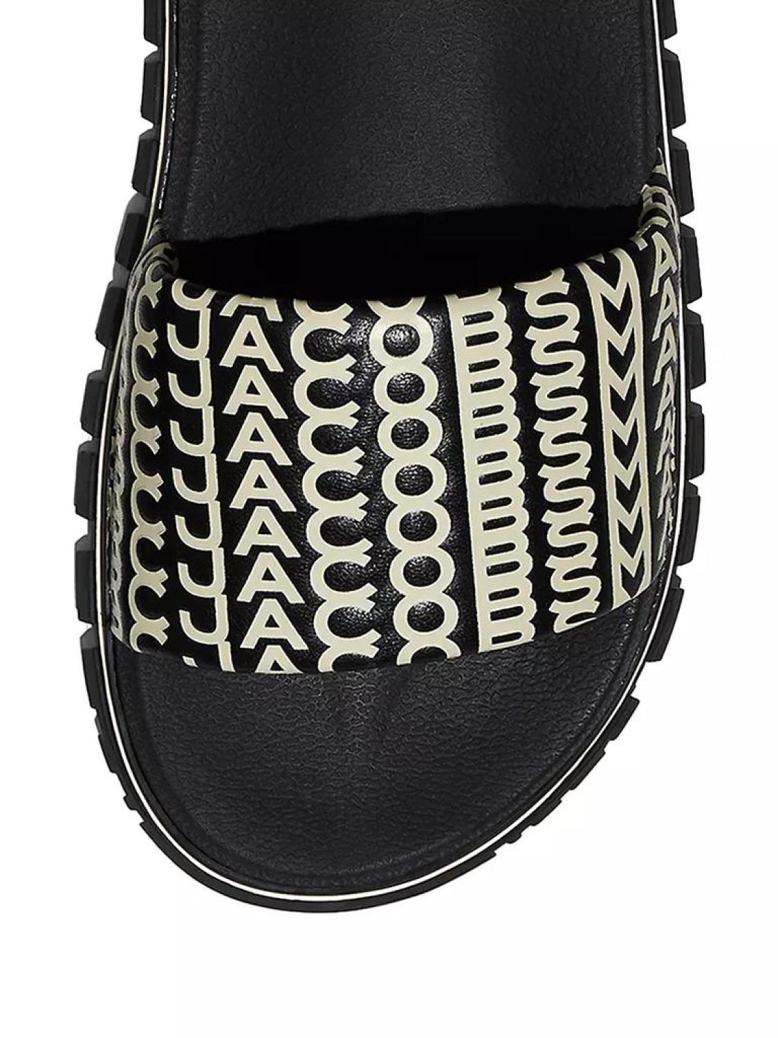 • The Monogram slides from Marc Jacobs are crafted of sleek leather and finished with a chunky lugged sole.