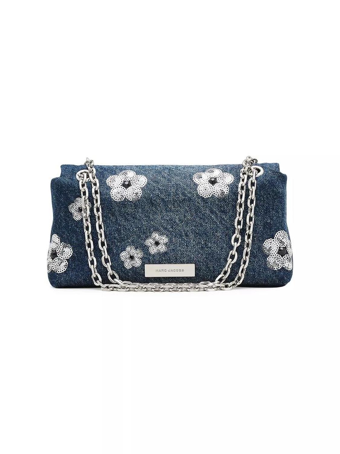 The Sequin Daisy Denim Dual Chain Shoulder Bag