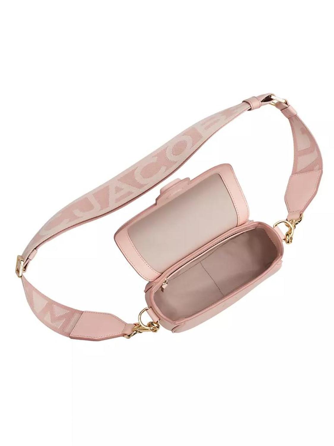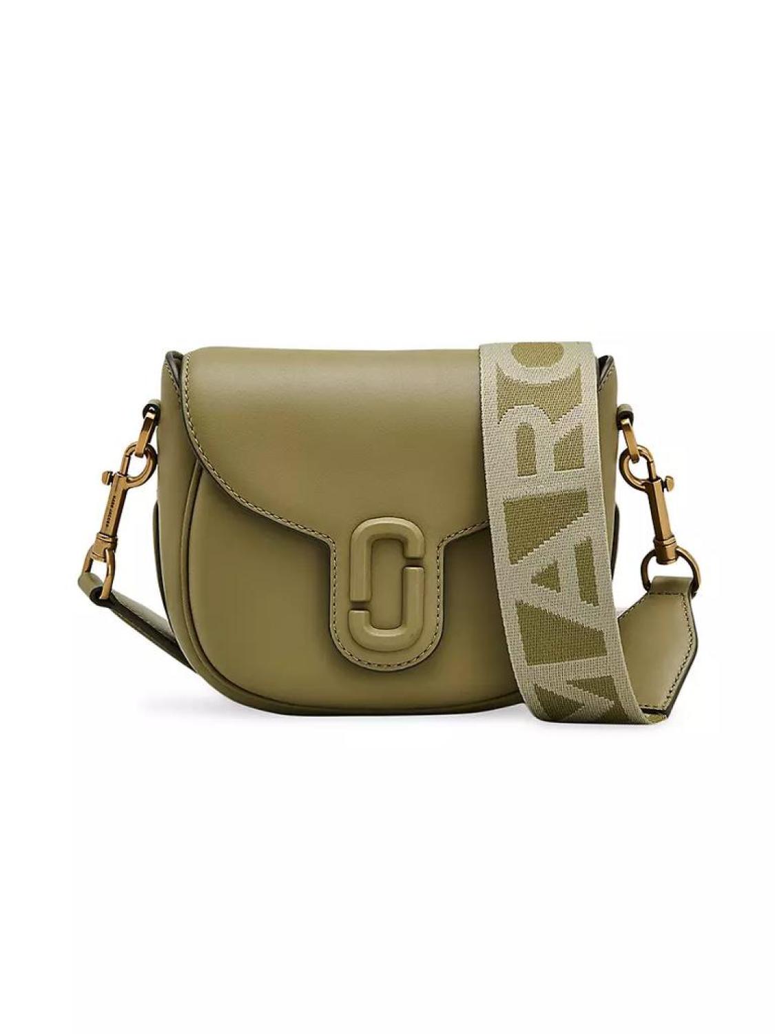 • Crafted of supple leather, the small saddle bag from Marc Jacobs is finished with tonal J Marc hardware and a logo webbing strap.