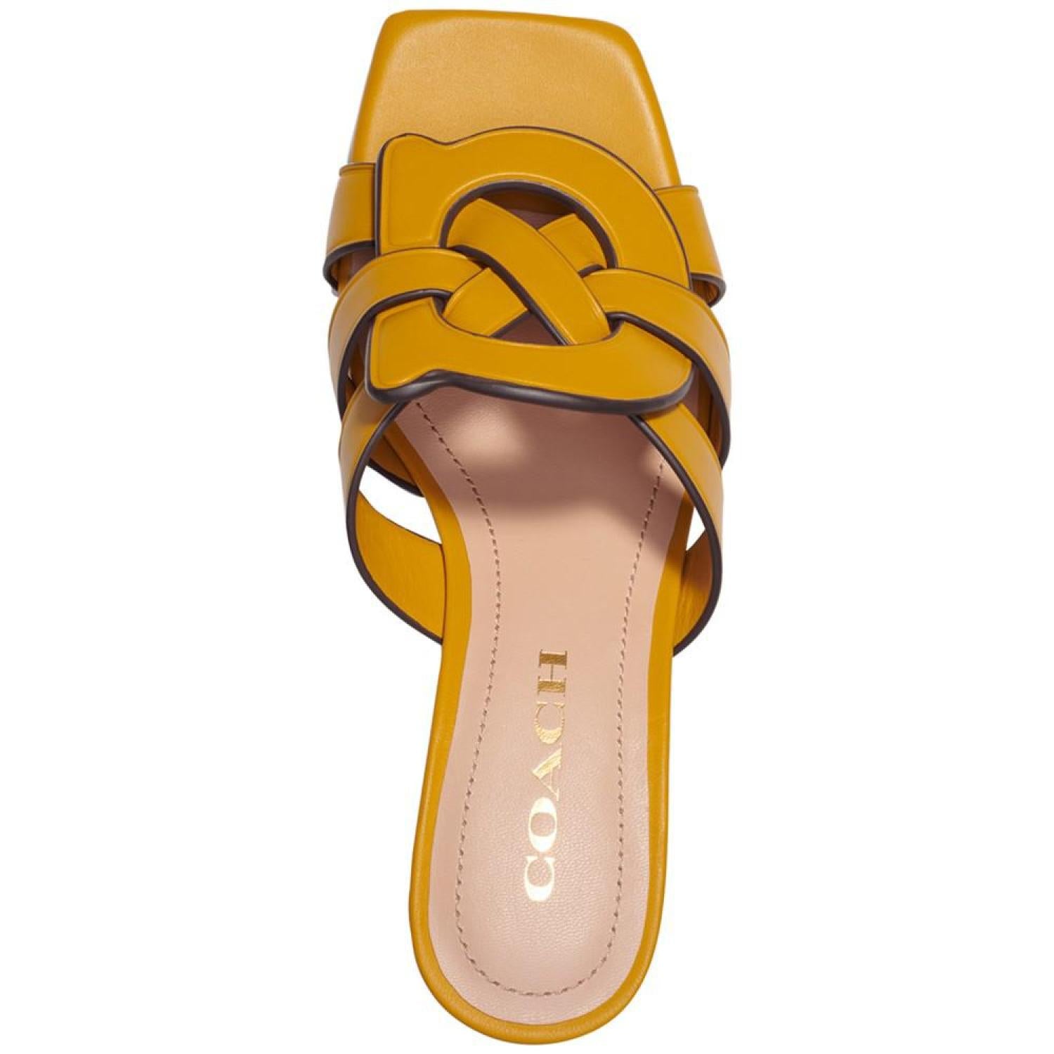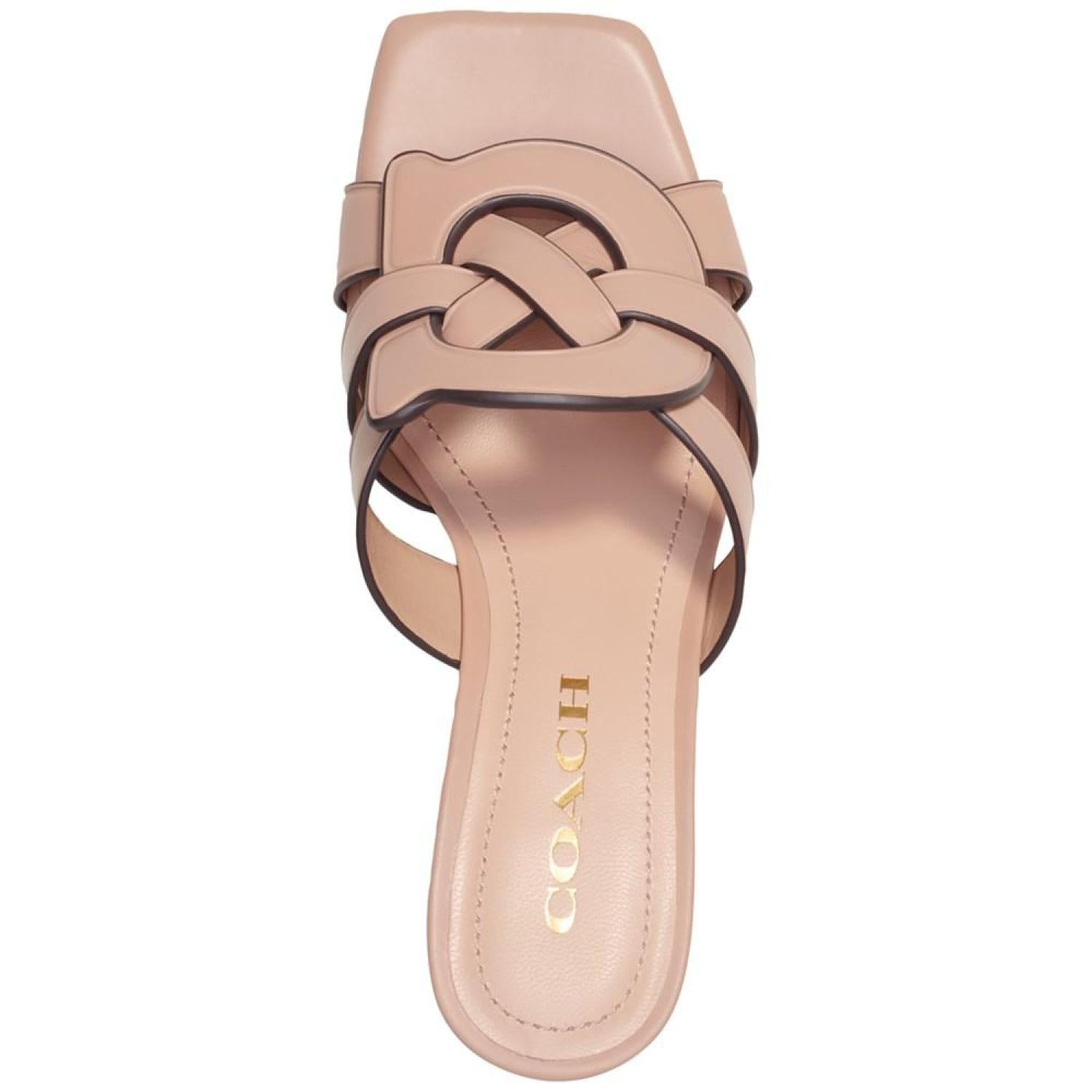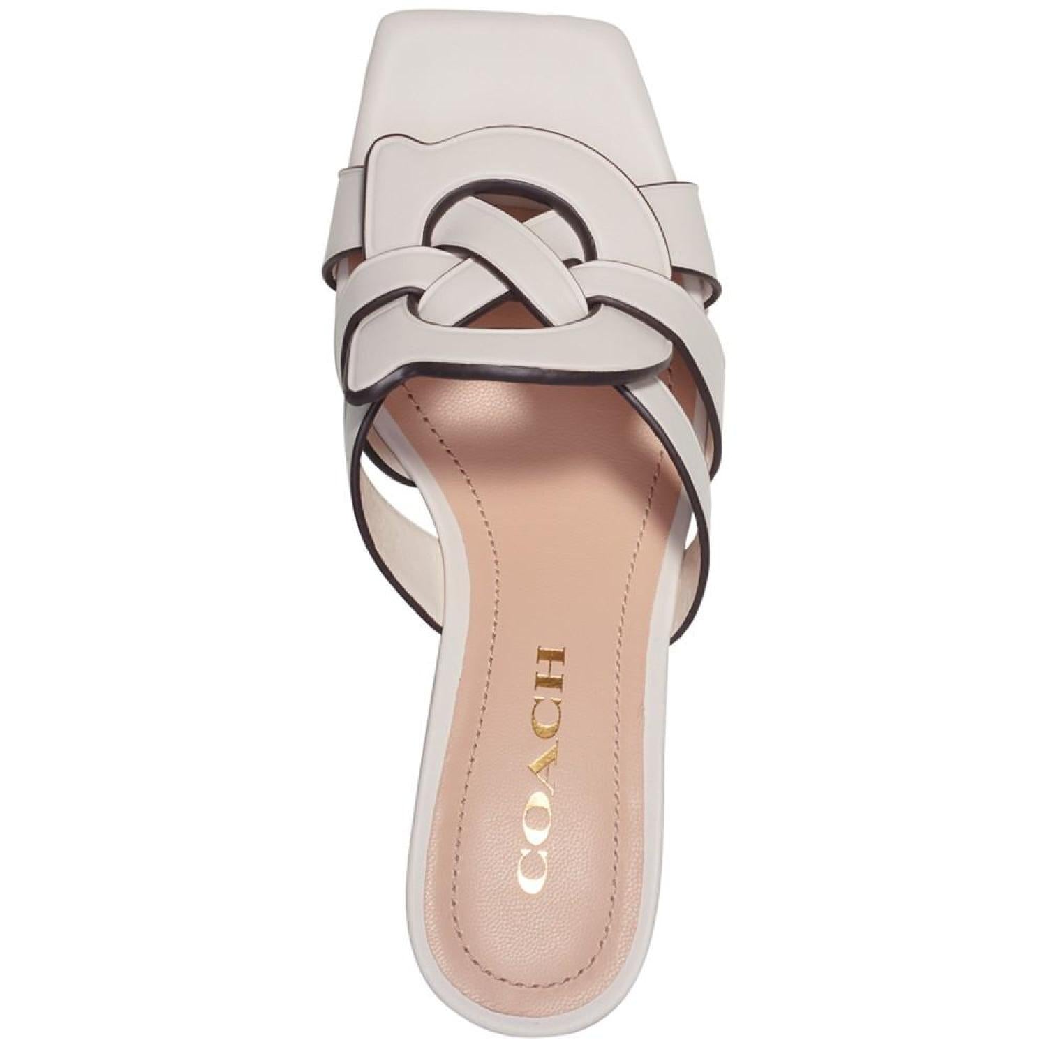 Woven with signature style, the Tillie "C" sandals from COACH elevate any look with dressy attitude and slip-on ease. 2-1/2" heel; 1/4" platform Leather Leather sole Imported