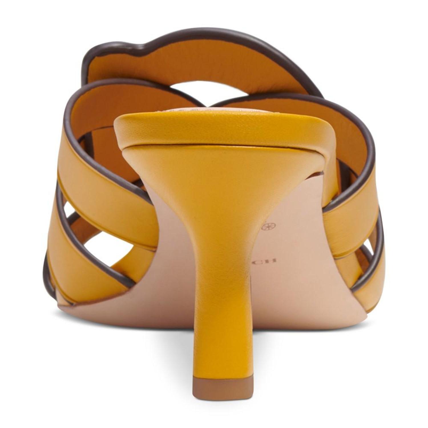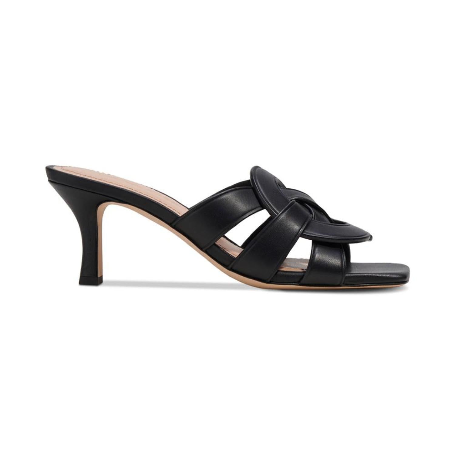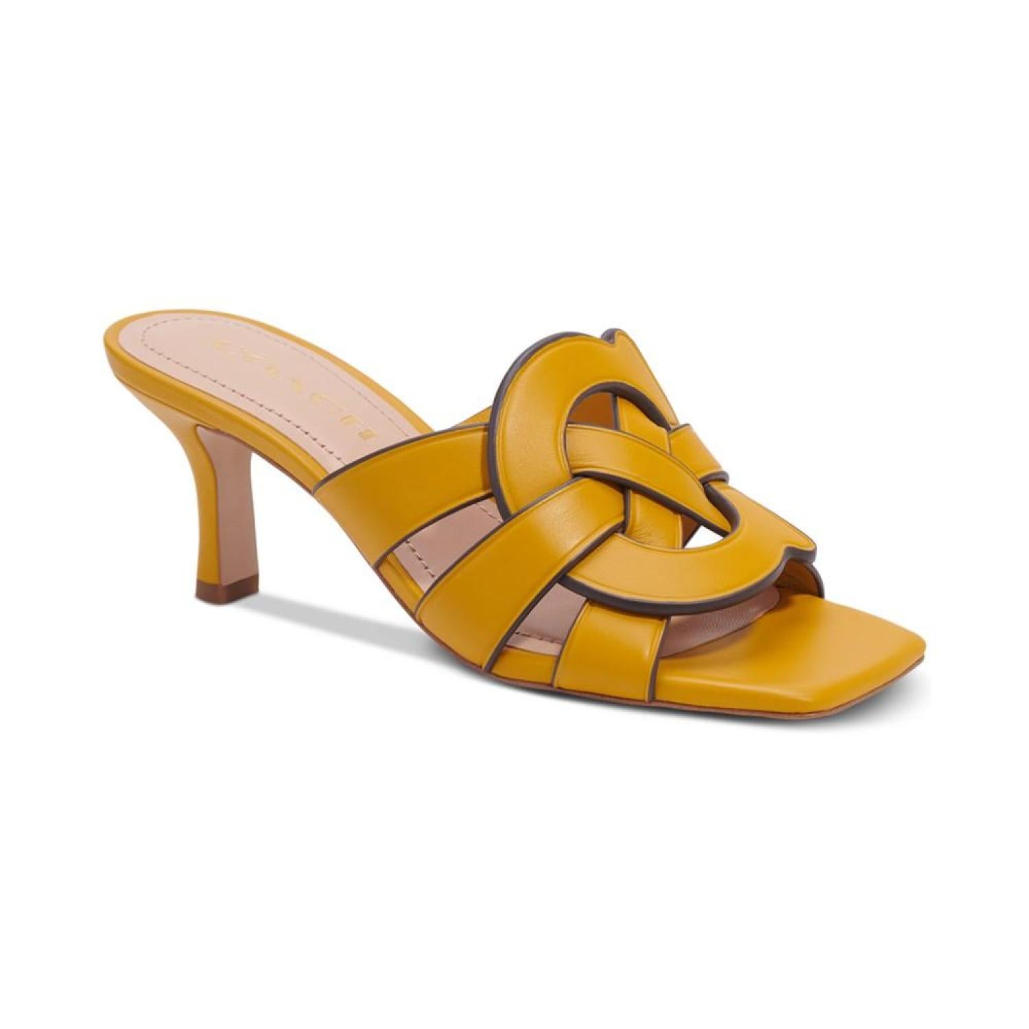 Woven with signature style, the Tillie "C" sandals from COACH elevate any look with dressy attitude and slip-on ease. 2-1/2" heel; 1/4" platform Leather Leather sole Imported