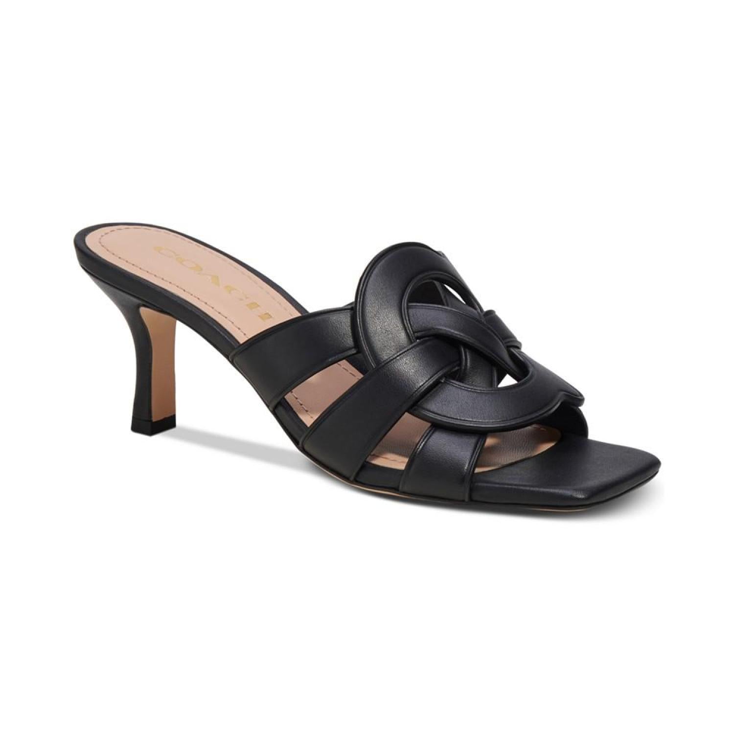 Tillie "C" Emblem Kitten-Heel Dress Sandals