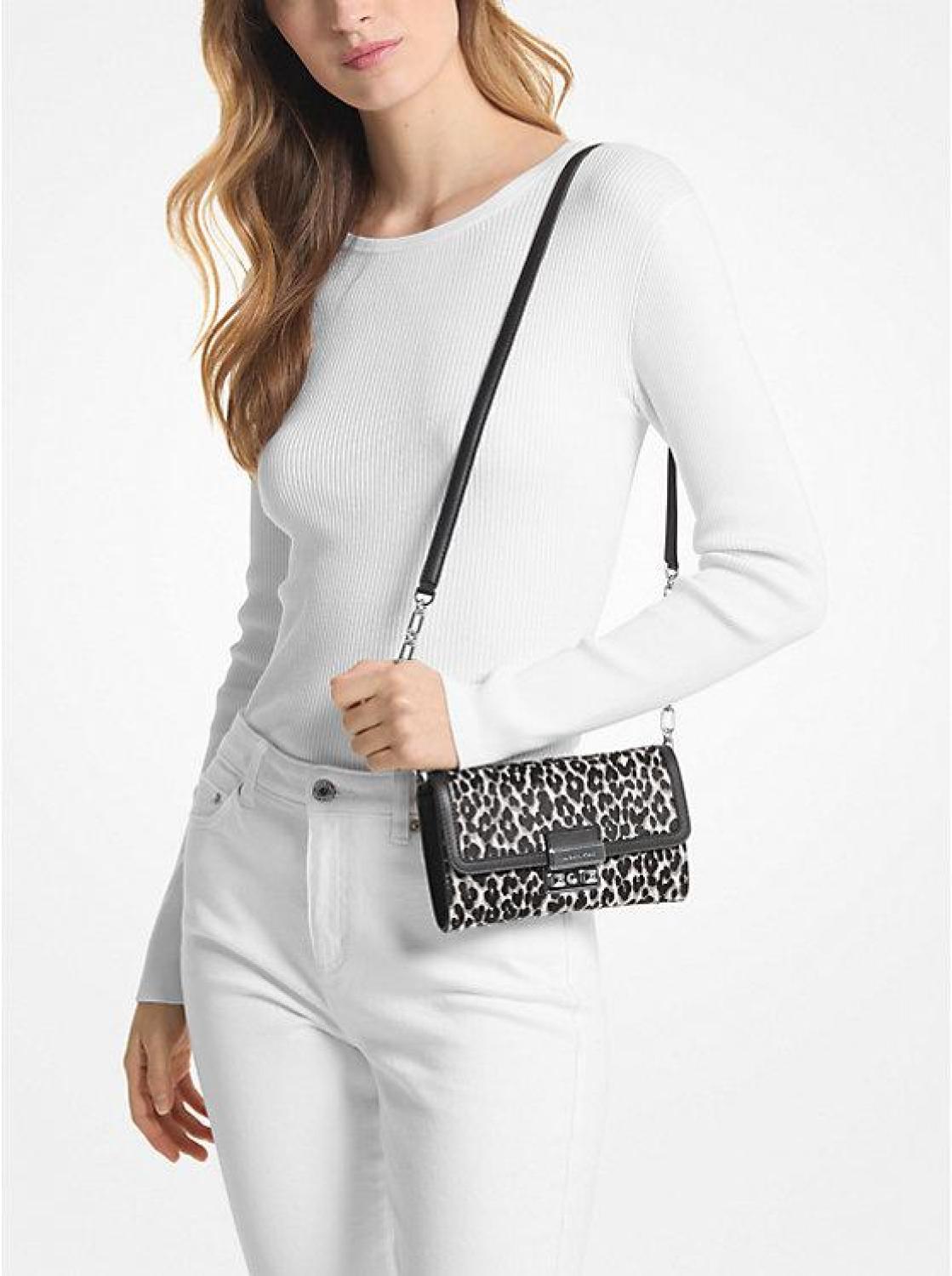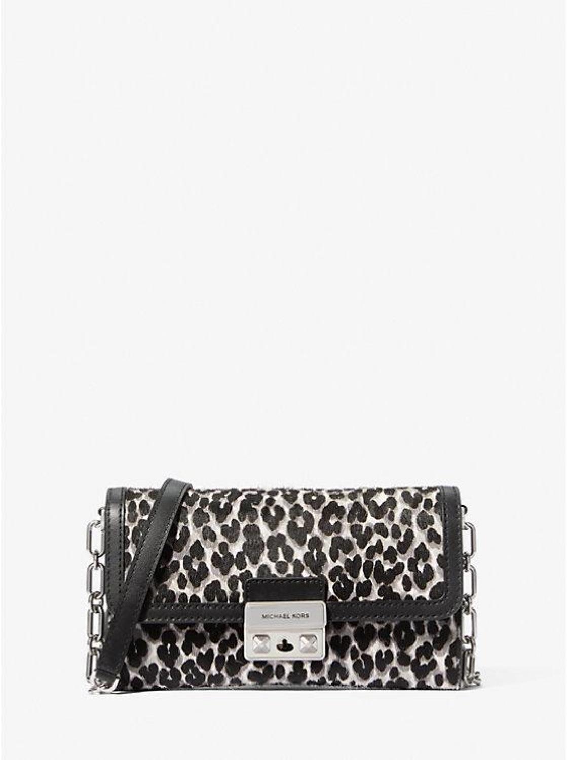 Tribeca Large Leopard Print Calf Hair Convertible Crossbody Bag
