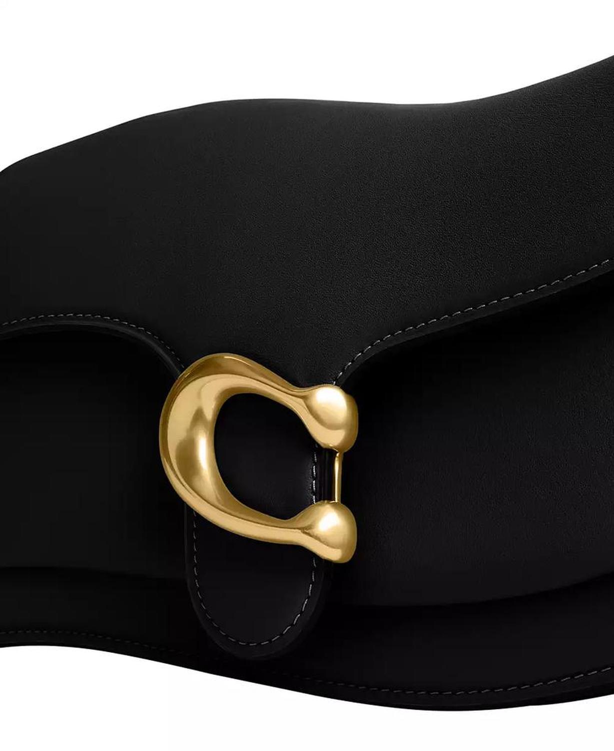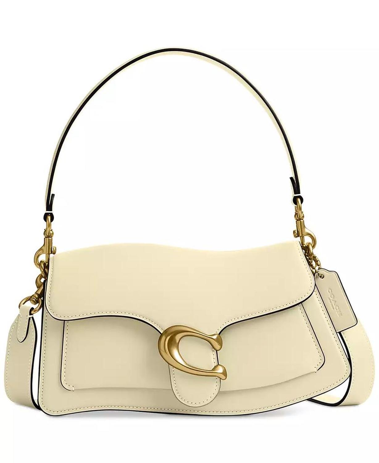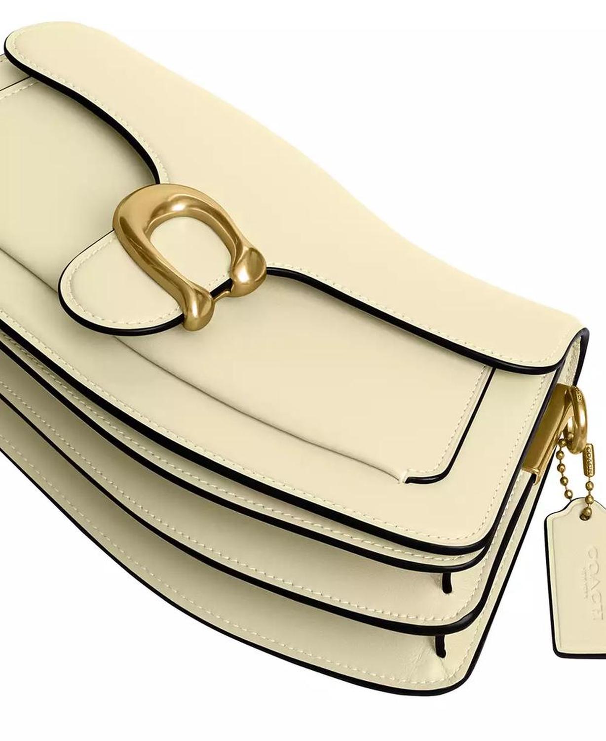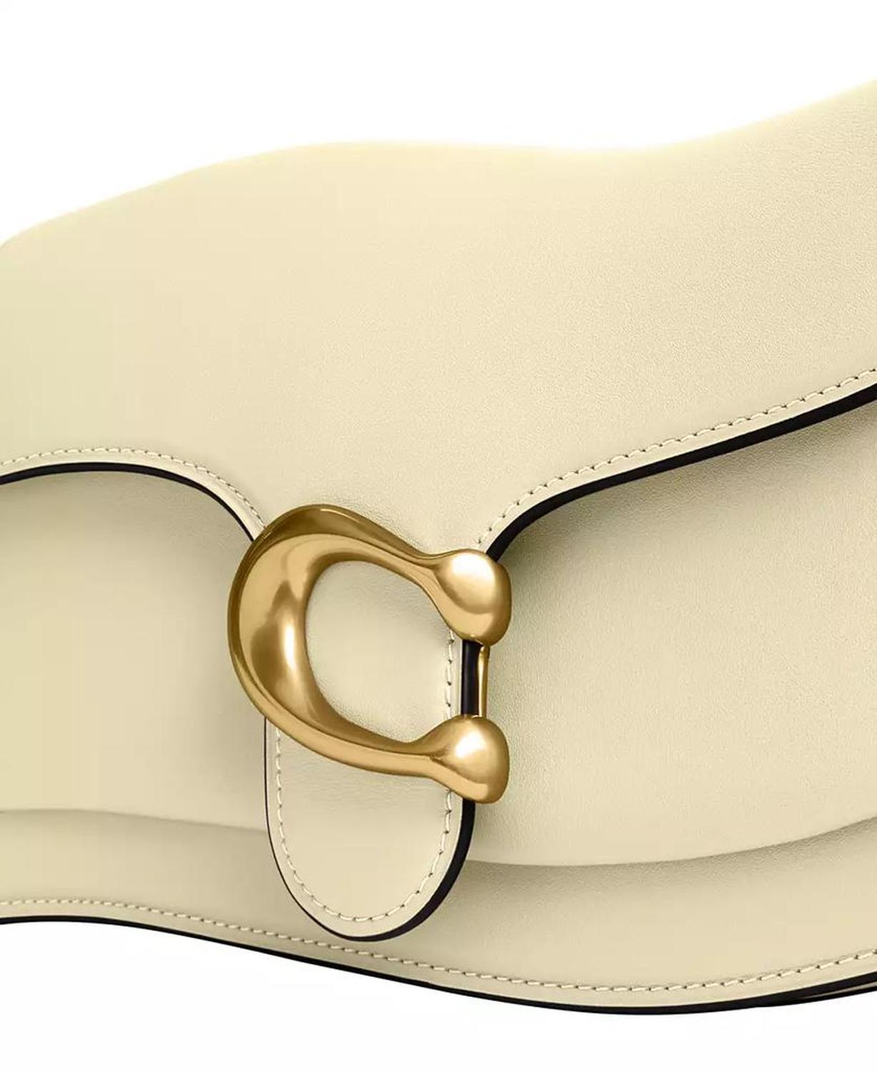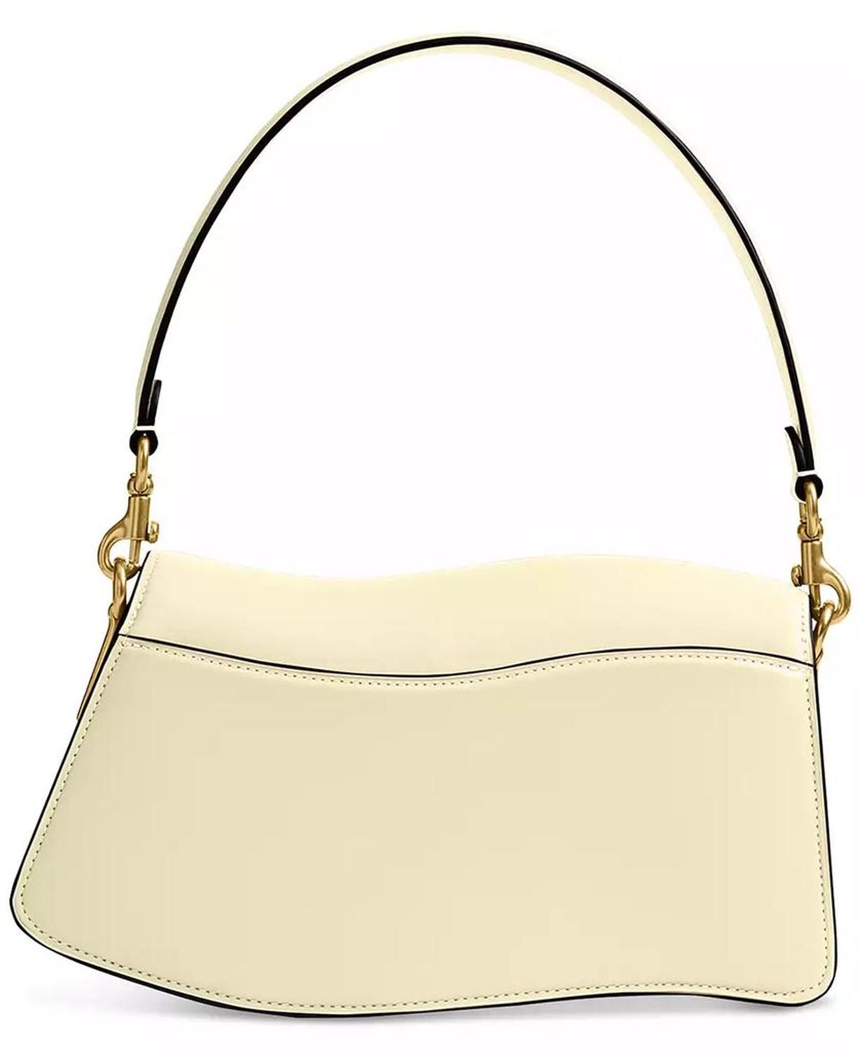 Don't get it twisted; this leather handbag makes a one-of-a-kind statement with its warped silhouette accented with the iconic COACH logo at the front.