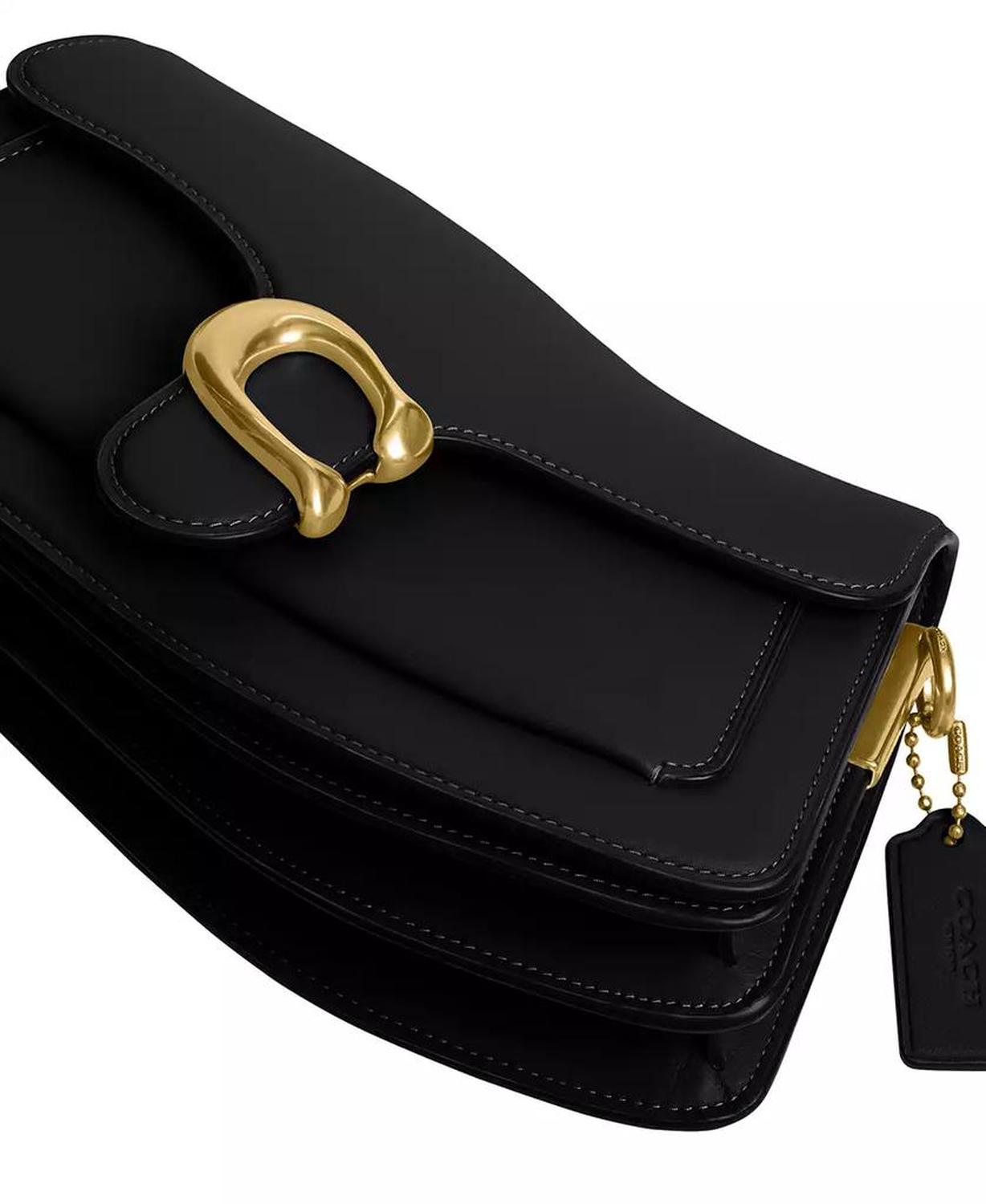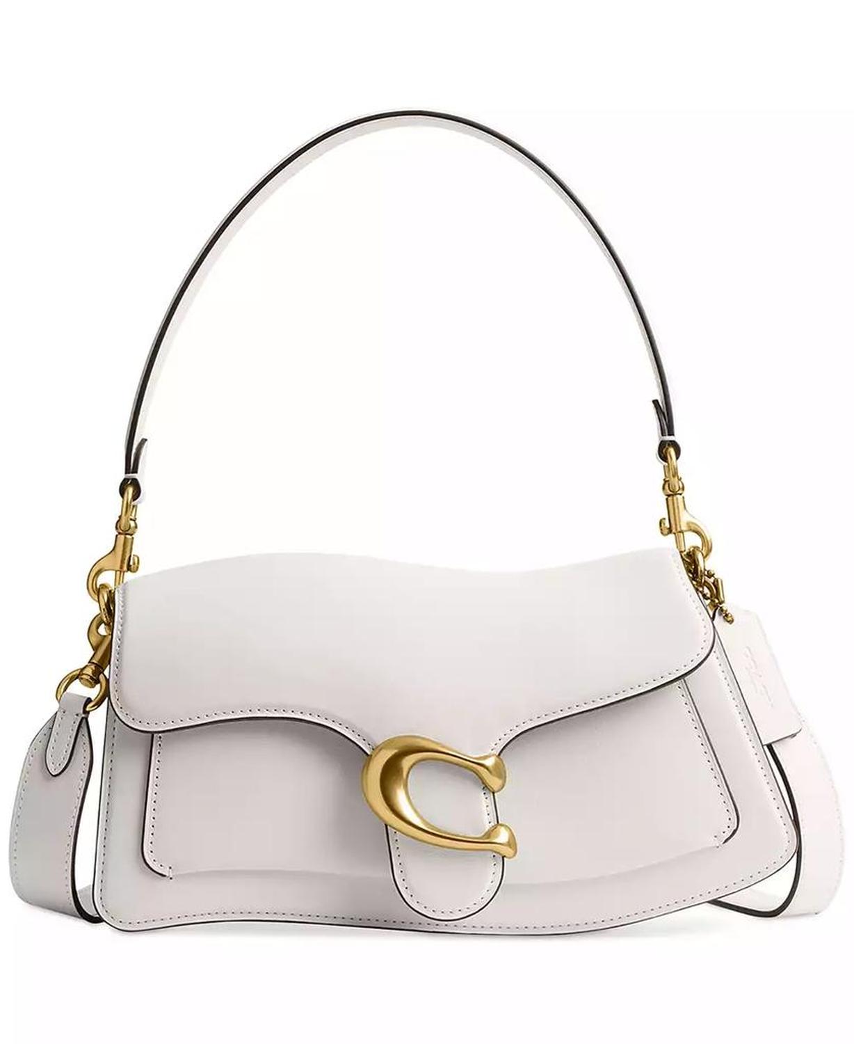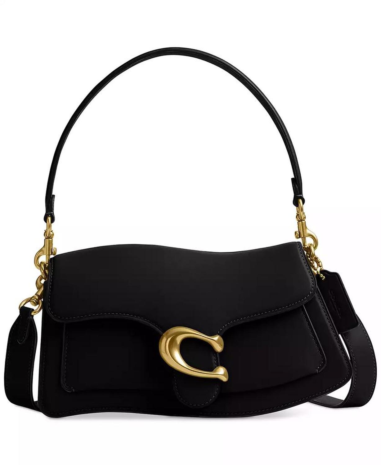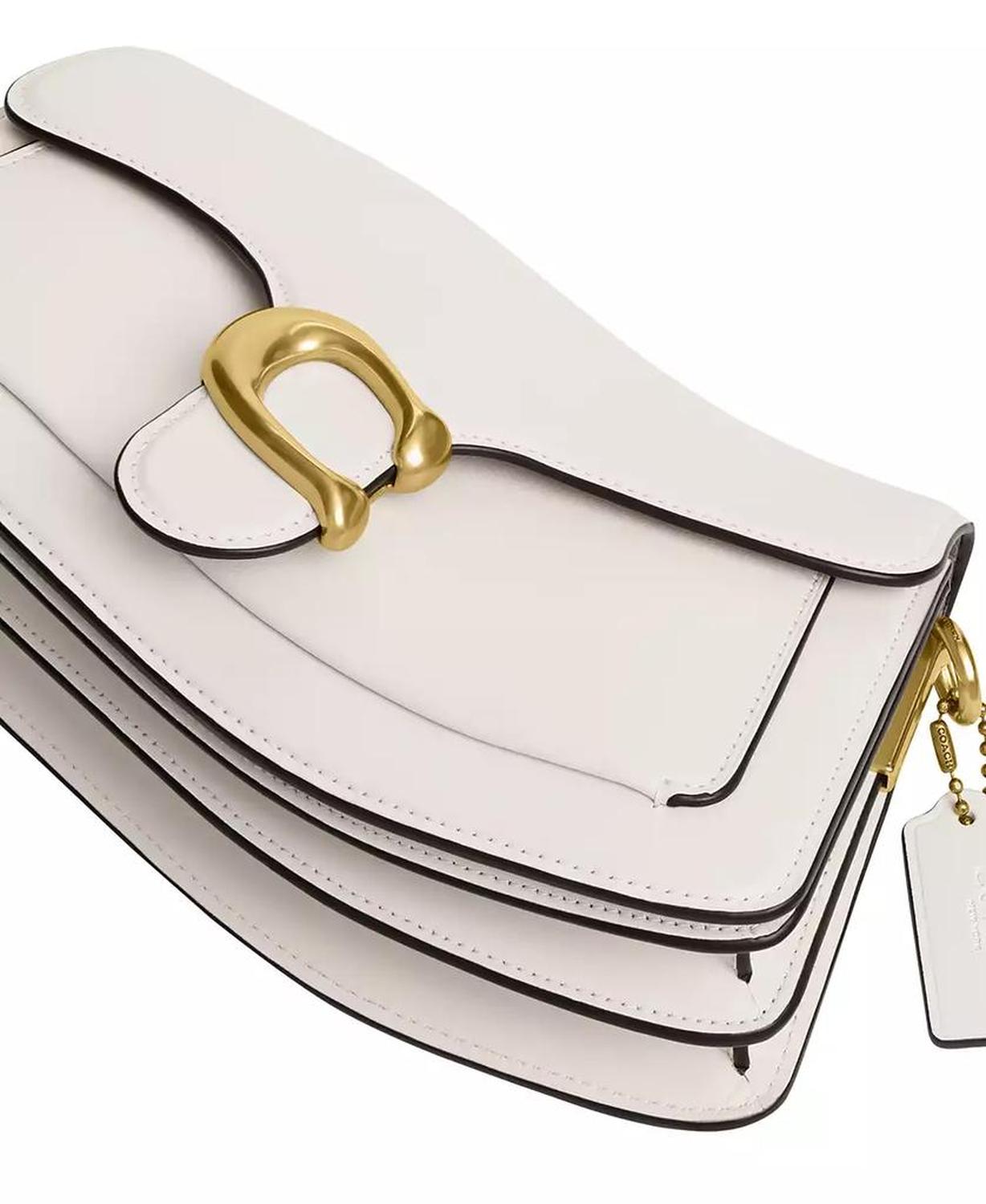 • Don't get it twisted; this leather handbag makes a one-of-a-kind statement with its warped silhouette accented with the iconic COACH logo at the front.