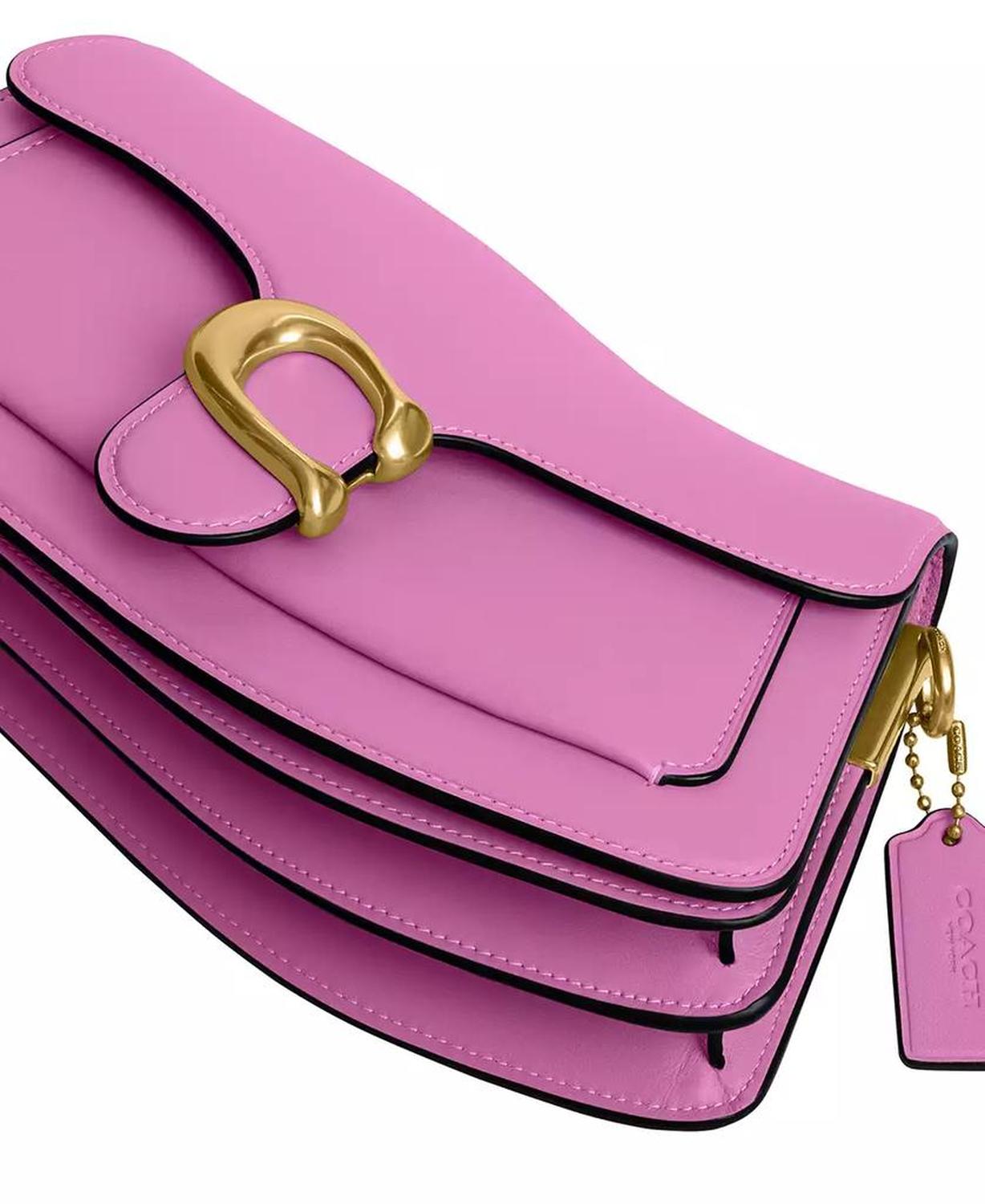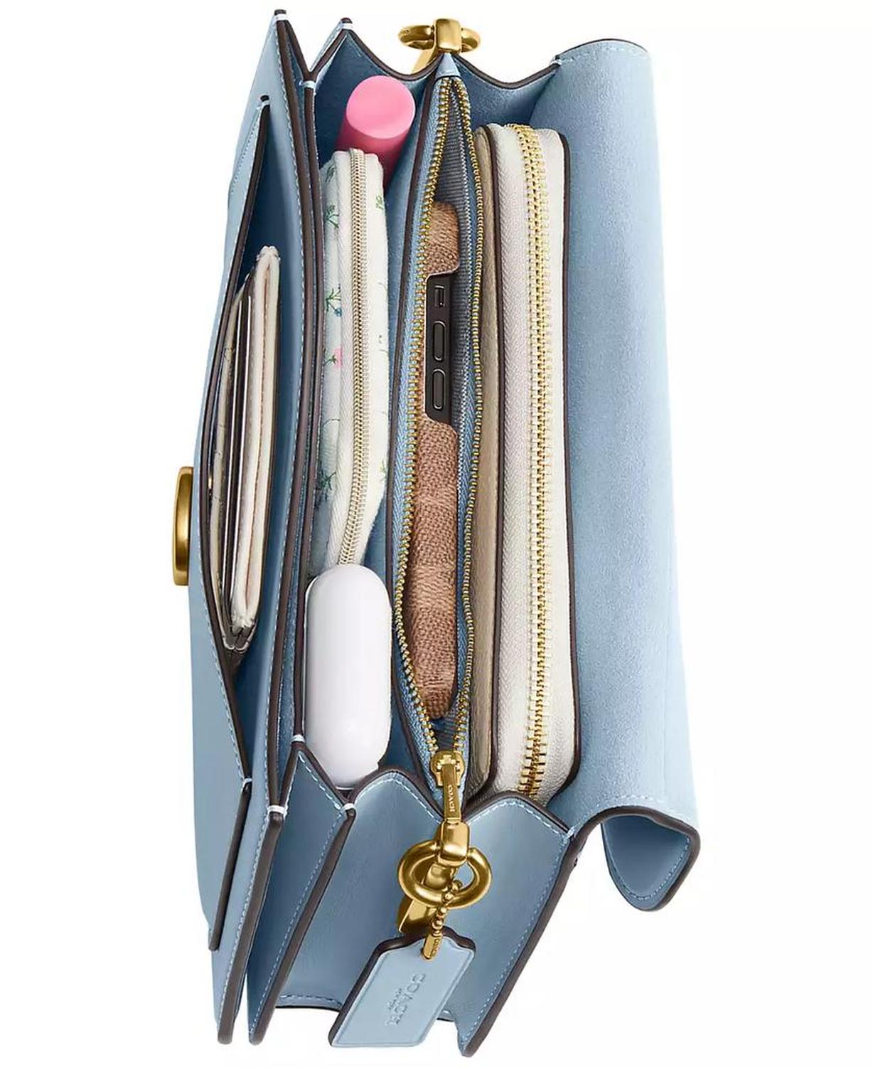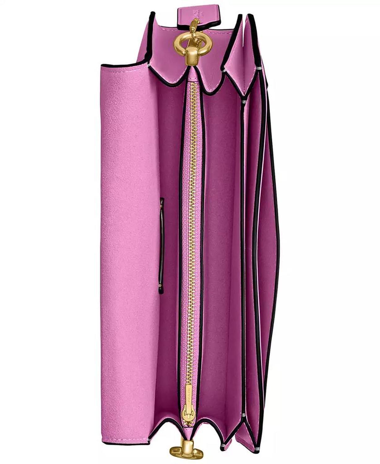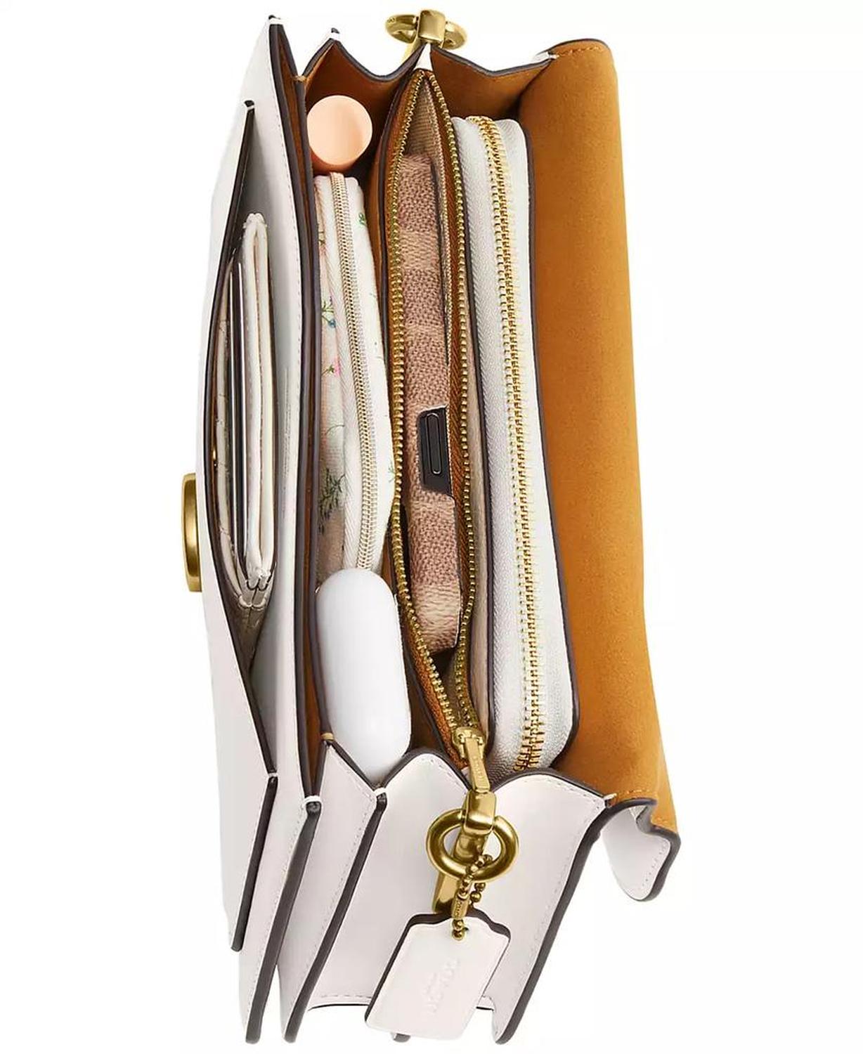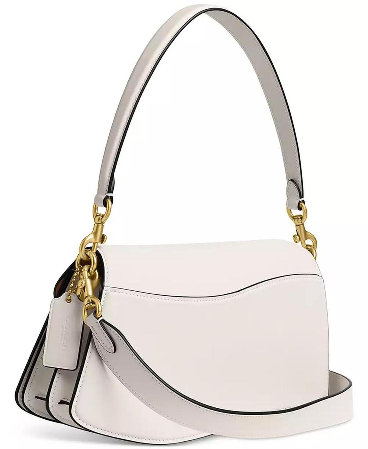 • Don't get it twisted; this leather handbag makes a one-of-a-kind statement with its warped silhouette accented with the iconic COACH logo at the front.