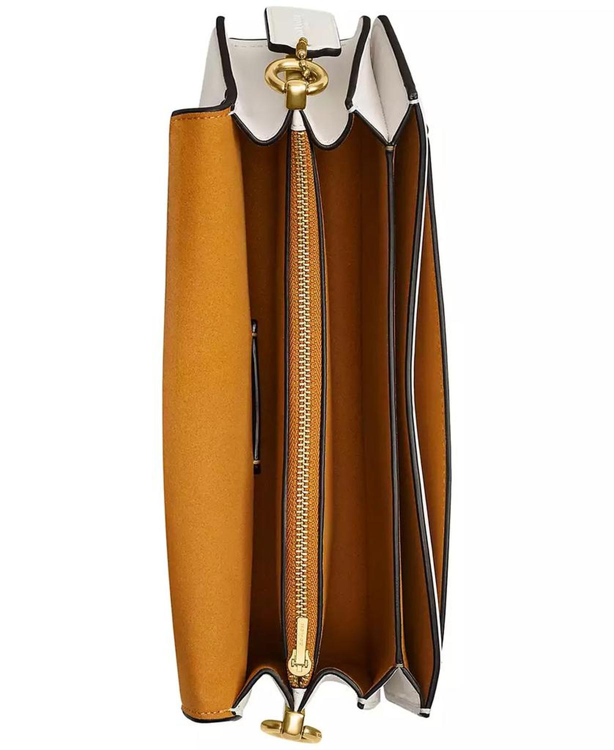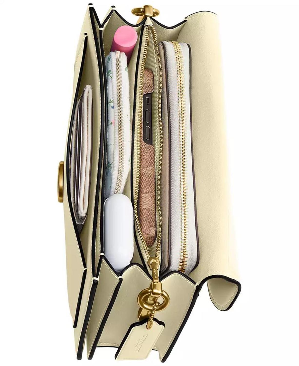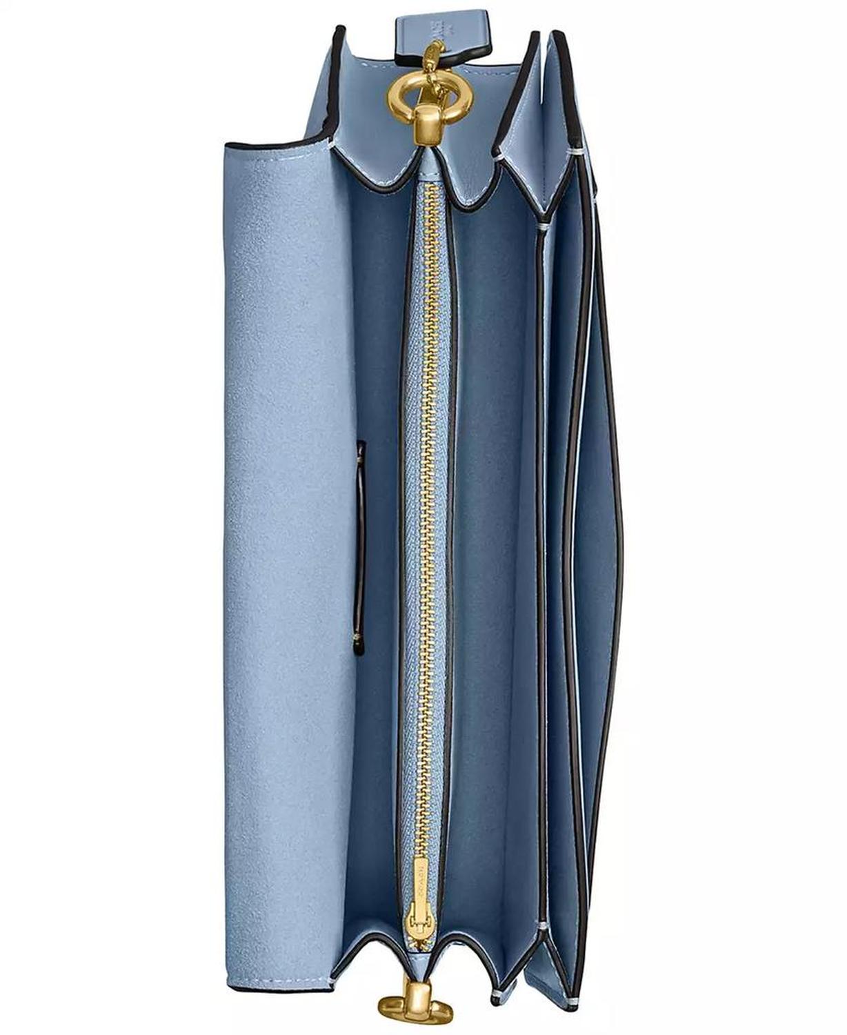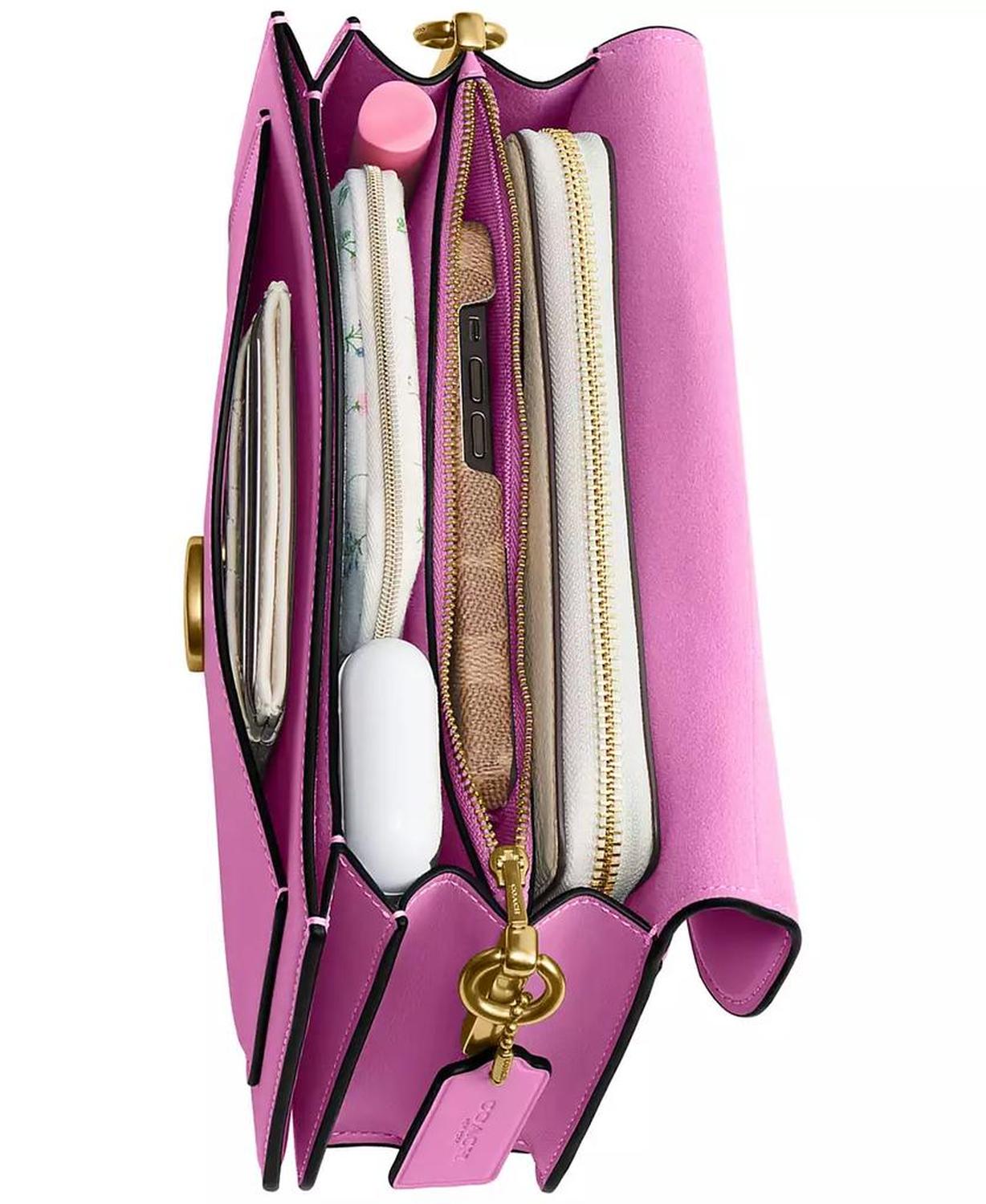 • Don't get it twisted; this leather handbag makes a one-of-a-kind statement with its warped silhouette accented with the iconic COACH logo at the front.