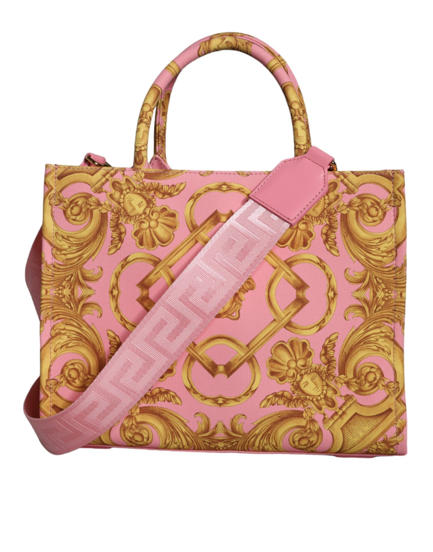 Versace Pink Yellow Baroque Fabric Leather Shopping Tote Bag