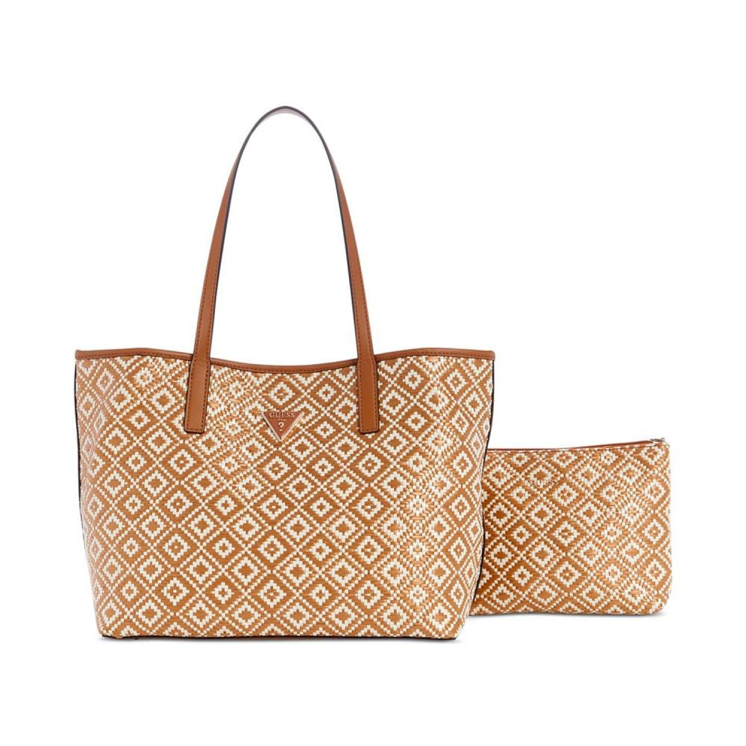 Featuring a lovely woven design, this tote by GUESS comes with a removable pouch and is finished with an iconic logo plaque at the front.