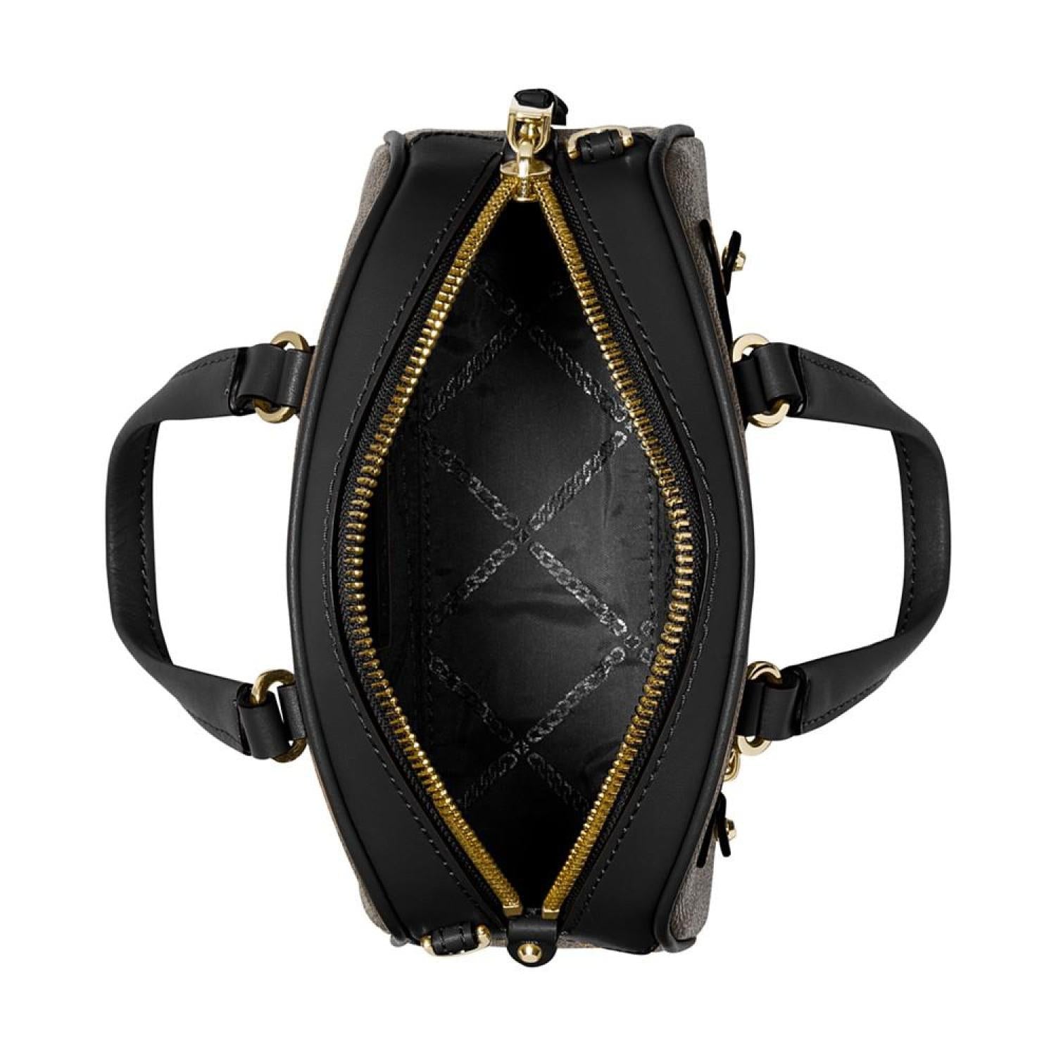 Strike out your style with the Williamsburg Mini Bowling Crossbody by MICHAEL Michael Kors. Mini sized bag; 7-1/2"W x 5-1/4"H x 2-3/4"D (width is measured across the bottom of handbag); 0.79 lbs. approx. weight Silhouette is based off 5'9" model 3"L handle; removable chain strap Zippered closure Gold-tone hardware & exterior front zip pocket 3 interior card slots & zip pocket Polyvinylchloride, polyester, polyurethane; lining: polyester Spot clean Imported