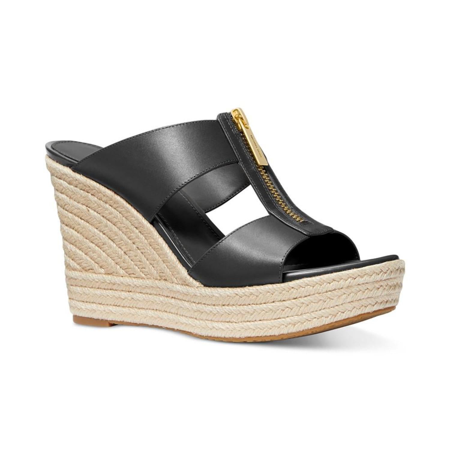 Exposed gold-tone zips add bold attitude to sky-high platform heels in the stylish Bradley espadrilles from MICHAEL Michael Kors.