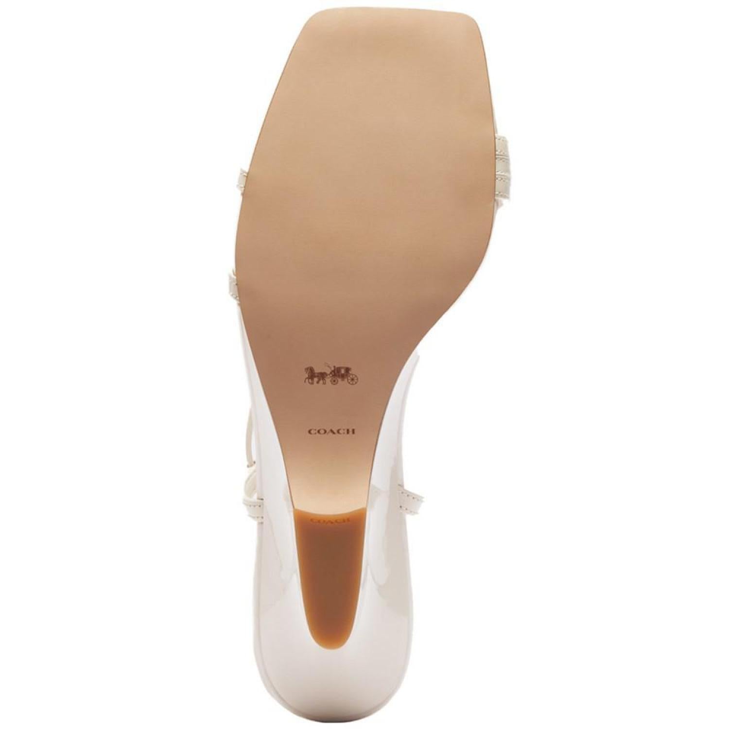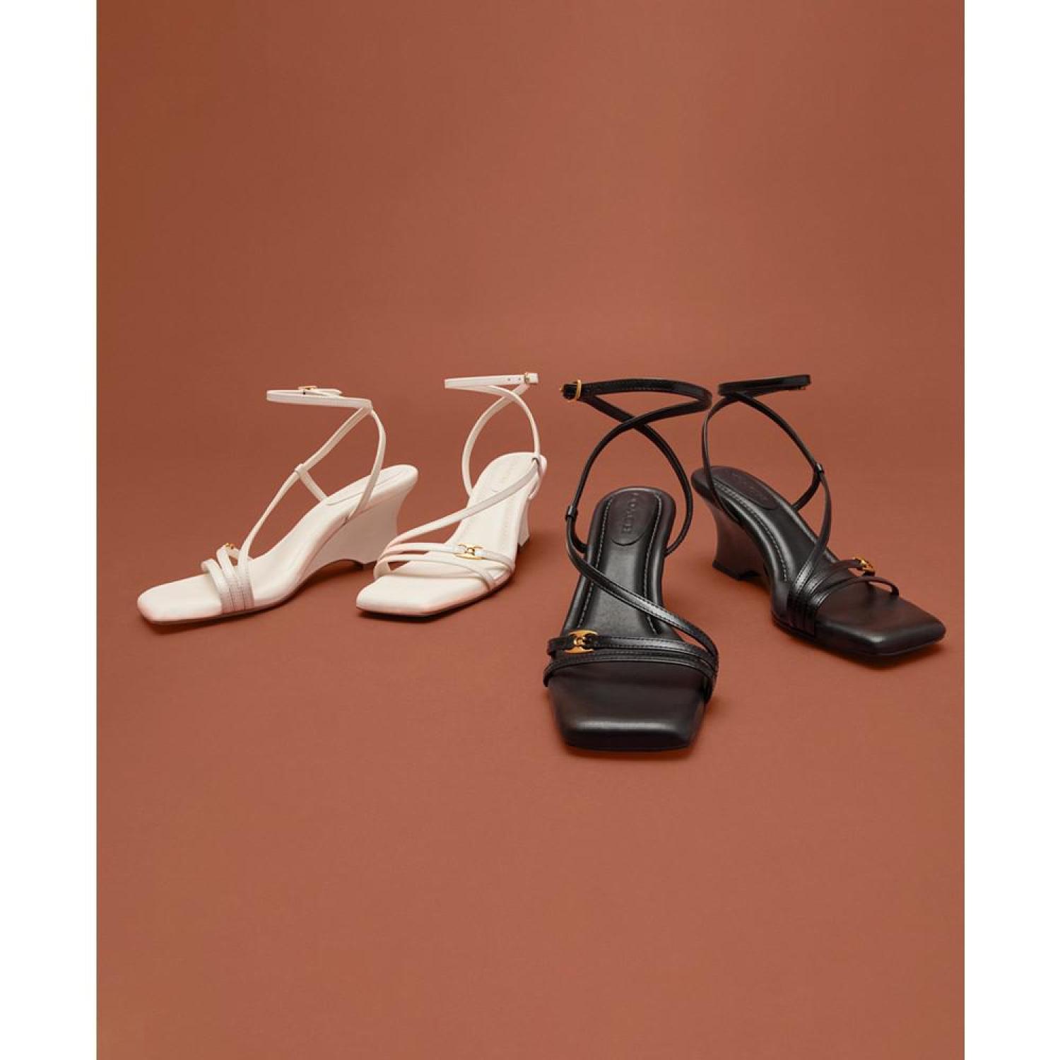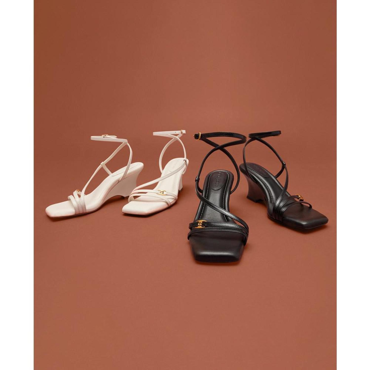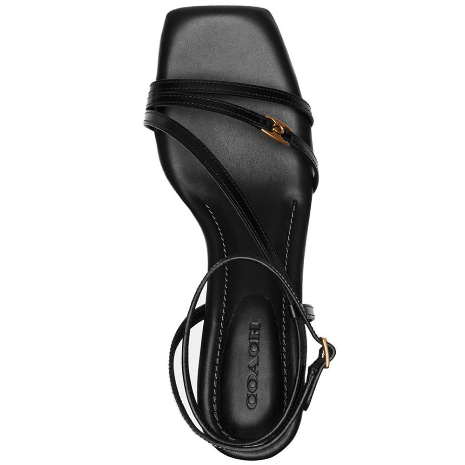 • Slender straps create a barely-there silhouette over shapely wedge heels in the gorgeous Cait sandals by COACH.