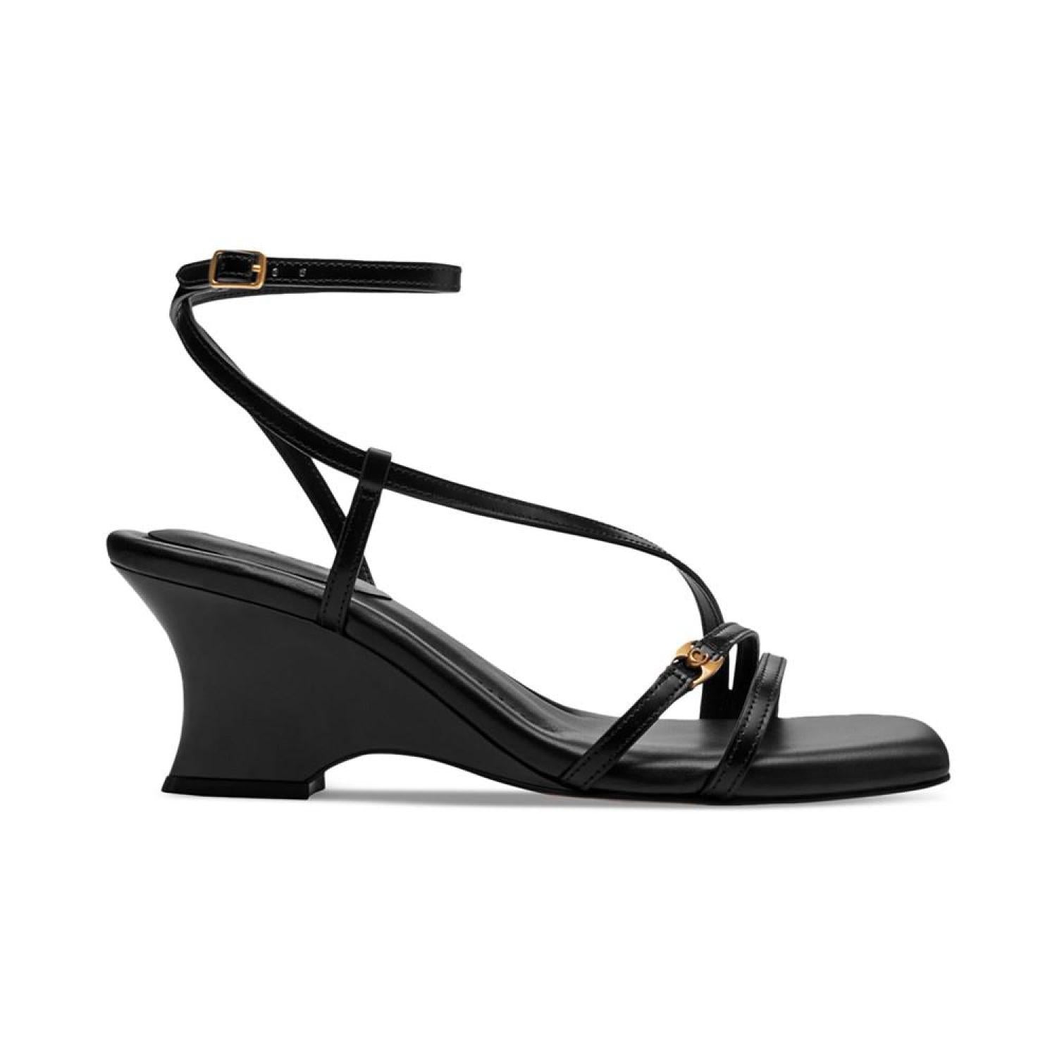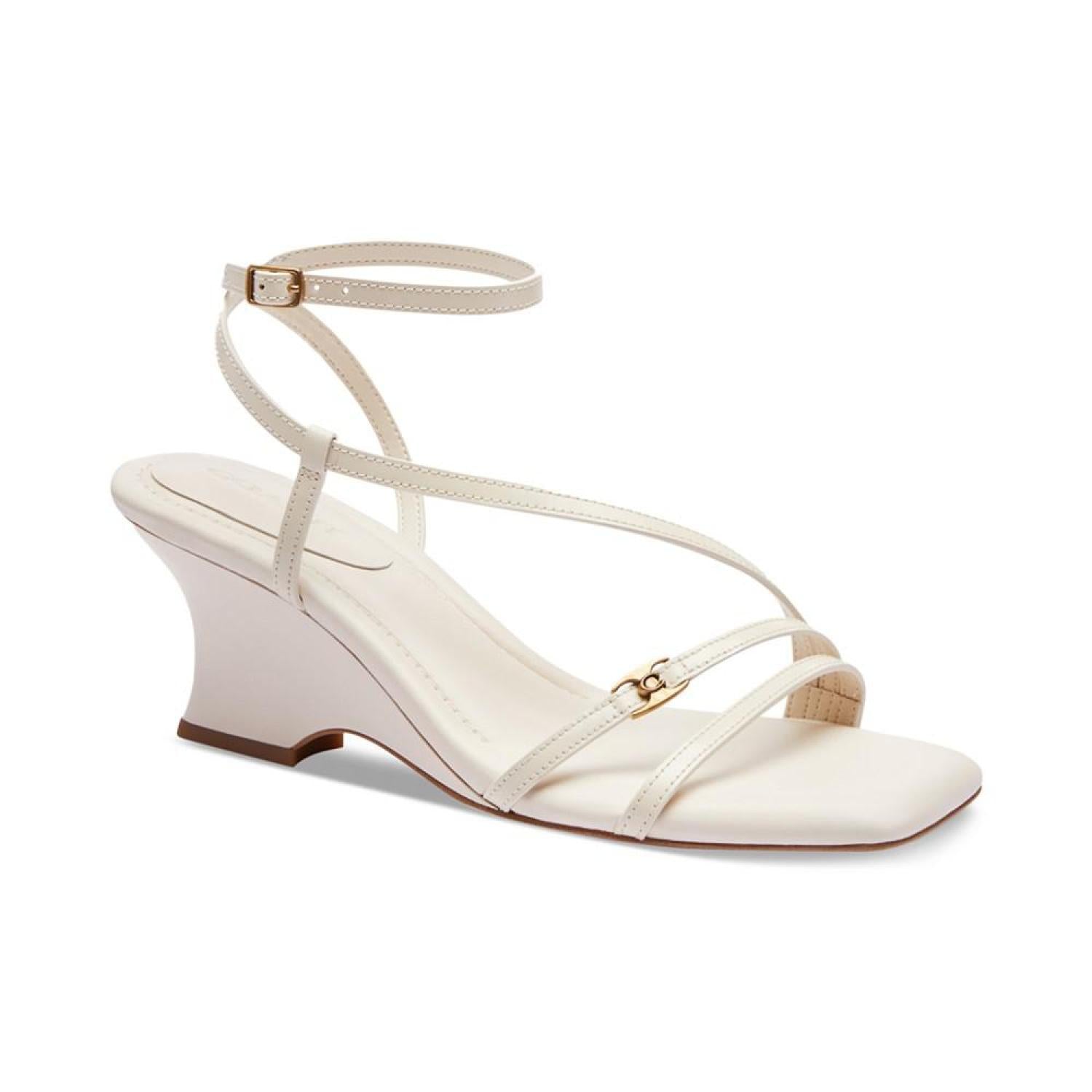 Slender straps create a barely-there silhouette over shapely wedge heels in the gorgeous Cait sandals by COACH.