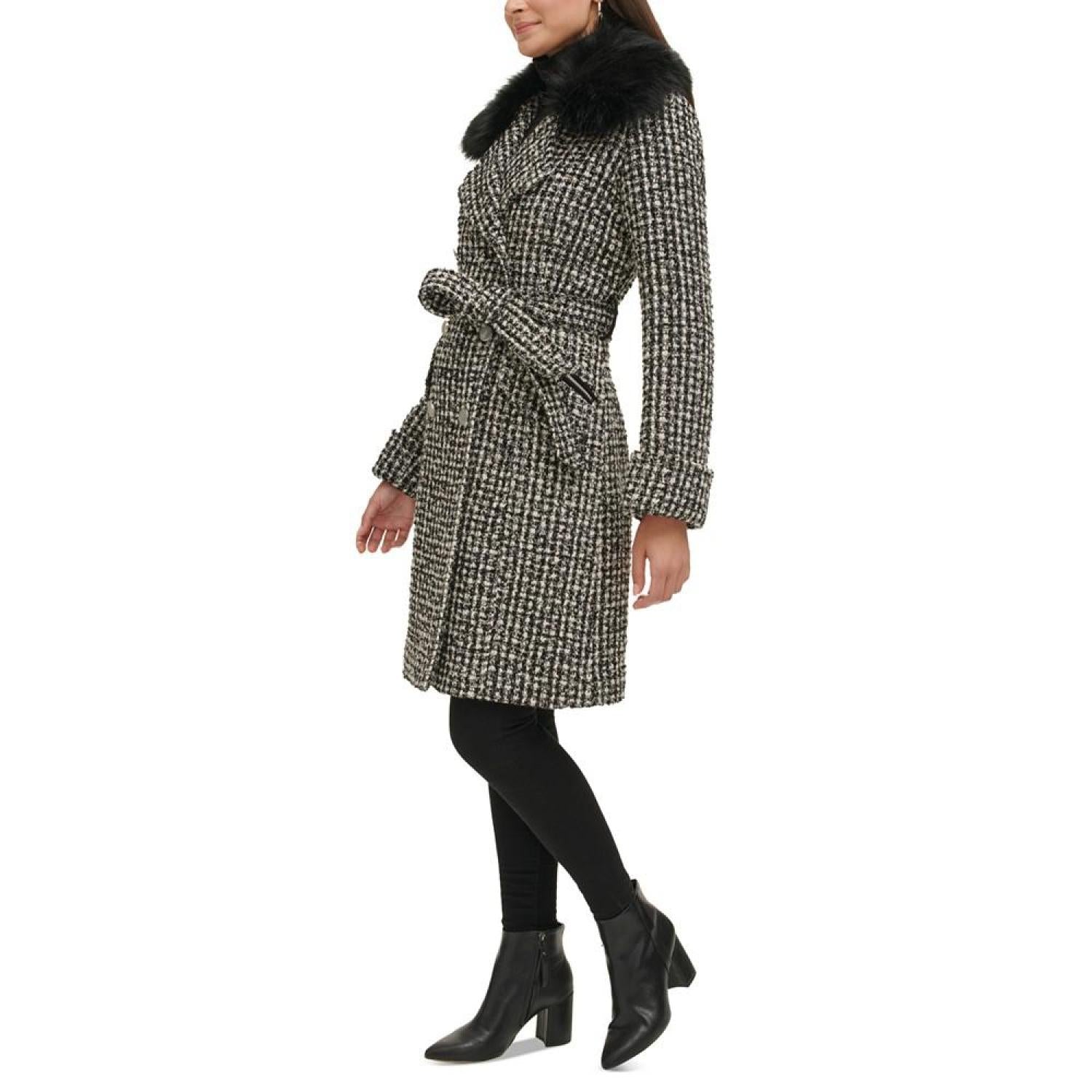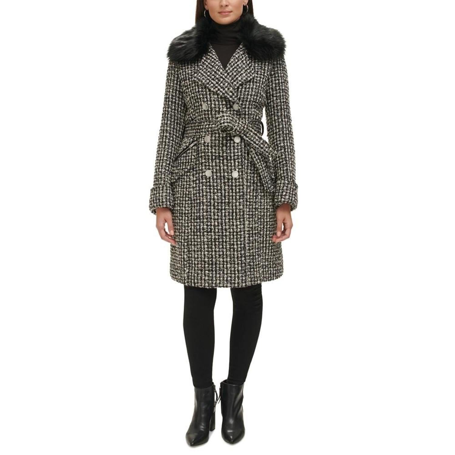 Women's Double-Breasted Faux-Fur-Collar Tweed Coat