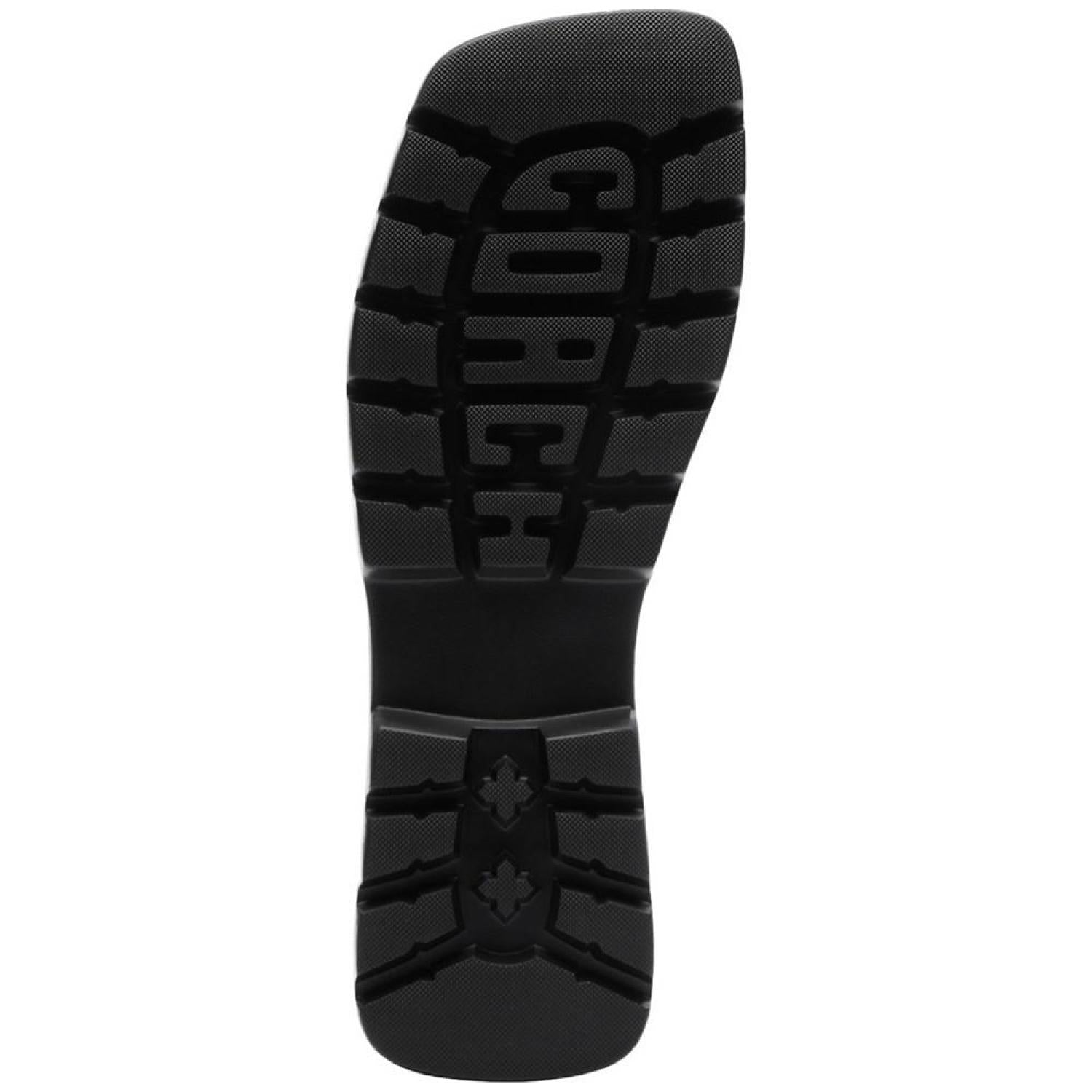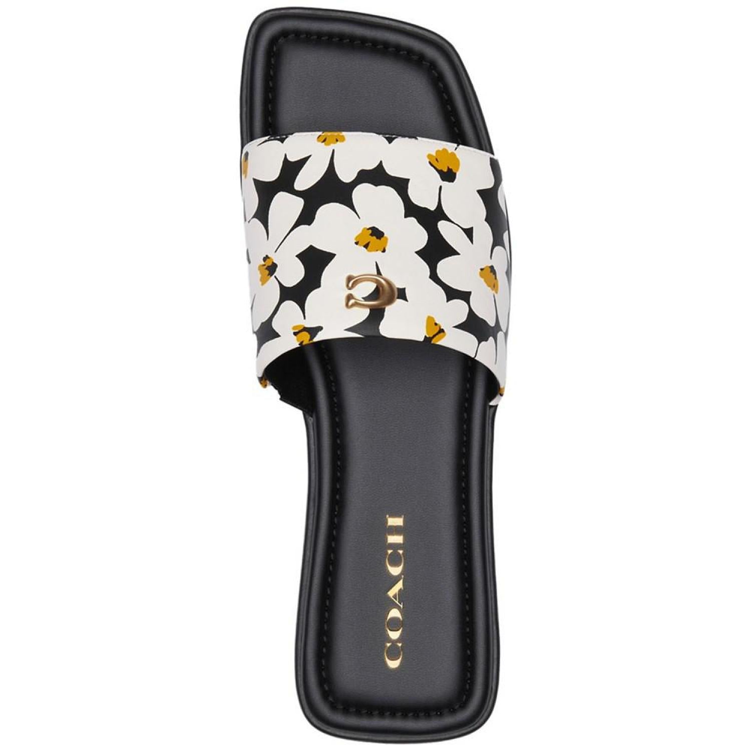• Square toes and lug soles update easy slip-on style in the COACH Florence slides.