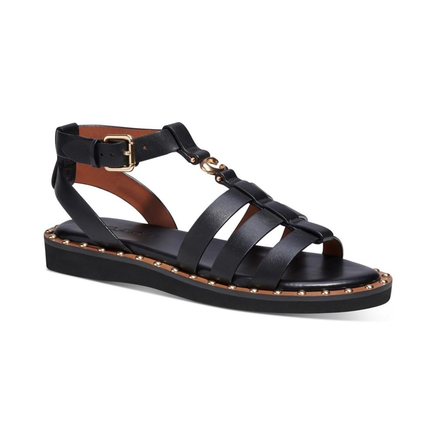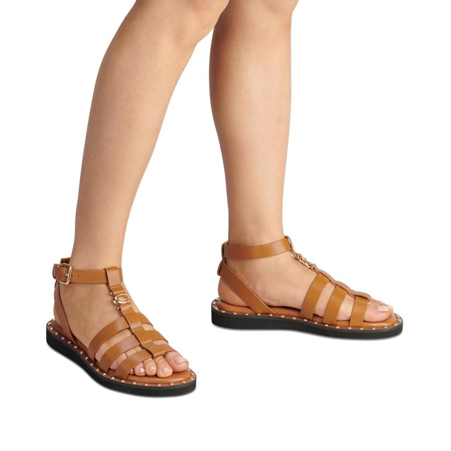 Studded welts and signature hardware add metallic flash to a versatile look in the Giselle gladiator sandals from COACH. 1/2" heel; 1/4" platform Leather Rubber sole Imported