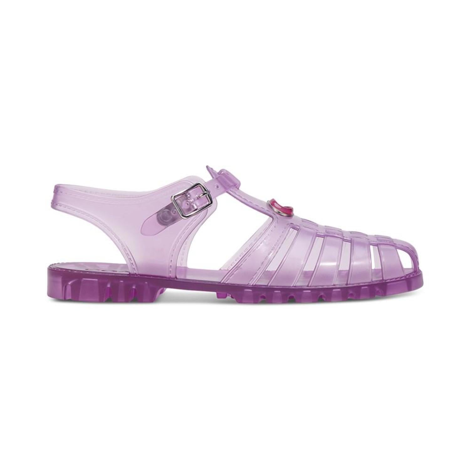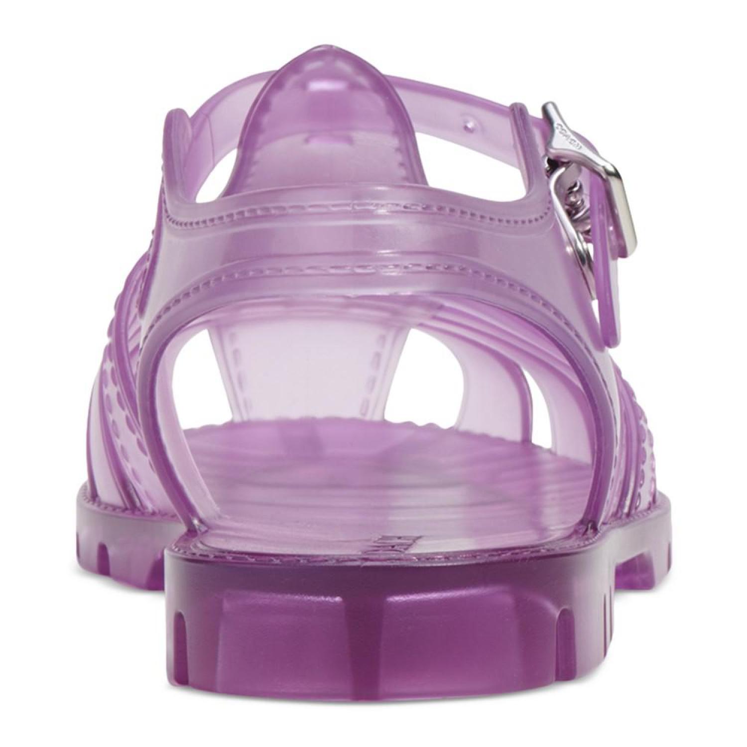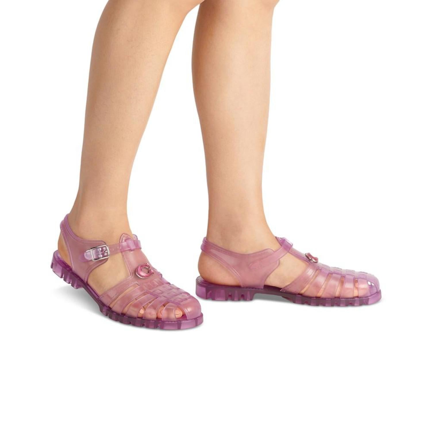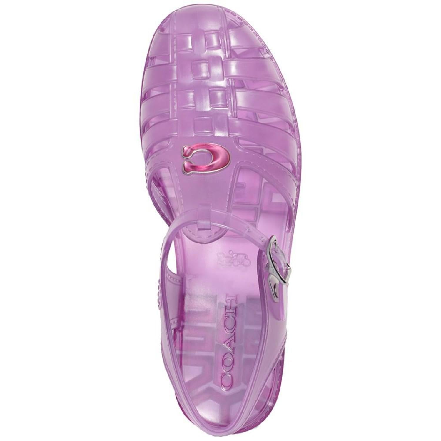 • Signature hardware adds flash to a classic jelly look in the fisherman-inspired sandals from COACH.