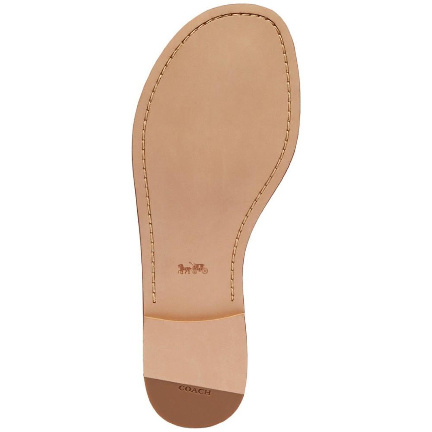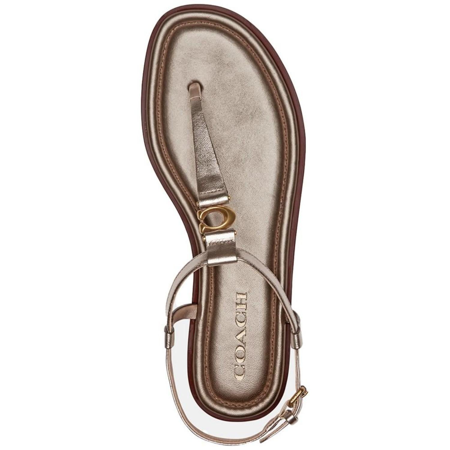 • Signature hardware brings gold-tone flash to an understated strappy look in the breezy Jessica sandals by COACH.