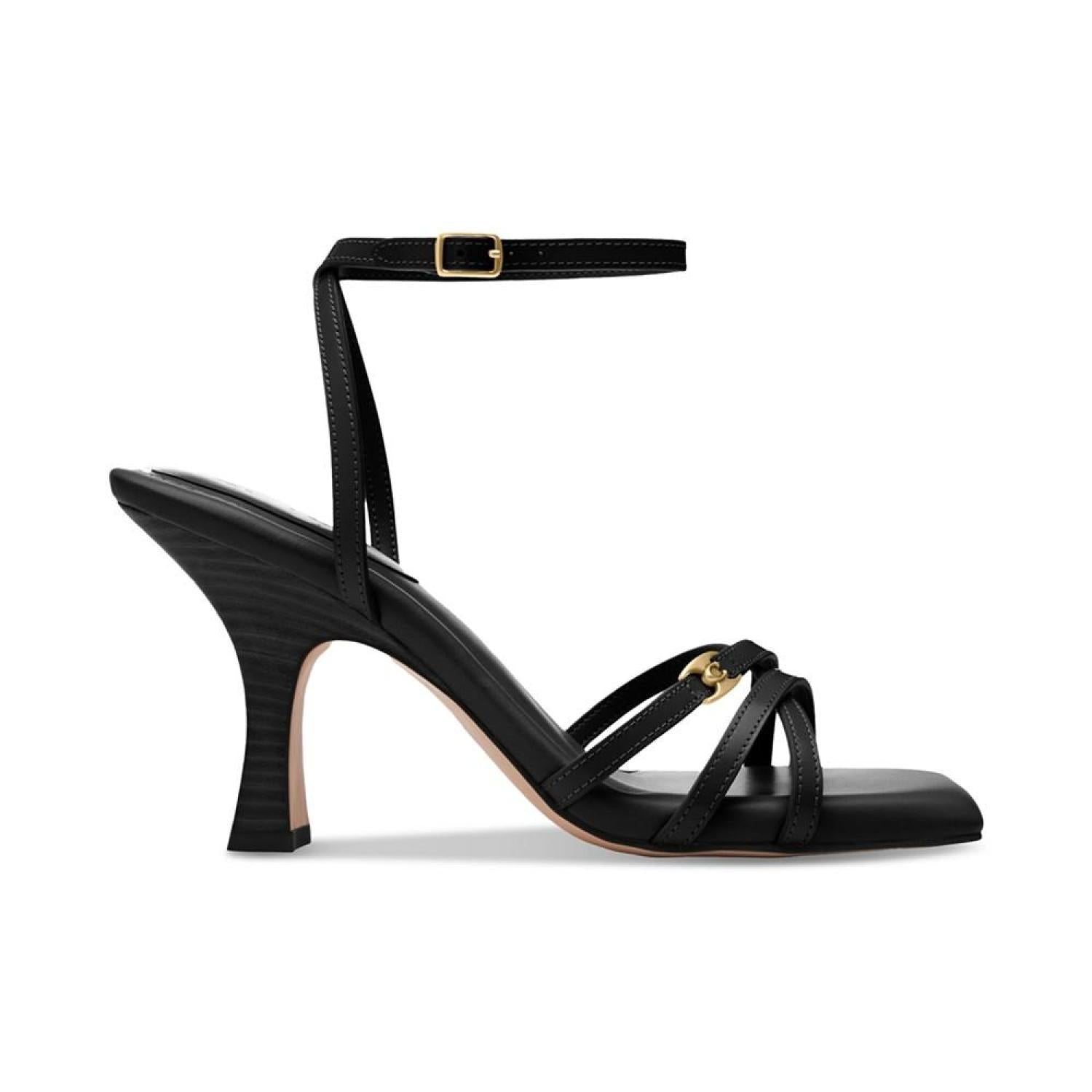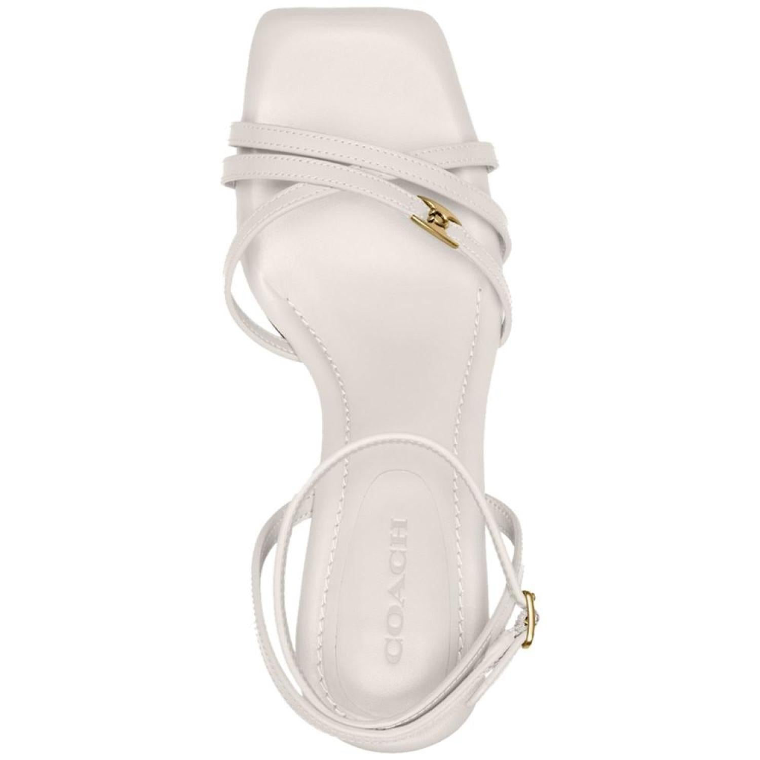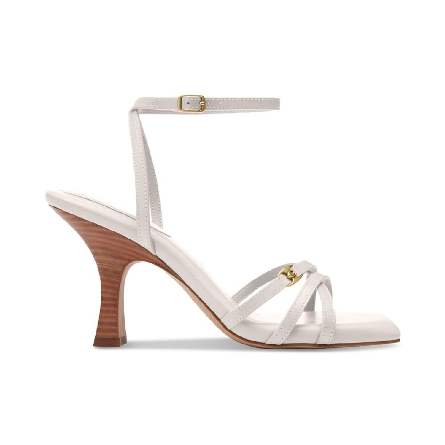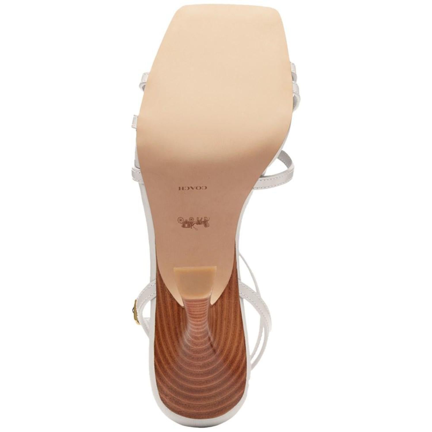 • The Kelsey Barely There sandals from COACH pair tiny buckles with slender straps over shapely heels for a gorgeous silhouette.