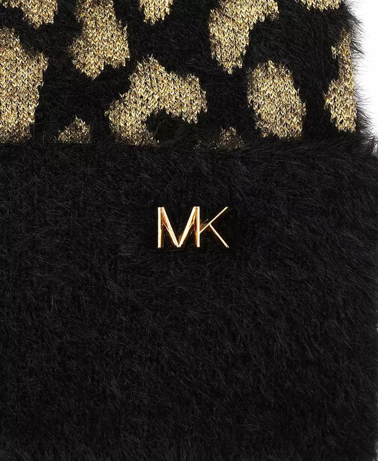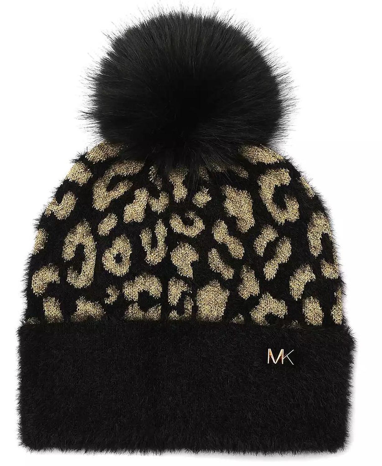 Add a fierce touch to your cold-weather wardrobe with this MICHAEL Michael Kors metallic leopard-print hat. Crafted from soft, lightweight knit with a hint of shimmer, it features a plush faux-fur pom-pom and a ribbed cuff for a snug, stylish fit.