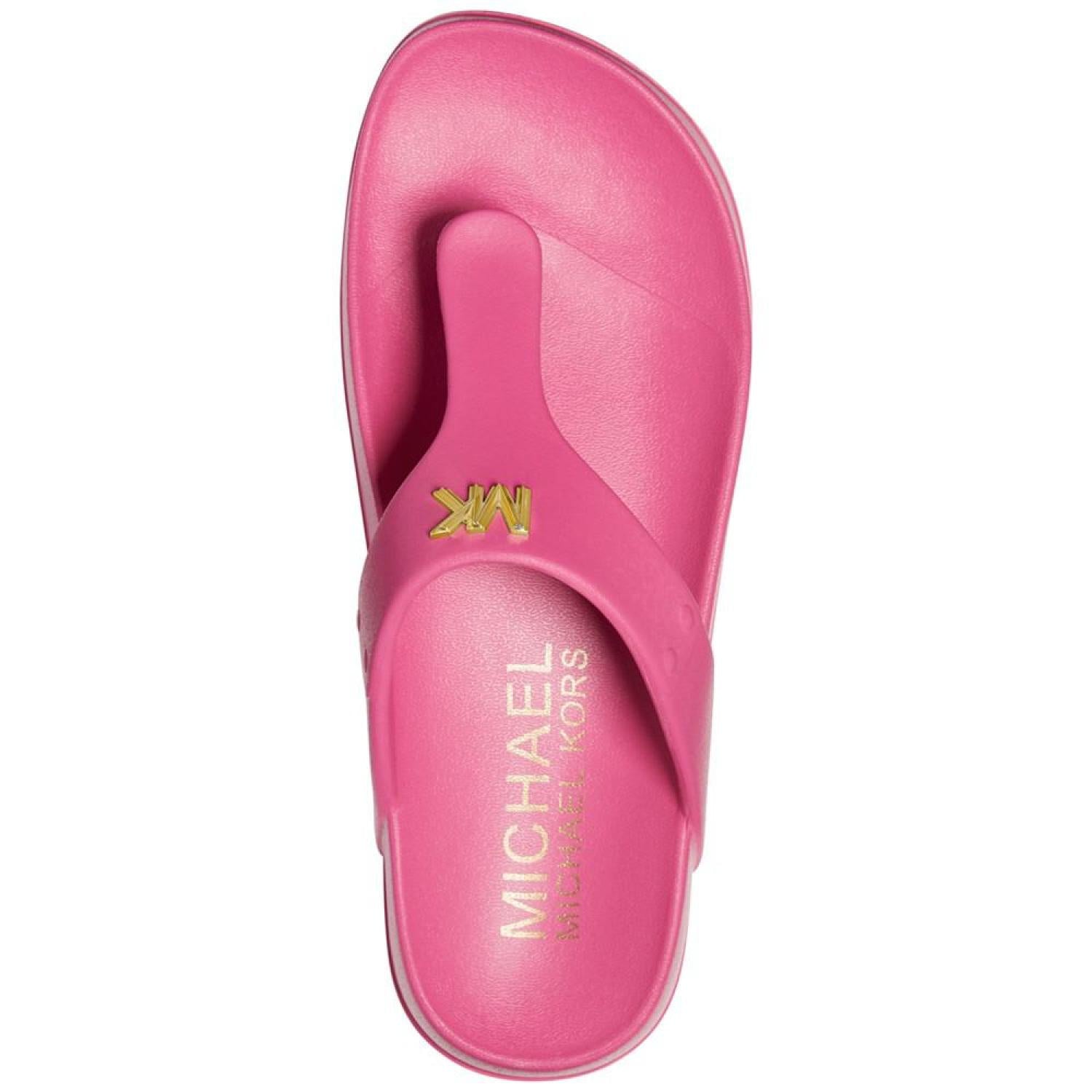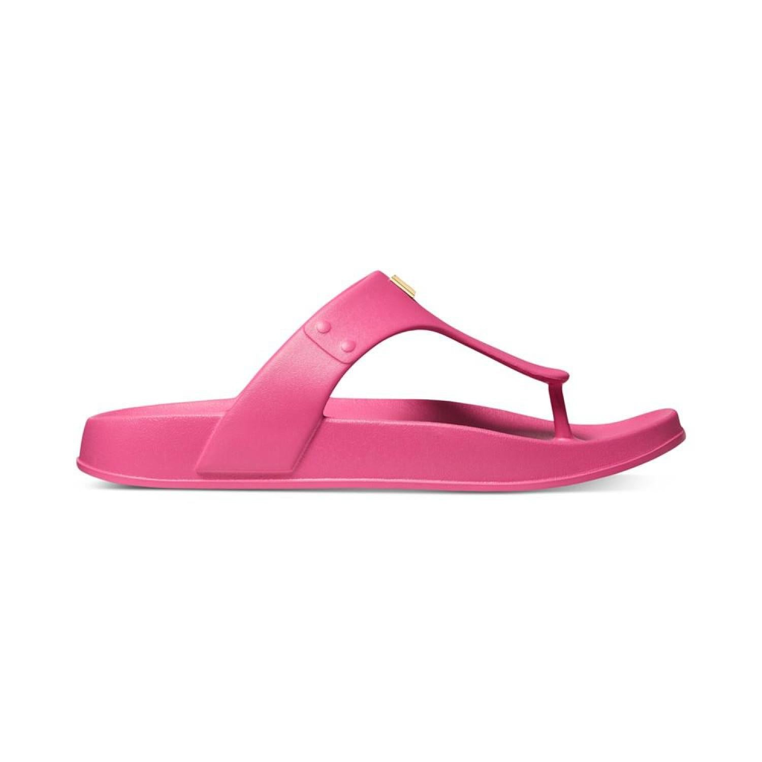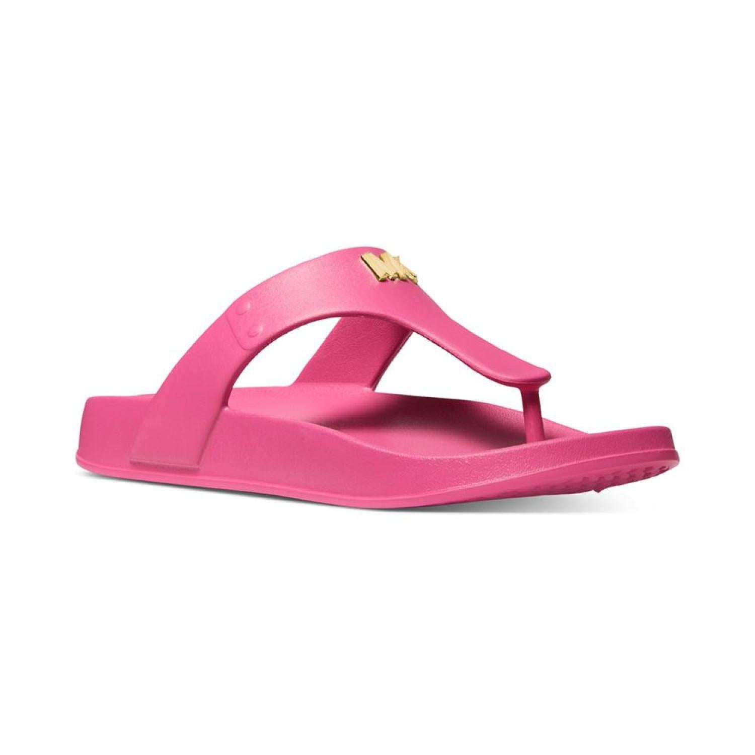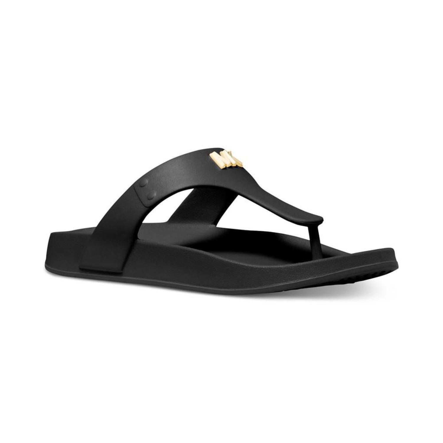 • The Linsey sandals by MICHAEL Michael Kors are a must-have warm-weather look in wide straps and thong toe posts with signature gold-tone flash.