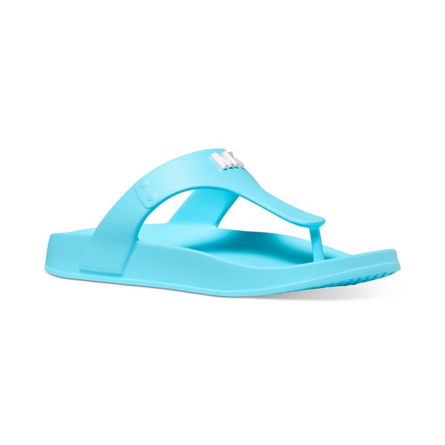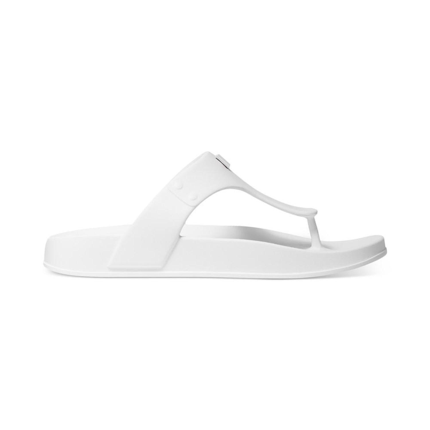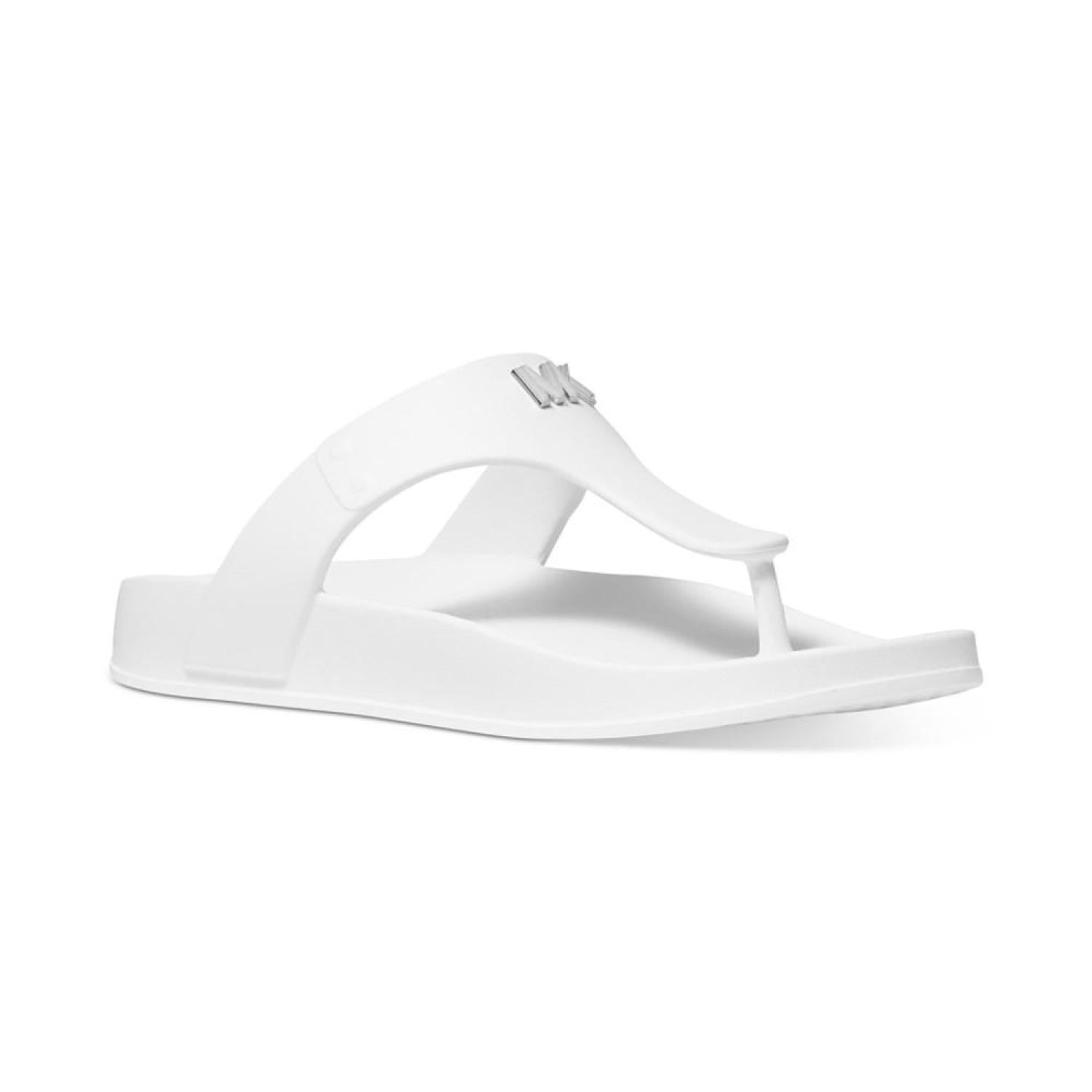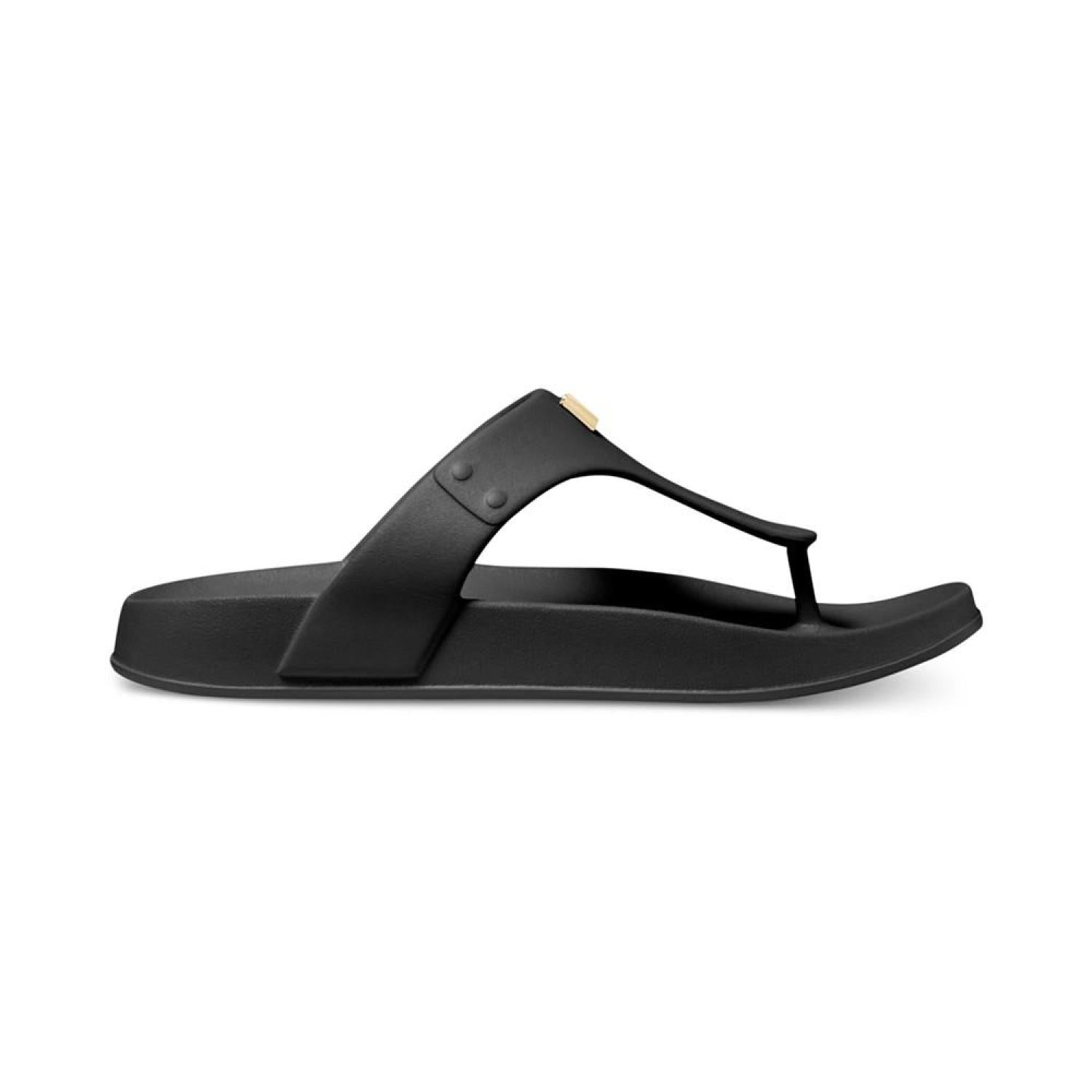 • The Linsey sandals by MICHAEL Michael Kors are a must-have warm-weather look in wide straps and thong toe posts with signature gold-tone flash.