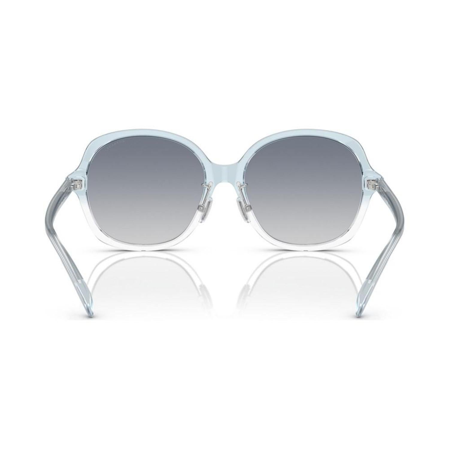 Easy-to-wear glam shape with squared off corners, adorned with a subtle metal puffy COACH logo. Universal fitting for a diversity of face shapes and sizes. Alluring transparent hues and one gradient acetates lens option.
