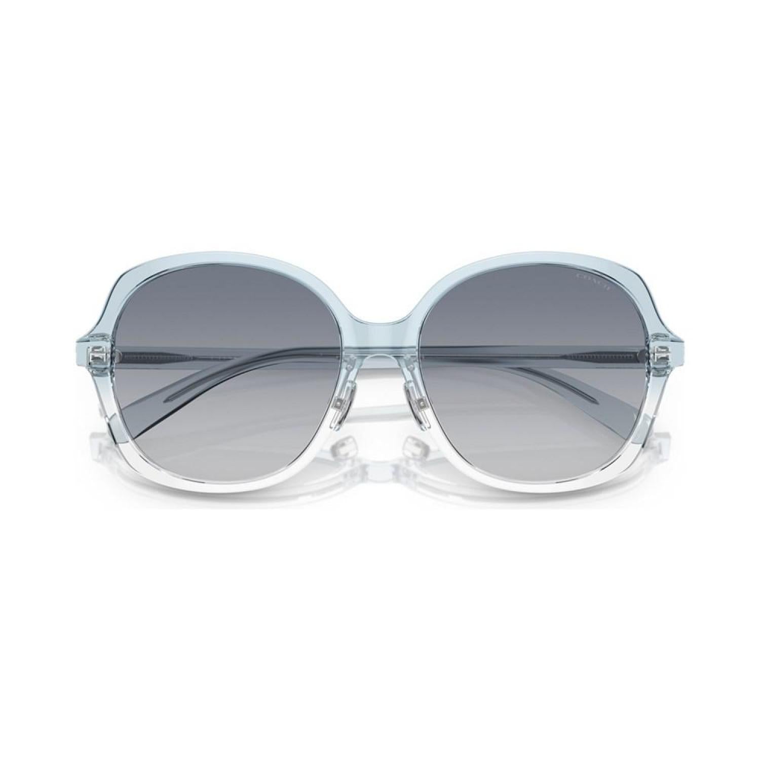 • Easy-to-wear glam shape with squared off corners, adorned with a subtle metal puffy COACH logo. Universal fitting for a diversity of face shapes and sizes. Alluring transparent hues and one gradient acetates lens option.
