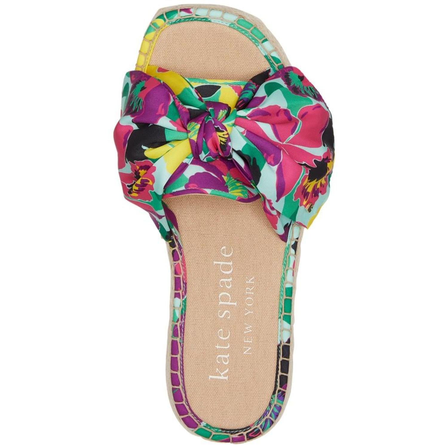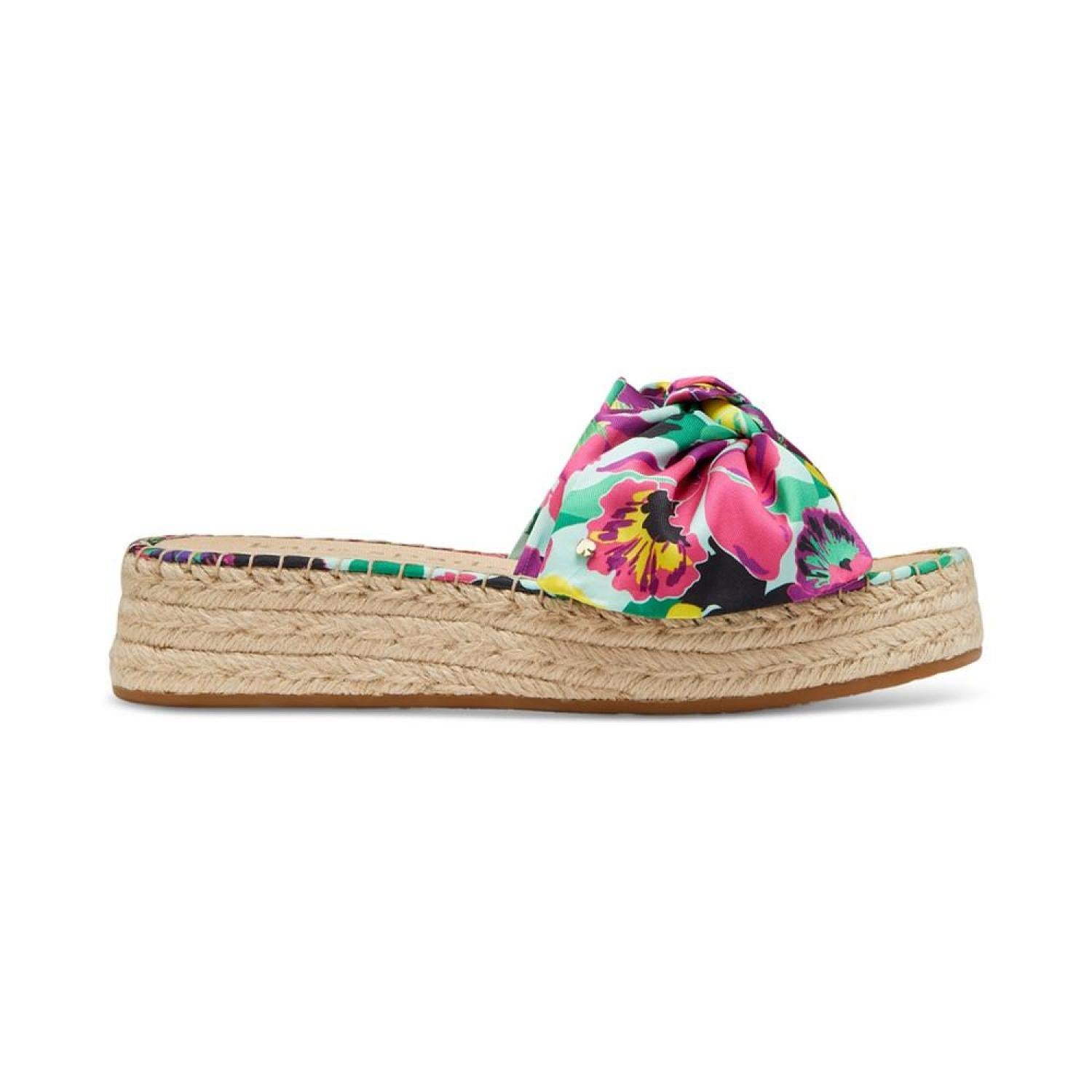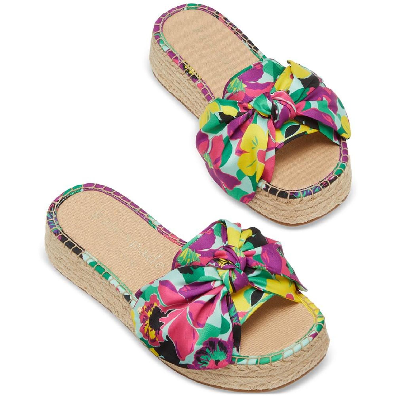 • Add a tropical lift to warm-weather style in colorful knots and espadrille platforms with the Lucie sandals from Kate Spade New York.