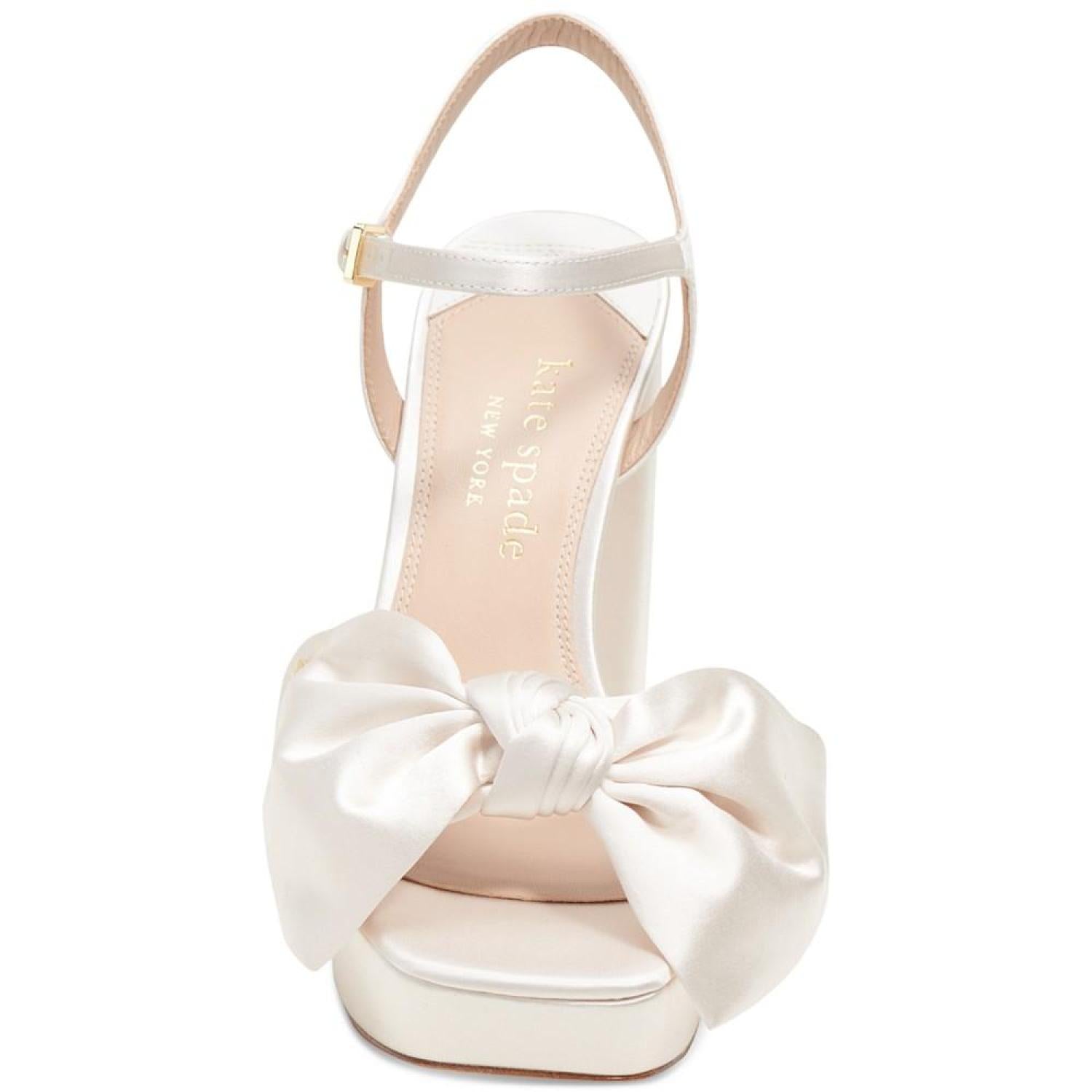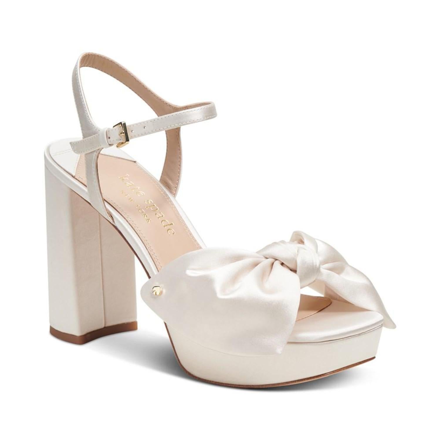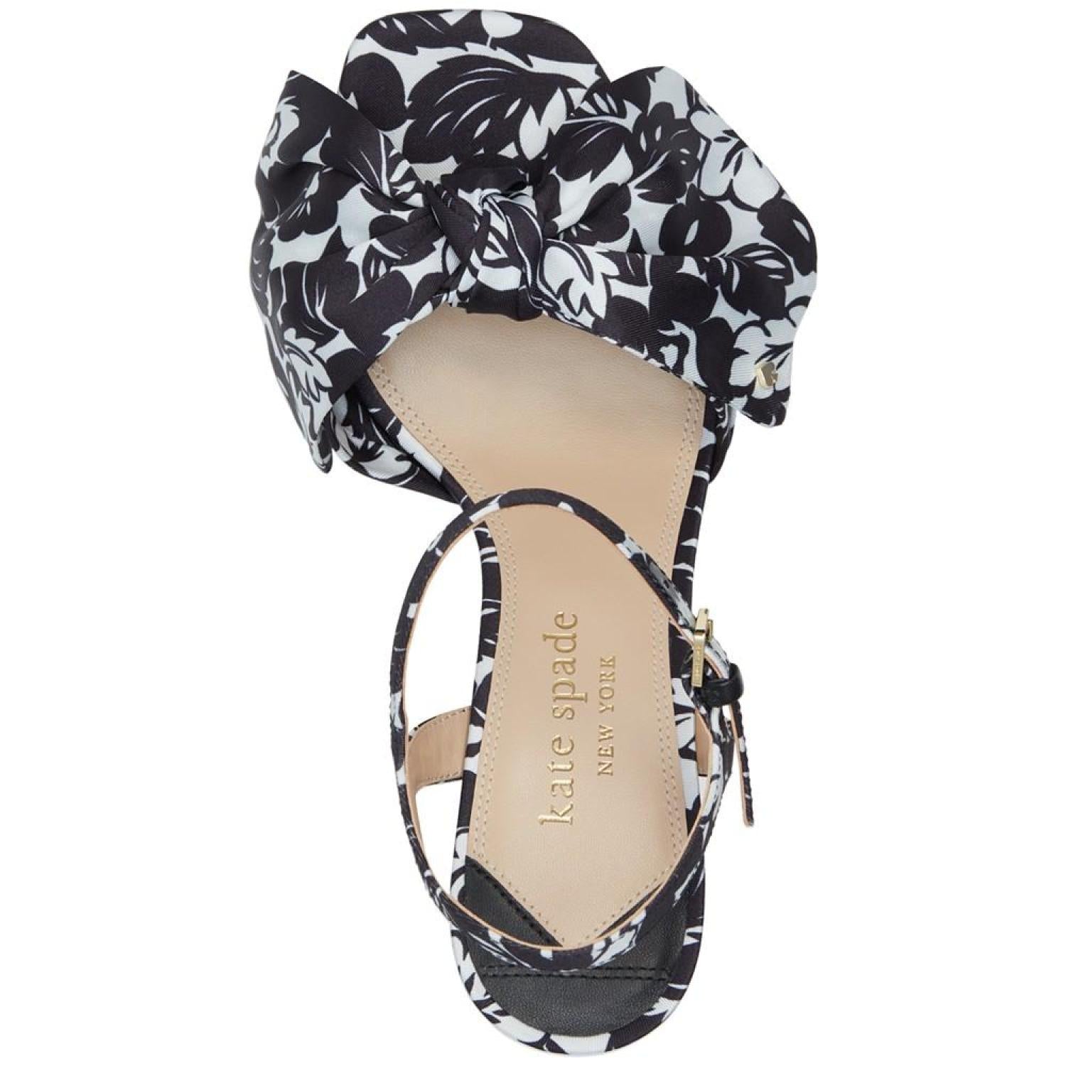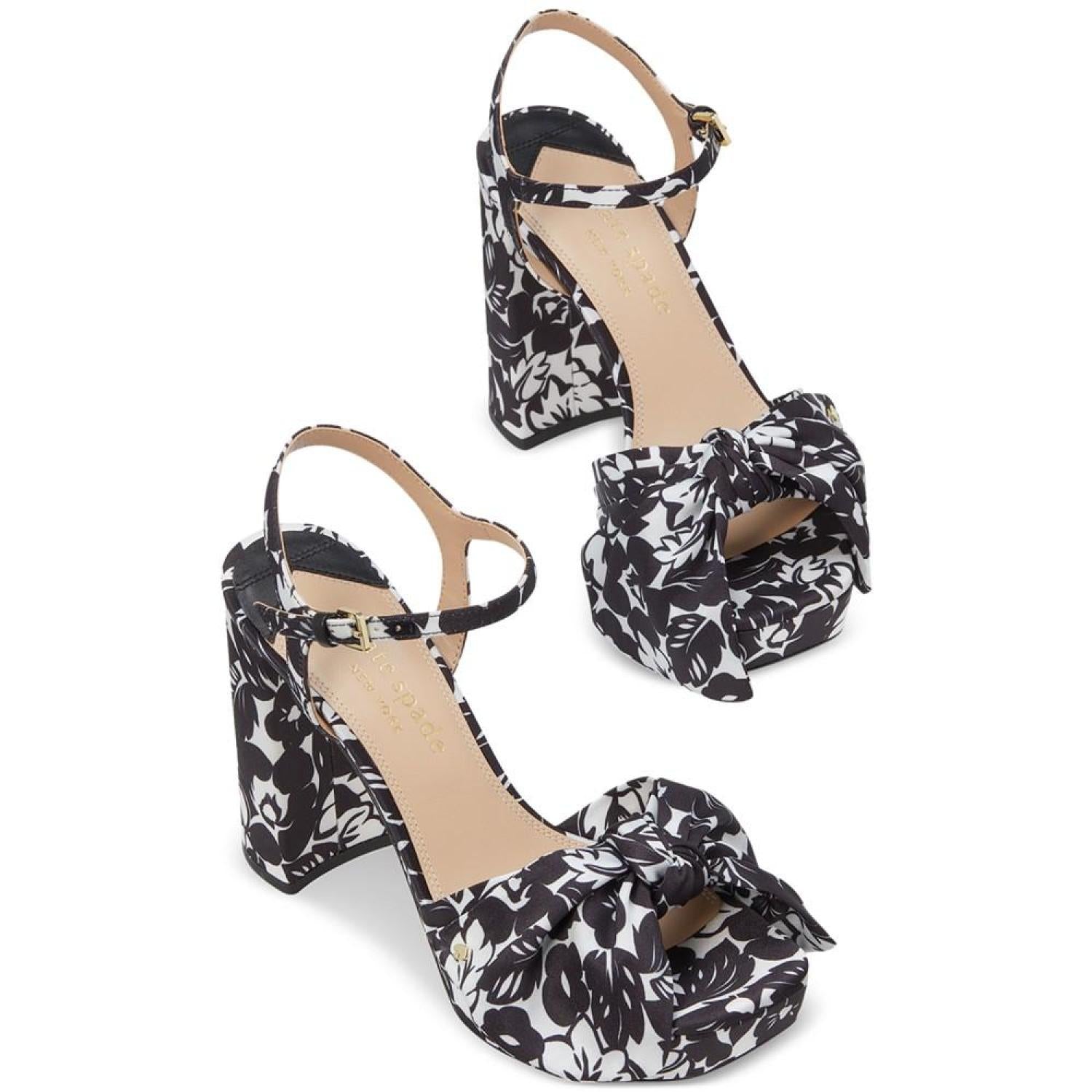 Oversized bows top retro-inspired platforms for a fun addition to a new party dress in the Kate Spade New York Lucie sandals. 4" heel Round toe Buckled ankle strap Bow detail at strap Fabric upper; fabric, leather lining; leather sole Imported