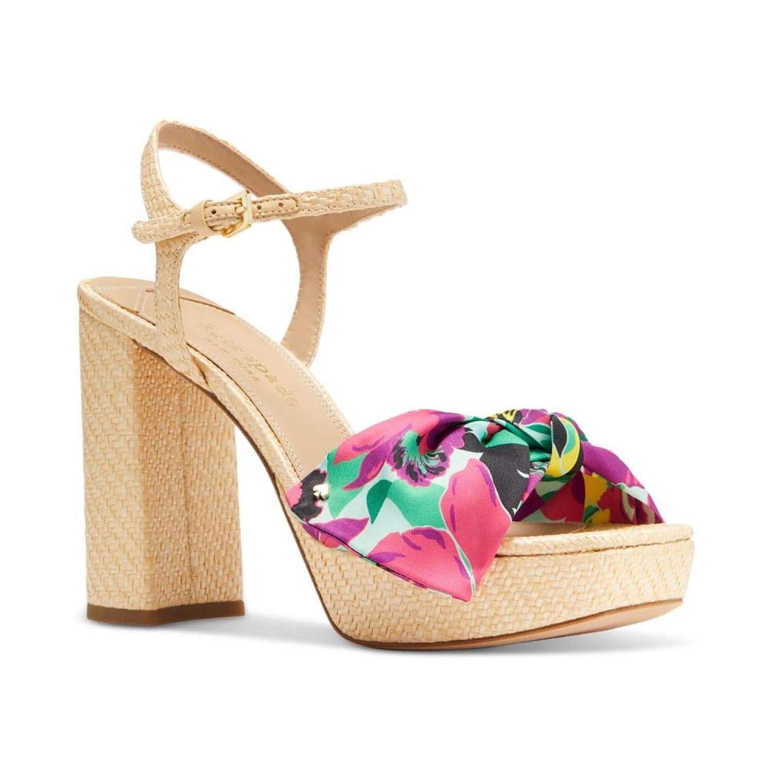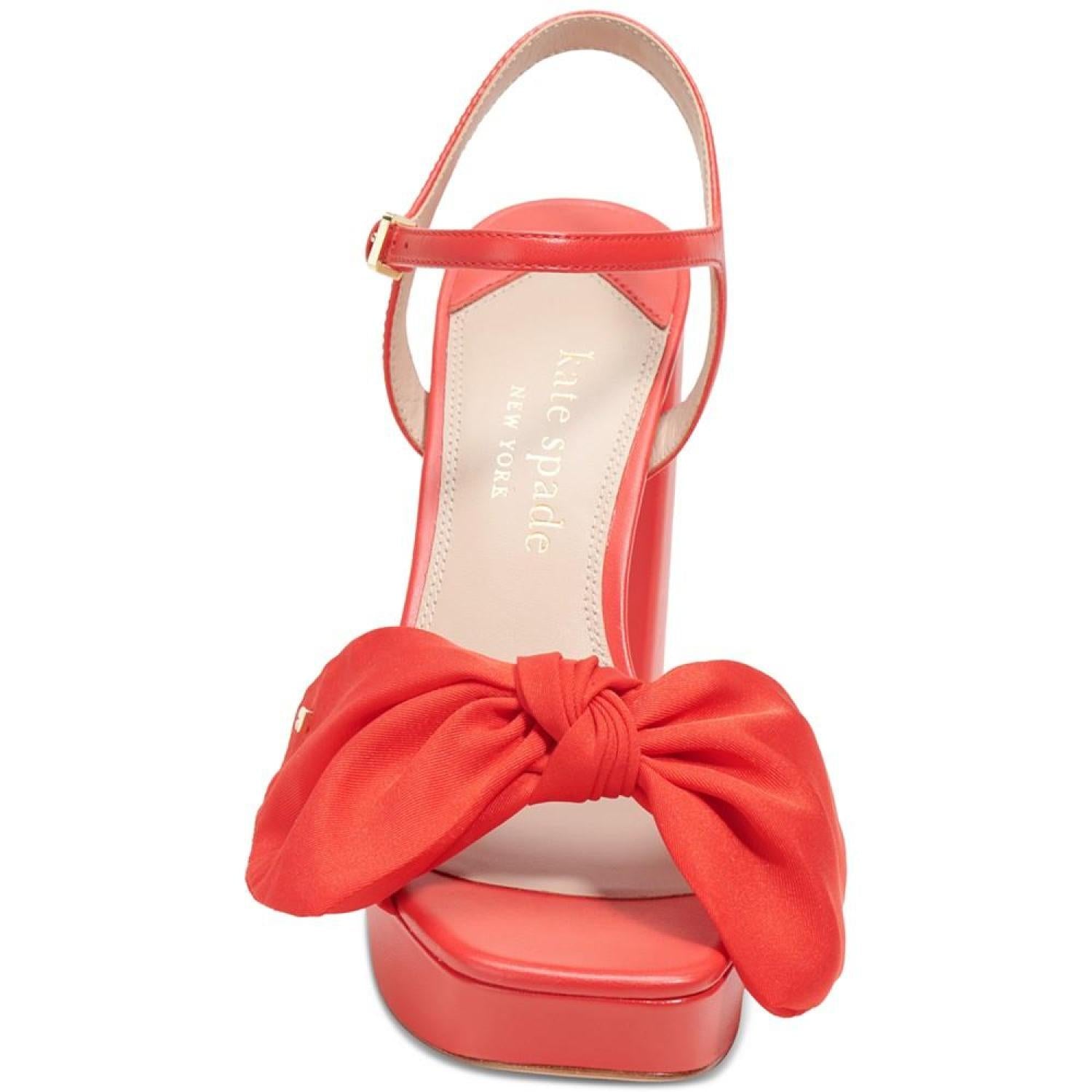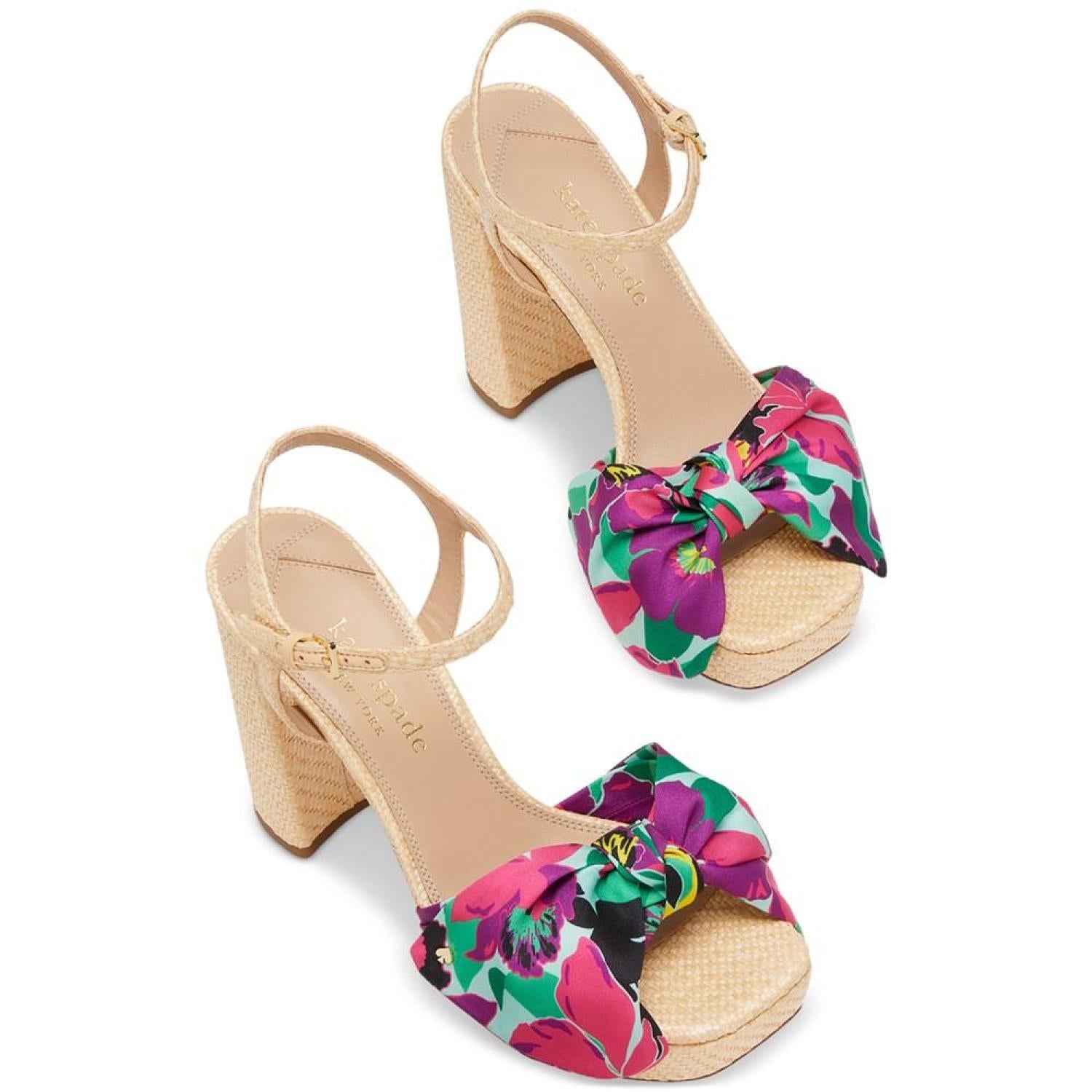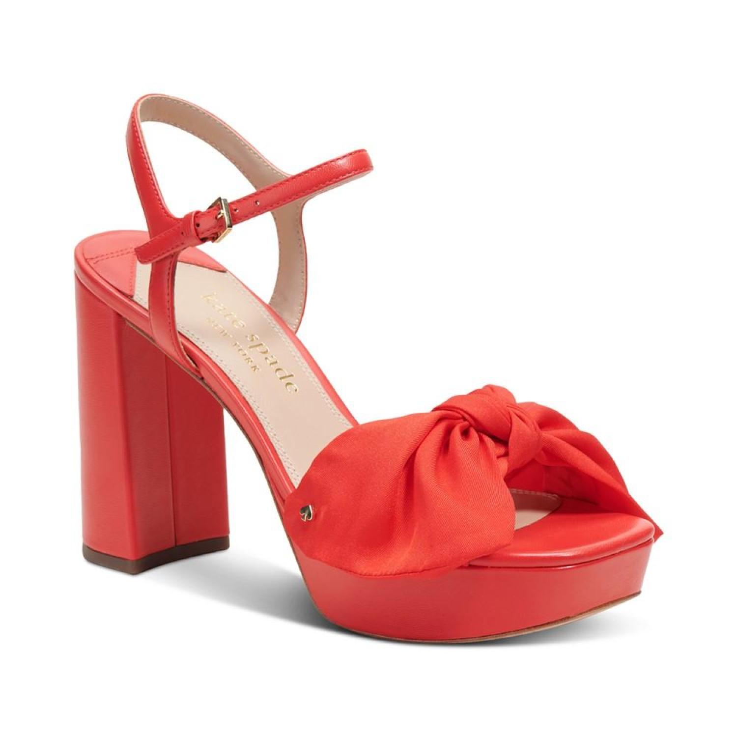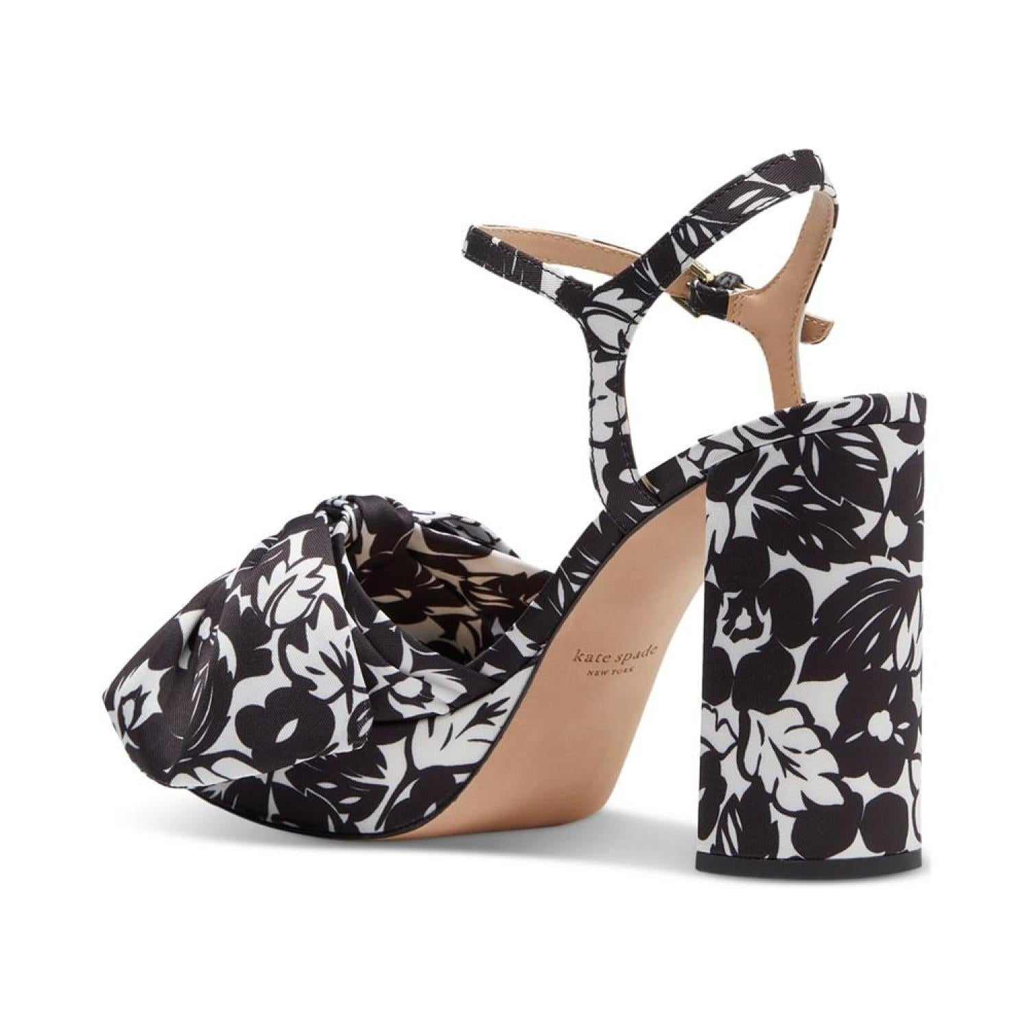 Oversized bows top retro-inspired platforms for a fun addition to a new party dress in the Kate Spade New York Lucie sandals. 4" heel Round toe Buckled ankle strap Bow detail at strap Fabric upper; fabric, leather lining; leather sole Imported