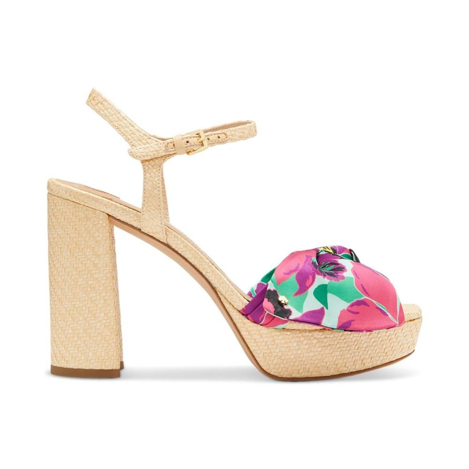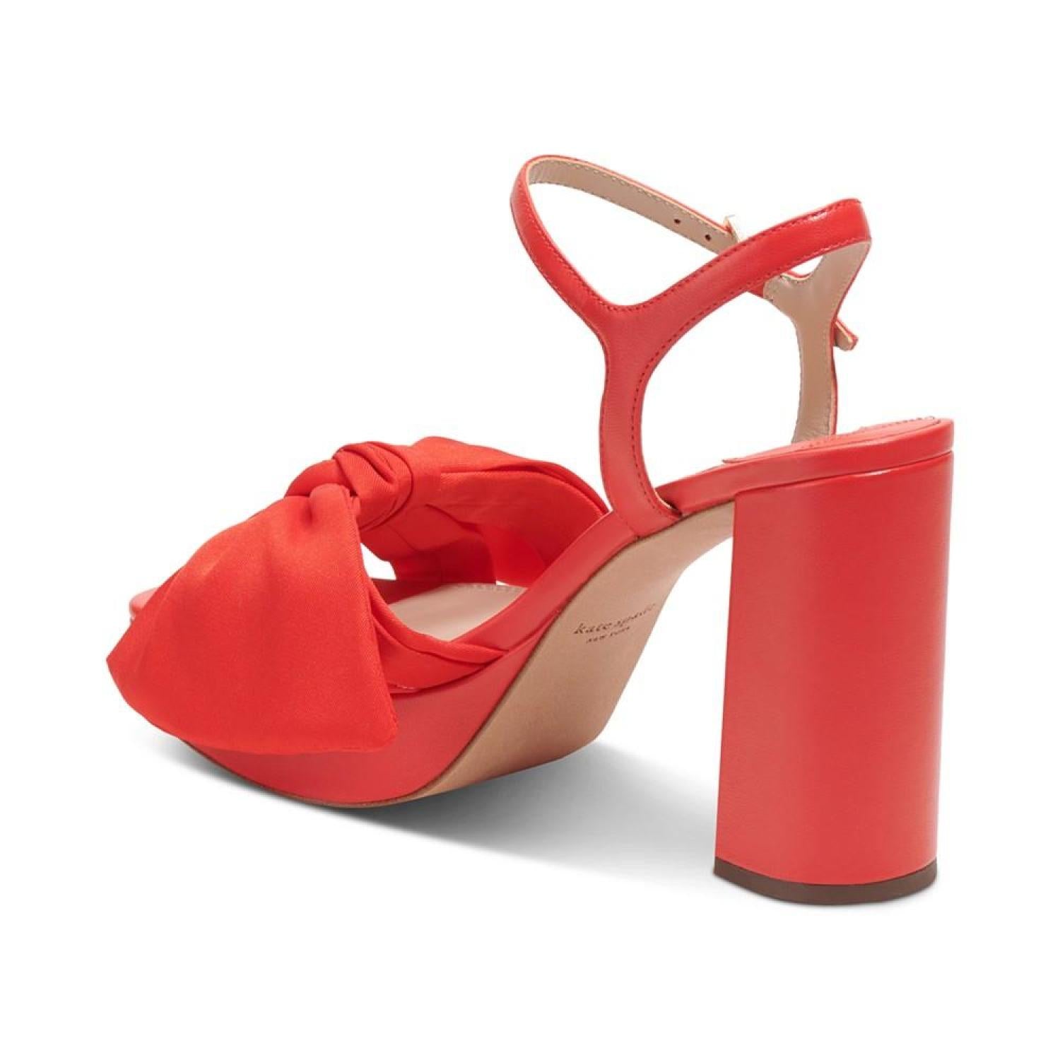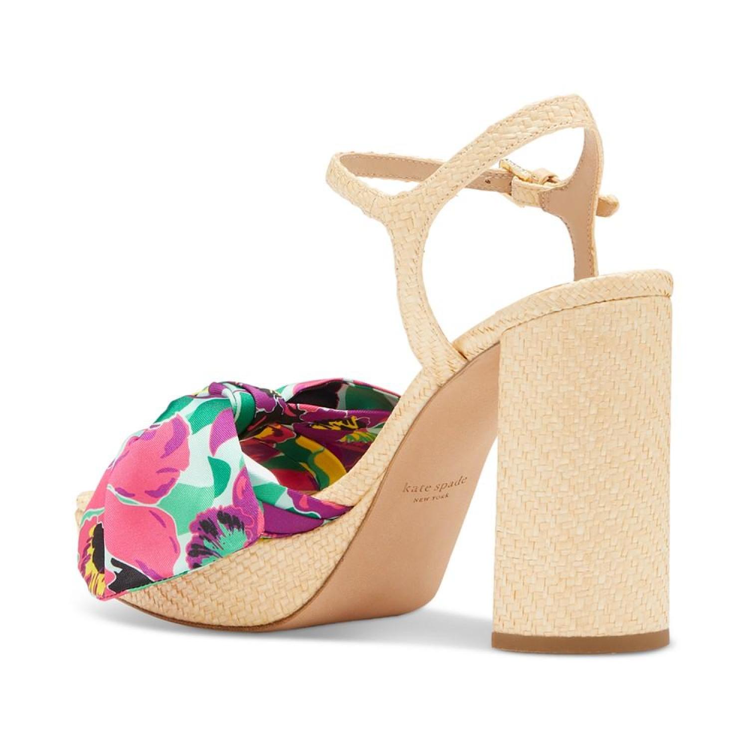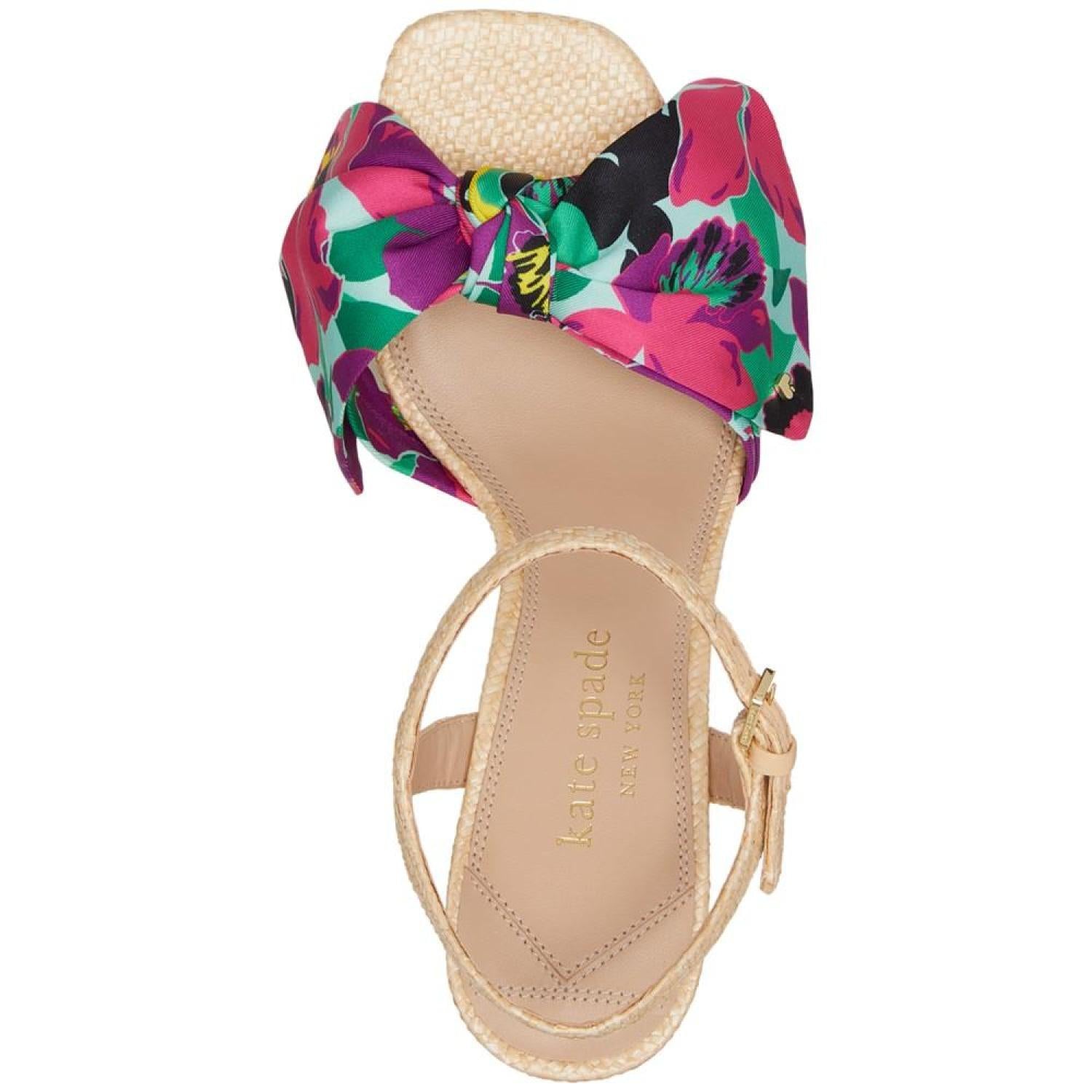 Oversized bows top retro-inspired platforms for a fun addition to a new party dress in the Kate Spade New York Lucie sandals. 4" heel Round toe Buckled ankle strap Bow detail at strap Fabric upper; fabric, leather lining; leather sole Imported
