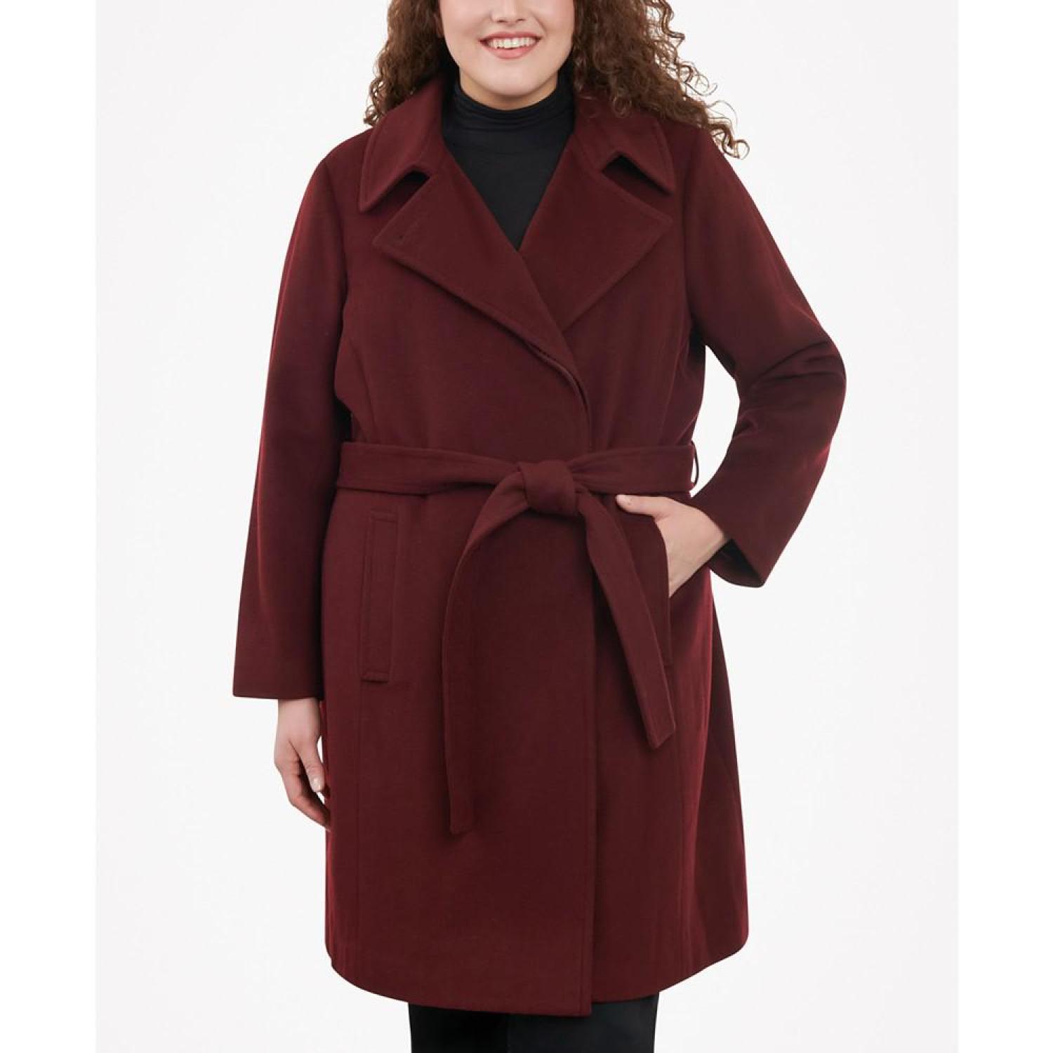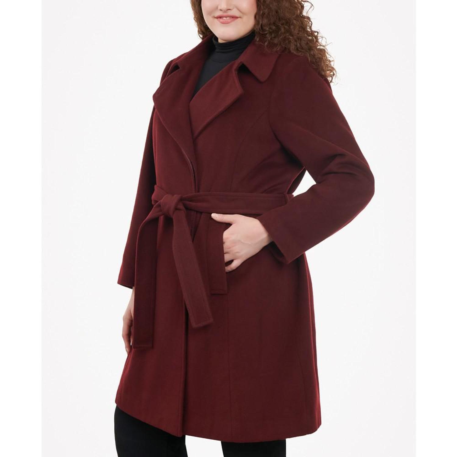 Women's Plus Size Belted Notched-Collar Wrap Coat